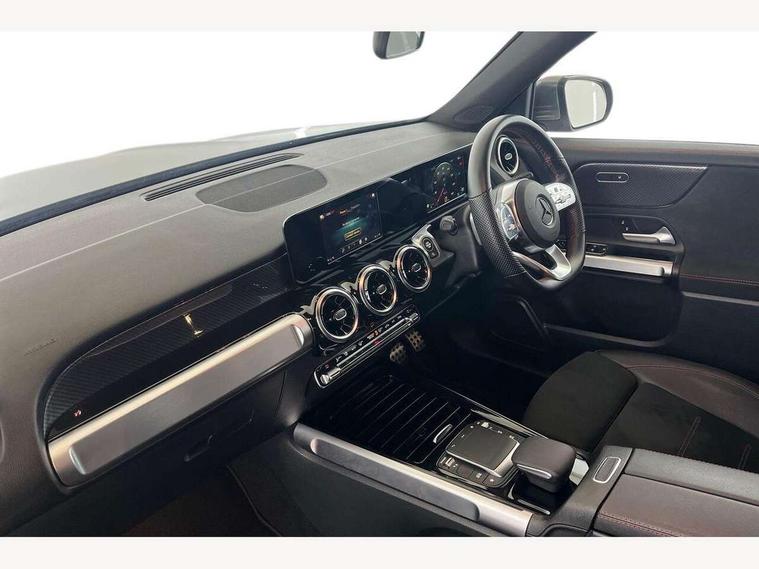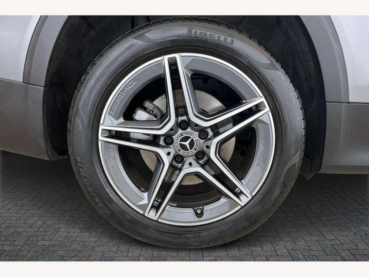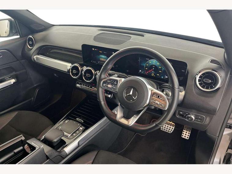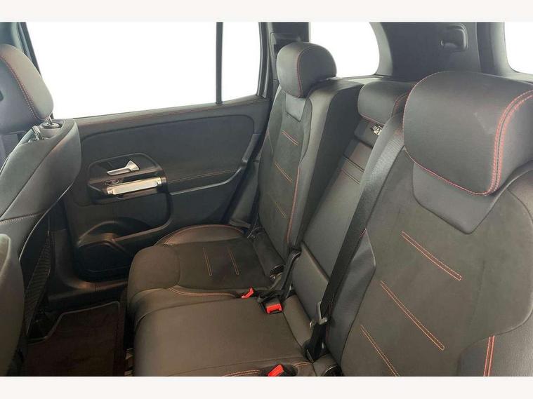 180 degree reversing camera, 7 inch digital instrument cluster display, Active lane keeping assist, Attention assist - Monitors steering behaviour and long journey fatigue, Brake pad wear indicator warning light, Car wash mode, Cruise control with limiter, DYNAMIC SELECT with a choice of driving modes (ECO, Comfort, Sport and Individual), ECO start/stop function, Fluid level warning indicator for fuel, oil, coolant and washer fluid, Hard disk navigation, Hey Mercedes Voice activation, Lamp failure indicator, Mercedes me connect including emergency call system, accident recovery, breakdown management and maintenance, Mercedes me remote services, Outside temperature gauge, Owners manual and service booklet in English, Parameter steering system, Pre-installation of private car share, Radio aerial integrated into front and rear windshields, Service indicator (ASSYST), Speed limit assist, Trip computer in multifunction display with current consumption indicator, Comfort suspension, Rear axle multi-link, 7 inch digital media screen display, DAB digital radio tuner, MBUX multimedia system with DAB digital radio and touchpad including satellite navigation, Mercedes Benz sound system (100 W) with 6 speakers, Pre installation for Mercedes Benz Link, USB (type C) port in front stowage compartment, USB (type C) ports (2) in stowage compartment, Adaptive brake lights, Aerial for GPS, AMG bodystyling door panels black grained with chrome plated inserts, AMG bodystyling front apron with chrome splitter, AMG bodystyling rear apron with diffuser optics and chrome trim element, AMG specific front and rear bumper including underride guard in high gloss chrome, Beltline strips and weather strip in chrome, Body coloured door handles, Body coloured door mirror caps, Electric adjustable and heated door mirrors with integrated LED side indicators, Exhaust system with dual flow exhaust pipes (non-functional), Front and rear electric windows, Headlamp assist automatic headlamp activation, Heated glass rear windscreen + timer control, High level LED third brake light, Interior mirror with black reading lamps and frameless, LED high performance headlamps with integrated LED daytime running lights, LED tail lamp, Polished aluminium roof rails, Privacy glass with dark tinting on rear side windows and rear window, Radiator grille with pins in chrome and single louvre with chrome insert, Rain sensor windscreen wipers, Rear fog lamp, Rear side wing doors, Rear wiper, Two visible tailpipe trim elements exhaust, 3 seat bench in 2nd row, 3 spoke multifunction sport steering wheel in nappa leather, Air conditioning - Two zone thermotronic luxury automatic climate control with display, AMG sports pedals with brushed stainless steel surfaces and black rubber studs, Artico man-made leather/Microfibre Dinamica upholstery with red contrast stitching, Automatic child seat recognition sensor, Black floor mats with AMG lettering, Black roof lining, Fore/aft adjustment rear seats, Freight packaging with tie-down hooks, Front centre armrest with stowage, Front door sills with Mercedes Benz lettering, Front passenger grab handle with brushed side silver chrome, Galvanished gear shift paddles on steering wheel, Heated front seats, Height/reach adjustable steering column, Luggage net on driver/front passenger seat backrest, Rear armrest with two integral cup holders for drinks, Rear seat easy entry, Single front passenger seat, Sports seats with adjustable head restraints, Stowage compartment in centre console, Stowage compartment with retractable cover, Third row of seats for two people on rear seat, Touchpad on center console, Twin front cup holders, Two outer rear seat isofix and top tether child seat fixing points, Interior lighting with light and sight pack - GLB, Seat comfort package - GLB, 3 rear 3 point seatbelts, Active bonnet pedestrain safety measure which detects an impact and raises bonnet by 65mm, Active brake assist includes forward collision warning system with autonomous braking, Adaptive brake assist with hold function and hill start assist, Airbags - kneebag for driver, Anti-lock braking system (ABS) with brake assist, Childproof locks manually operated for rear doors and electrically operated for rear power windows, Crash responsive emergency lighting, Curve dynamic assist, Driver and front passenger head and sidebags, Driver and front passenger windowbags, Dual stage driver and front passenger airbags, Electronic parking brake, Electronic stability programme with acceleration skid control, Front and rear seatbelt reminder, Front brake callipers with Mercedes Benz lettering, Front passenger seat occupancy sensor, Tyre pressure monitoring system, Warning triangle and first aid kit, KEYLESS-GO starting function, Remote central locking and crash sensor with emergency opening function, Thatcham category 1 alarm system with immobiliser and interior protection, Urban guard vehicle protection - Anti theft alarm system, tow away protection with visual and acoustic warning and alarm siren, Vehicle key with decorative surround in chrome, Black air vents with chrome surround, Carbon structure trim, 19" AMG 5 twin spoke light alloy wheels painted in tantalite grey with high sheen finish, Summer tyres, Tirefit tyre sealant kit,