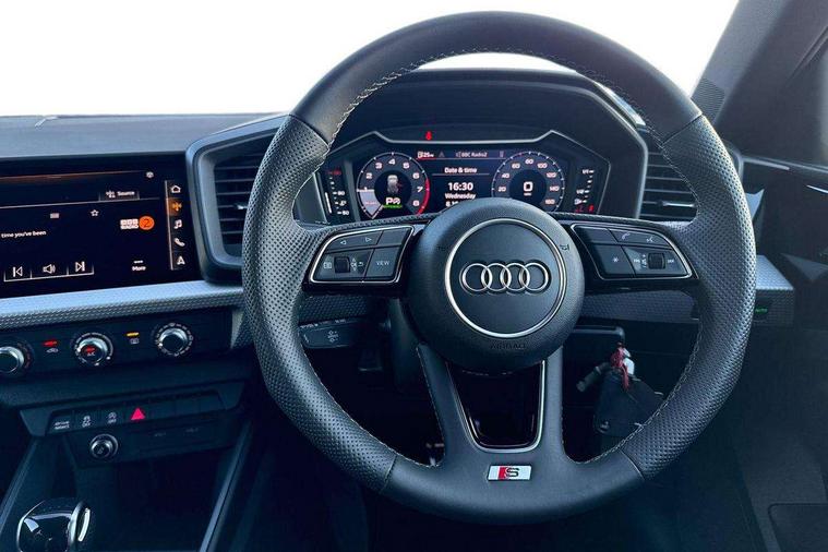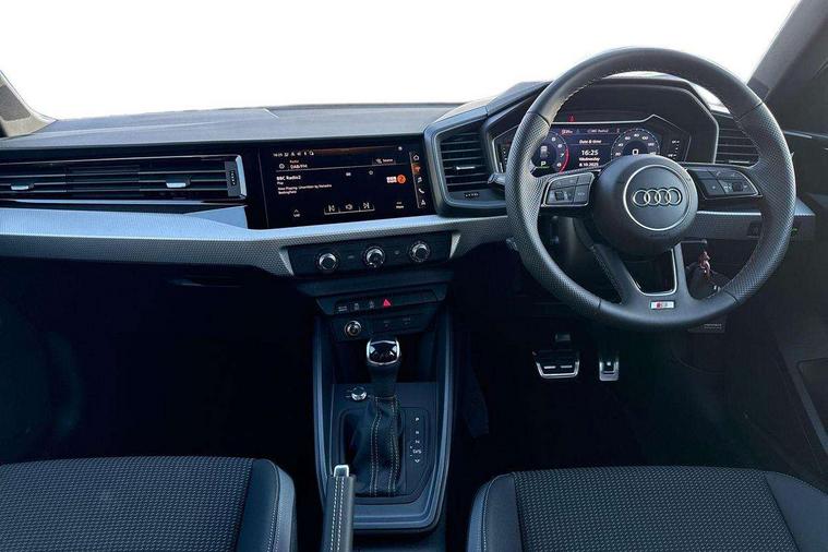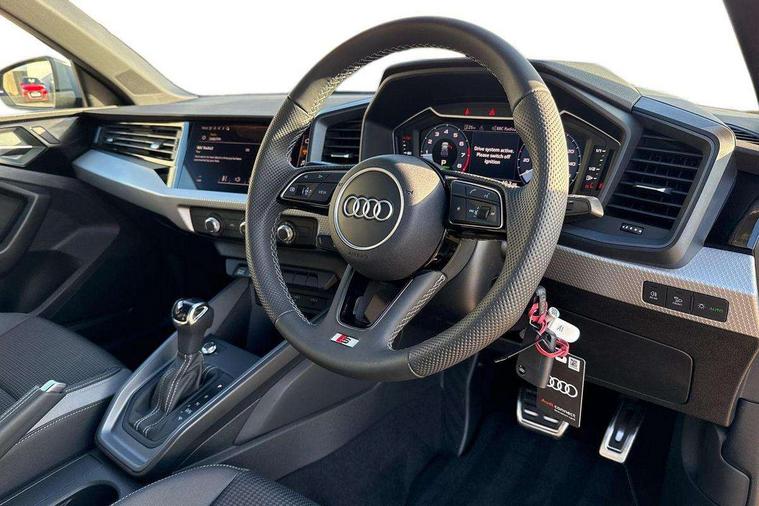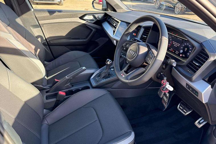 10.25" Digital instrument cluster display classis style instrument dials + speed, odometer, time, outside temperature, telephone menu + fuel level warning, Advanced driver attention and drowsiness monitor, Audi connect emergency call and service, Audi drive select, Audi remote connect and control, Audi smartphone interface, Bluetooth interface, Camera based traffic sign recognition, Cruise control, Driver's information system, Electromechanical power steering, Lane departure warning system, Rear parking sensor, Service interval indicator, Speed limiter, Start stop system with recuperation, Voice control system, Washer fluid level indicator, Sports suspension, 2 x USB type C connection points, 6 loudspeakers, DAB Digital radio, MMI radio plus with 10.1" colour MMI display screen and MMI touch, Auto dimming rear view mirror, Body coloured door mirrors, Door sill trims with aluminium inlays and S line logo in front, Electric front and rear windows, Electrically adjustable, heated, folding door mirrors with integrated LED side indicator, Front side air inlets in grained matt black and C frame in anthracite black, Headlight cleaning system, Heat insulating glass windscreen and side windows, Heated rear windscreen, High level LED brake light, LED daytime running lights, LED headlights with range control LED rear lights + dynamic rear indicators, Light and rain sensors, Privacy glass, Radiator grille and rear diffuser in matt anthracite black, Radiator protective grille frame in matt aluminium silver, Rear fog lights, Rear side wing doors, Rear wiper, S line badges on front wings, Side front spoiler lips in grained matt black, 12V socket in centre console with two cup holders, 3 rear seats with headrests, 3 seat bench in 2nd row, 3 spoke leather multi-function plus steering wheel features S badging and grips in perforated leather with contrast stitching, 40:60 Split folding rear seat or fully collapsed, Black cloth headlining, Front and rear velour black floor mats with contrast stitching in fine silver, Front head restraints, Front passenger seat, Height and reach adjustable steering wheel, Interior lighting includes roof module, front and rear reading lights and right luggage compartment lighting, ISOFIX child seat mounting for front passenger and outer rear seats including top tether attachment point of outer rear seats, Leather gear knob with aluminium trim, Leather handbrake grip, Manual air conditioning, Manual height adjustable for driver and front passenger seat, Manually adjustable lumbar support in front seats, Stainless steel pedals, Ambient lighting package - A1, Luggage compartment pack - A1, S line exterior styling pack - A1 Sportback, 3x3 point rear seatbelts, Audi pre-sense front with pedestrain and cyclist recognition, Brake assist function, Driver and front passenger airbag with front side and head airbags, Electronic Stability Control including ABS, EBD, ASR and EDL, Front passenger airbag deactivation switch, Hill hold assist, Manual rear child locks, Seatbelt height adjustment for front seats, Seatbelt monitoring, Tyre pressure loss indicator, Warning triangle and first aid kit, Anti theft alarm, Anti theft wheel bolts, Immobiliser, Remote control key with safelock, Aluminium trim for control switches, air vents and digital instrument cluster, Black dashboard, Silver grey inlays polygon structure in diamond paint finish, Structured grey accent surfaces insert of air vents, interior door handle recesses and centre console in quartz paint finish,