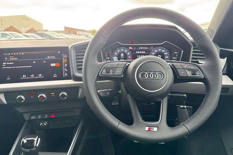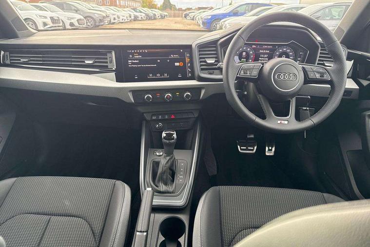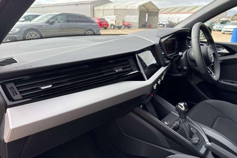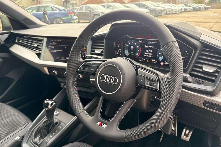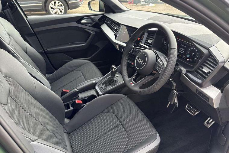 10.25" Digital instrument cluster display classis style instrument dials + speed, odometer, time, outside temperature, telephone menu + fuel level warning, Advanced driver attention and drowsiness monitor, Audi connect emergency call and service, Audi drive select, Audi remote connect and control, Audi smartphone interface, Bluetooth interface, Camera based traffic sign recognition, Cruise control, Driver's information system, Electromechanical power steering, Lane departure warning system, Rear parking sensor, Service interval indicator, Speed limiter, Start stop system with recuperation, Voice control system, Washer fluid level indicator, Sports suspension, 2 x USB type C connection points, 6 loudspeakers, DAB Digital radio, MMI radio plus with 10.1" colour MMI display screen and MMI touch, Auto dimming rear view mirror, Body coloured door mirrors, Door sill trims with aluminium inlays and S line logo in front, Electric front and rear windows, Electrically adjustable, heated, folding door mirrors with integrated LED side indicator, Front side air inlets in grained matt black and C frame in anthracite black, Headlight cleaning system, Heat insulating glass windscreen and side windows, Heated rear windscreen, High level LED brake light, LED daytime running lights, LED headlights with range control LED rear lights + dynamic rear indicators, Light and rain sensors, Privacy glass, Radiator grille and rear diffuser in matt anthracite black, Radiator protective grille frame in matt aluminium silver, Rear fog lights, Rear side wing doors, Rear wiper, S line badges on front wings, Side front spoiler lips in grained matt black, 12V socket in centre console with two cup holders, 3 rear seats with headrests, 3 seat bench in 2nd row, 3 spoke leather multi-function plus steering wheel features S badging and grips in perforated leather with contrast stitching, 40:60 Split folding rear seat or fully collapsed, Black cloth headlining, Front and rear velour black floor mats with contrast stitching in fine silver, Front head restraints, Front passenger seat, Height and reach adjustable steering wheel, Interior lighting includes roof module, front and rear reading lights and right luggage compartment lighting, ISOFIX child seat mounting for front passenger and outer rear seats including top tether attachment point of outer rear seats, Leather gear knob with aluminium trim, Leather handbrake grip, Manual air conditioning, Manual height adjustable for driver and front passenger seat, Manually adjustable lumbar support in front seats, Stainless steel pedals, Ambient lighting package - A1, Luggage compartment pack - A1, S line exterior styling pack - A1 Sportback, 3x3 point rear seatbelts, Audi pre-sense front with pedestrain and cyclist recognition, Brake assist function, Driver and front passenger airbag with front side and head airbags, Electronic Stability Control including ABS, EBD, ASR and EDL, Front passenger airbag deactivation switch, Hill hold assist, Manual rear child locks, Seatbelt height adjustment for front seats, Seatbelt monitoring, Tyre pressure loss indicator, Warning triangle and first aid kit, Anti theft alarm, Anti theft wheel bolts, Immobiliser, Remote control key with safelock, Aluminium trim for control switches, air vents and digital instrument cluster, Black dashboard, Silver grey inlays polygon structure in diamond paint finish, Structured grey accent surfaces insert of air vents, interior door handle recesses and centre console in quartz paint finish,
