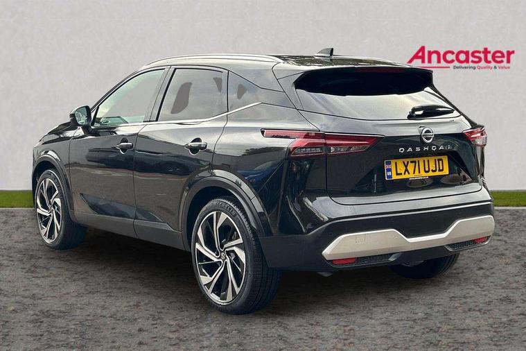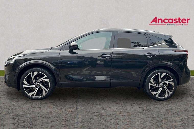 Blind spot warning, Drive modes (sport, normal, eco), Electric speed sensitive power steering, Emergency and breakdown call, Front and rear parking sensors, Full Digital 12.3" TFT Digital Combimeter, Google maps services - search, weather, 3D maps and Google street view, Hands free power tailgate, Idle stop/start system, Intelligent around view monitor, Intelligent Cruise control (ICC), Intelligent driver alert system, Intelligent forward collision warning, Intelligent lane intervention, Lane departure prevention, Lane departure warning system, Moving object detection, Nissan connect 9" touchscreen infotainment system, Nissan connect navigation, Push button starter, Rear cross traffic alert, Remote control services - door locks, lights, horn and car locator, Telematics - notifications and connectivity services, TomTom live traffic services, Traffic sign recognition with legal speed adjustment, Trip computer, Virtual personal assistant and firmware over the air capability, Wireless Apple CarPlay and wired Android Auto, Wireless charging pad, 10 Bose speakers - 2 tweeters, 6 high and medium frequency door speakers and 2 in subwoofer, AM/FM audio system with DAB, Bluetooth audio streaming, Bose acoustimass bass box, Digital amplifier, Front USB connections (Type-A and Type-C), Rear USB charging only ports (Type-A and Type-C), Auto dimming rear view mirror, Auto rear wiper when reversing, Body colour mirror caps, Body coloured door handles, Bodyside mouldings, Chrome side window finisher, Door handle with button, Door mirror memory, Dusk sensor, Electric auto folding door mirrors, Electrically adjustable and heated door mirrors with LED turn indicator, Fixed panoramic glass roof with electric sunshade, Follow me home headlights, Front and rear LED turning signals, Intelligent auto headlights, LED daytime running lights, LED rear lights, One touch front and rear electric windows with remote opening and closing, Privacy glass, Rear roof spoiler, Rear side wing doors, Rear styling plate, Reverse tilting door mirrors, Roof rails, Shark fin antenna, Splash free rain sensing wipers, Super UV and infrared cut glass, Three blink turn signal, 12v power socket in dashboard and luggage, 2x Rear coat hooks, 3 bench rear seats in 2nd row, 3 rear headrests, 4 folding assist grip, 6 Luggage hooks - 4 on floor, 2 on side, 60/40 split folding rear seat bench, 8 way electric adjustable driver seat with massage and memory function, 8 way electric adjustable passenger seat with massage and memory function, Ambient lighting around centre console, Ambient lighting in front doors, Centre console storage tray, Chrome interior door handles, Dark headlining, Driver and front passenger sunvisors with illuminated vanity mirrors, Driver seat back pocket, Dual zone automatic climate control with pollen filter, Electric 4-way lumbar support for drivers seat, Electric adjustable 4 way lumbar support for passenger seat, Front and rear door storage, Front cupholders x 2, Front door with bottle holders, Glovebox with light, Hard trunk cover, Height adjustable front headrests, Leather steering wheel, Luggage board system, Luggage space lighting, Multifunction steering wheel, Passenger seat back pocket, PVC front centre console and armrest, Quilted premium leather upholstery, Rear armrest with 2 cupholders, Rear door bottle holders, Single front passenger seat, Soft PVC kneepad, Steering wheel gearshift paddles, Steering wheel switches, Tilt/telescopic adjustable steering wheel, Two rear isofix child seat anchorage points with top tether, Welcome light and doors with console tray ambient lighting, Heat pack - Qashqai, Tech Pack (ProPILOT + HUD), 3x3 point rear seatbelt pretensioners + load limiters, ABS, ESP, EBD and brake assist, Active brake limited slip, Auto hold function, Child locks on rear doors, Curtain and front side, far side airbags, Driver and passenger airbags, Driver, passenger and 2nd row rear seat belt reminder, Electronic parking brake, Front seatbelt pretensioners + load limiters, Height adjustable front seatbelts, Hill start assist, Intelligent blind spot intervention, Intelligent front emergency braking with pedestrian, cyclist recognition and junction assist, Intelligent rear automatic braking, Tyre pressure monitoring system, Vehicle dynamic control, Advance intelligent key with driver memory storage (seats, mirrors, audio), Capless fuel filler, Engine immobiliser, Rear bumper with silver insert, Remote central door locking with deadlocking, Thatcham Cat.1 alarm, 20" Alloy wheels,