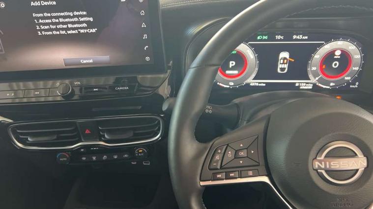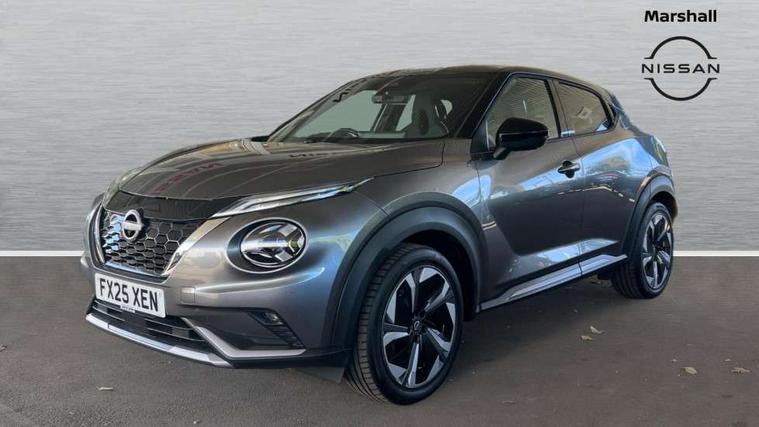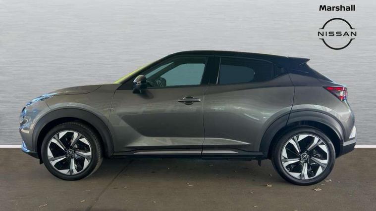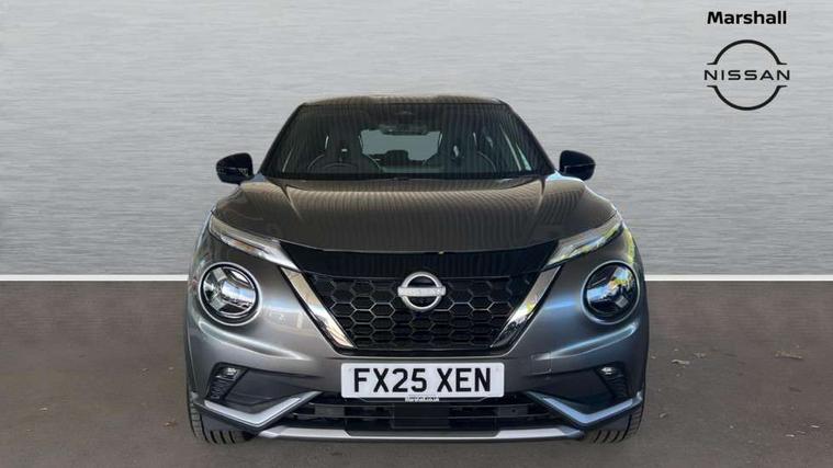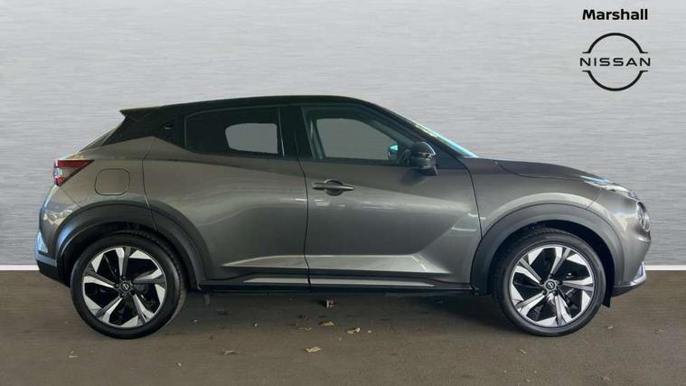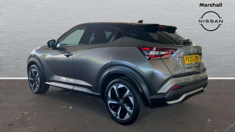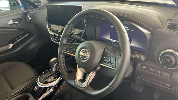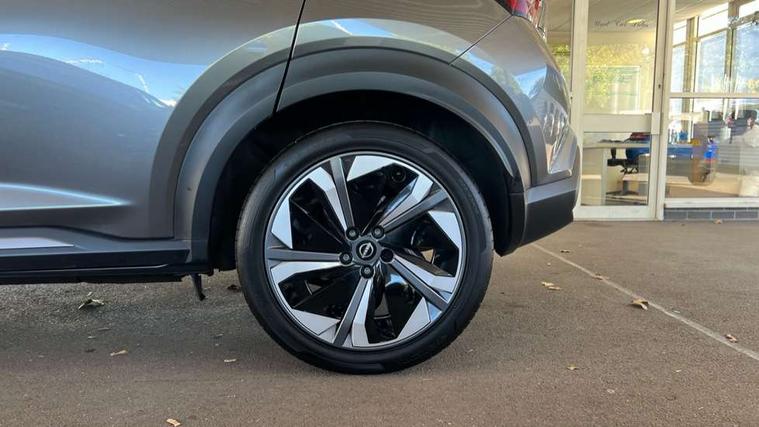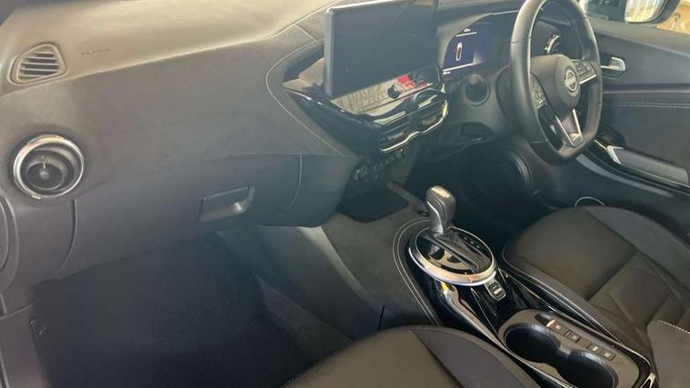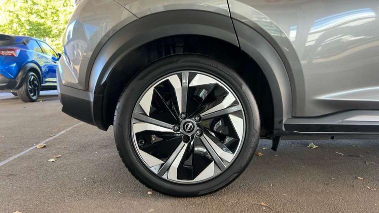 12.3" full colour TFT screen combimeter, Drive modes select (Eco, normal and sport), e-Pedal step, Emergency and breakdown call, EV mode switch, Front parking sensor, Intelligent driver alert system, Intelligent lane intervention, Lane departure warning system, Nissan connect 12.3" touch screen entertainment system, Nissan connect nav with TomTom traffic, Nissan connect services, Outside temperature sensor, Power Steering, Rear parking sensor, Stop/start button, Traffic sign recognition, Trip computer, Voice recognition, WiFi connectivity, Wireless Apple CarPlay and Google Android auto, Wireless Smartphone charger, 10 Bose speakers 6 speakers and 2 headrest speakers for driver/passenger seats, 2 X Rear console USB port, Bluetooth system, USB, Aux-in and 12V socket, Bose personal sound stage control, DAB Digital radio, Auto dimming frameless rear view mirror, Automatic hazard signal with emergency stop signal, Body colour door handles, Electrically adjustable door mirrors with integrated indicators, Follow me home headlights, Front and rear electric window with one touch driver window, Heated and auto folding door mirrors, High beam assist, LED 3rd brake light, LED daytime running lights, LED front fog lights, LED headlamps, LED rear fog lamp, LED rear lamps, One touch passenger window, Rain sensor windscreen wipers, Rear privacy glass, Rear side wing doors, Rear wiper, Roof spoiler, Shark fin roof antenna in solid Black, Three blink turn signal, 3 height adjustable rear headrests, 3 seat bench in 2nd row, 60/40 split folding rear seat, Automatic climate control, Card holder on driver sunvisor, Door ambient lighting, Driver seat back pocket, Driver side rear coat hanger, Driver/passenger sunvisors and vanity mirrors, Front and rear cabin lights, Front armrest, Front door pockets with bottle holders, Front head restraints, Front/rear passenger grab handles, Gear console ambient circle lighting, Height adjustable driver's seat, Internal chrome door handles, Leather gearshift knob, Luggage board, Luggage space lighting, Monoform sporty seats, Multifunction steering wheel, Passenger seat back pocket, Rear door bottle holders, Single front passenger seat, Smooth synthetic leather steering wheel, Synthetic leather kneepad, Telescopic steering wheel adjustment, Two cupholders in front centre console, Two rear isofix child seat anchorage points with top tether, Welcome light and console tray ambient lighting, Heat pack with height adjustable passenger seats - Juke, Interior personalisation pack - Juke, ProPilot pack - Juke Auto, Satin grey exterior personalisation pack - Juke, ABS with EBD and brake assist, Active ride control, Active Trace Control, Driver and passenger airbags, Driver and passenger side airbags, Electric handbrake with auto hold function, Electronic Stability Programme (ESP), Front and rear curtain airbags, Height adjustable seatbelts, Hill start assist, Intelligent emergency braking with pedestrian and cyclist recognition, Rear door child safety locks, Seatbelt reminder for driver/front passenger and rear seats, Three 3 point rear seatbelts, Traction control, Tyre pressure monitoring system, VDC Dynamic Vehicle Control, Alarm, Immobiliser, Intelligent key and start push button with walk away lock and approach unlock functions, Remote central locking, 19" Aero alloy wheels, Tyre puncture repair kit,
