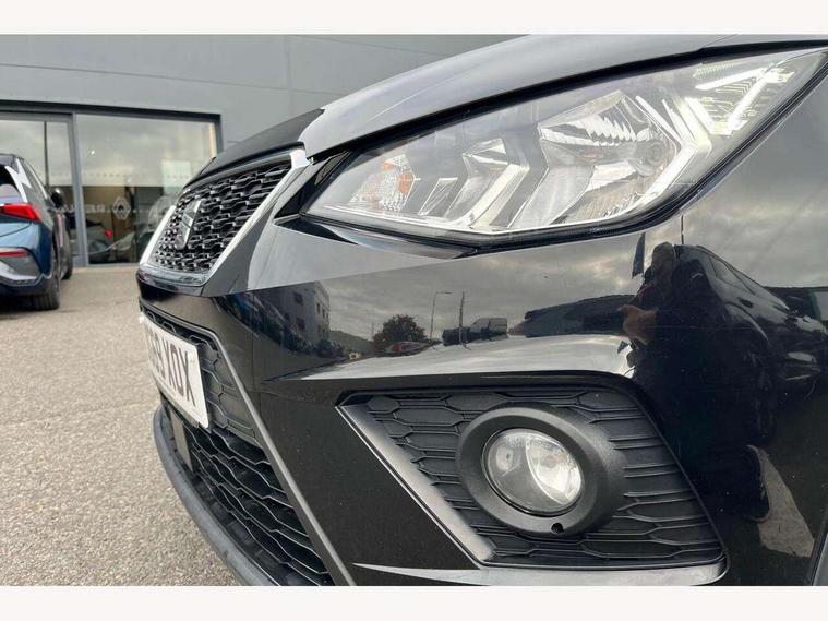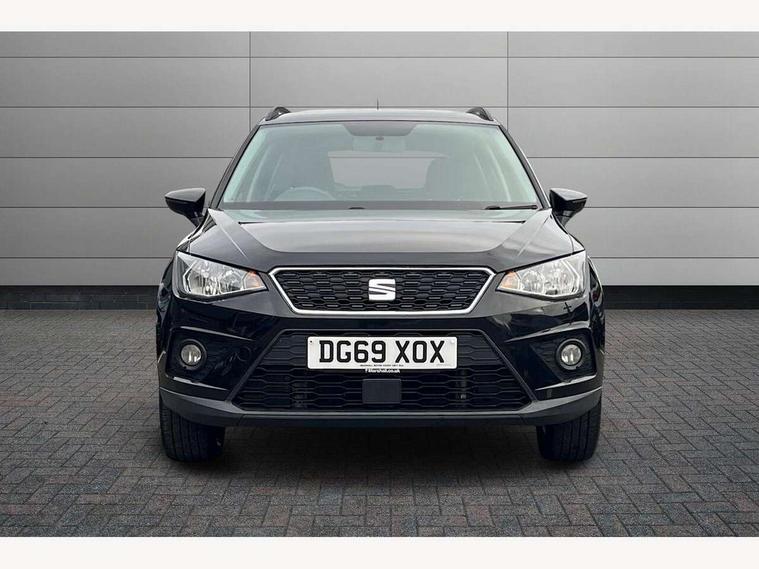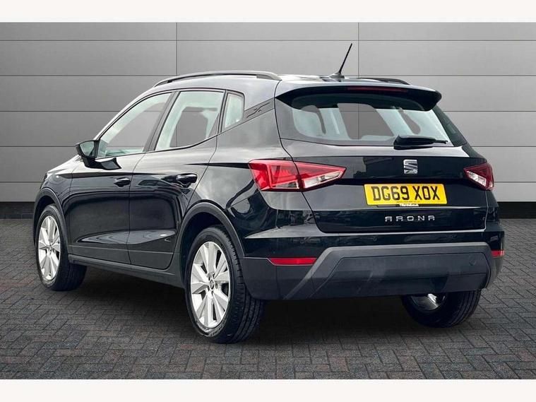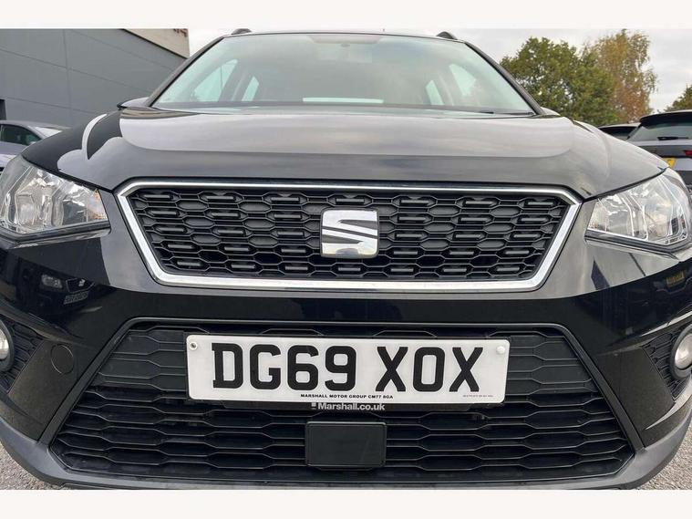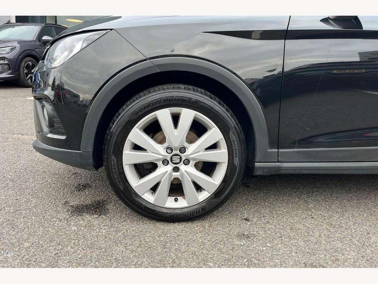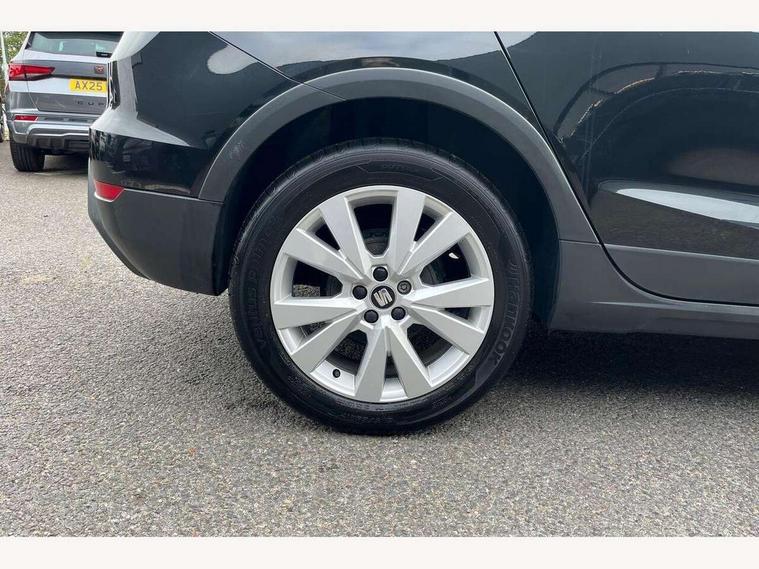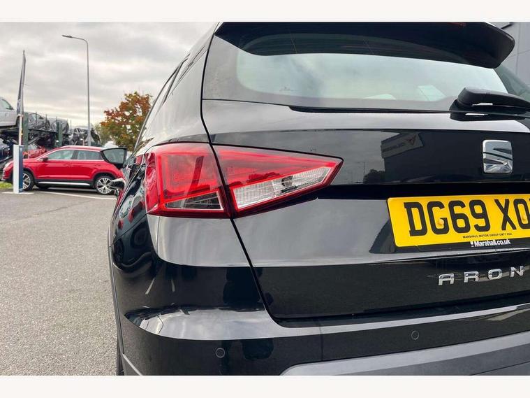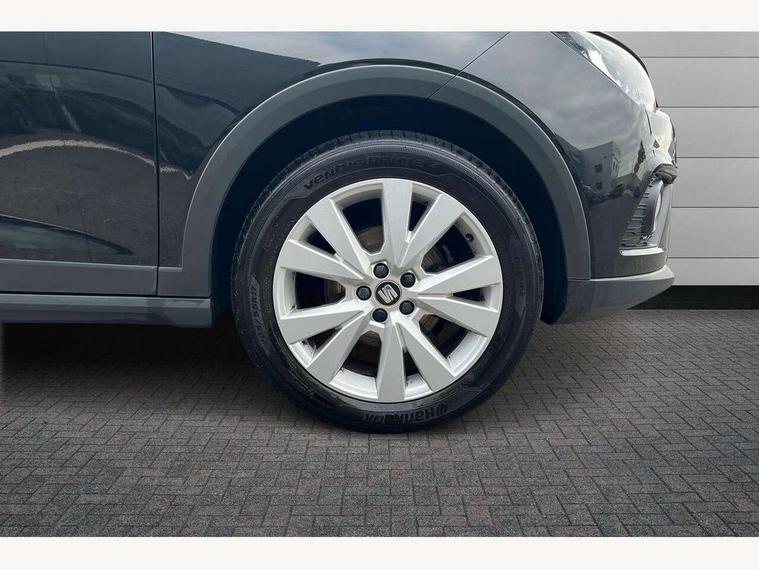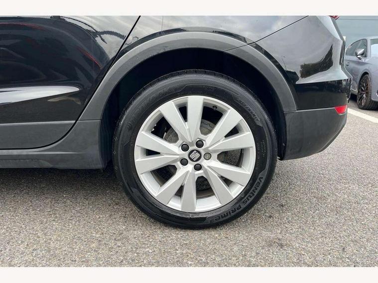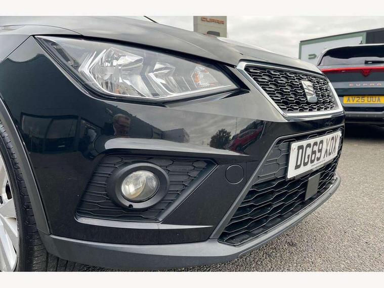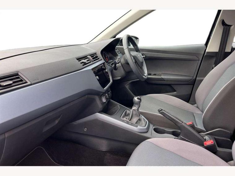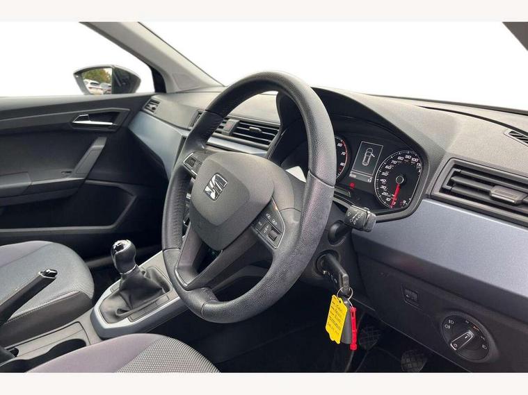 'Lights On' Reminder warning buzzer, Cruise control, Digital clock, Electric speed sensitive power steering, Full Link Smartphone Integration with Mirror Link, Apple Car Play, Google Android Auto with USB Type C cable for Apple and Android compatibility, Low fuel warning light, Outside temperature display, Rear parking sensor, RPM counter, Trip computer, Comfort suspension, 6 speakers, Bluetooth interface for hands free and audio streaming, DAB digital radio and AM/FM radio, Steering wheel mounted audio controls, Anti theft roof antenna, Automatic activation of hazard warning lights, Automatic headlights, Black roof rails, Black window trims, Body coloured bumpers, Body coloured door handle inserts, Body coloured door mirrors, Chrome front grille frame, Dimming rear view mirror, Electric adjustable door mirrors, Electric front/rear windows with one touch/auto up/down, Electric headlight adjustment, Front fog lights with cornering function and rear fog light, Hidden exhaust pipe, LED daytime running lights, LED rear tail lights and licence plate lights, Rear window wash/wipe, Visible VIN plate, Windshield wiper with intermittent control and potentiometer, 2 cupholders, 60/40 split folding rear seat, Air conditioning, Cloth upholstery, Double boot floor, Driver sunvisor with covered mirror + card holder, Dust/pollen filter, Front courtesy light with front reading lights, Gear shift indicator, Grey interior roof, Height adjustable front seats, Height/reach adjustable steering column, Illuminated boot, Instrument lighting with brightness control, Interior footwell lighting, ISOFIX points in outer rear seats with top tether anchorage points, Leather steering wheel/gear knob/handbrake, Multi-colour ambient interior lighting, Passenger sunvisor with vanity mirror, Two front and three rear height adjustable headrests, Connectivity pack plus - Arona, Interior chrome pack - Arona, 3 point seatbelts on all rear seats, ABS, Active front headrests, Child locks on rear doors, Driver and front passenger airbags with front passenger airbag de activation, front side and curtain airbags, Electronic stability control, Emergency Brake Assist (EBA) and front assist, Front and rear seatbelt reminder, Hill hold control, Multi-Collision braking, Tiredness recognition system, Traction control, Tyre pressure monitoring system, 2 folding remote keys with window open/close function, Electronic engine immobiliser, Locking wheel bolts, Remote central locking + deadlocks, Interior chrome line trim, Plastic grey dashboard, 17" Dynamic alloy wheels,