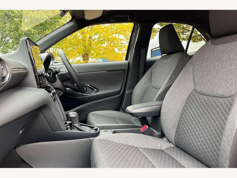 10.5" Multimedia display screen, 7" Multi information display screen, Adaptive cruise control, multi info switches on steering wheel, Adjustable speed limiter, Bluetooth connectivity, Color multi-information display, Digital speedometer, Digital tachometer, Drive mode selector, Driver attention alert system, eCall emergency system, Electric power steering, Emergency driving stop system, Full range intelligent adaptive cruise control, Hybrid system indicator, Intersection turn assist, Key reminder warning, Lane trace assist, My T Connected services, Pre-collision system enhanced with emergency steering assist, Reversing camera, Road sign assist - RSA, Static guide lines on reversing camera, Telephone switch on steering wheel, Wireless Smartphone integration incl Apple CarPlay, Steering assisted vehicle stability control, 6 speakers, DAB Digital radio, Front USB Type-C connector, Front USB-C device charger, 3rd brake light, Acoustic windscreen glass, Anti-jam protection on power windows, Auto high beam [AHB] with on/off switch, Auto intermittent windscreen wipers, Automatic headlights, Automatic headlights cut-off, Black door moulding, Black lower front grille, Black protection moulding on side doors, Black roof rails, Black upper front grille, Black wheel arch mouldings, Body colour door handles, Body colour front bumper, Body colour rear bumper, Electric adjustable heated door mirrors, Follow me home headlights, Front and rear electric windows with auto up/down function, Headlight cut off reminder, Indicators integrated on door mirrors, Intermittent rear wiper, LED daytime running lights guide, LED front fog lights, LED front light guide, LED Indicators, LED projector headlights, LED rear lights with sequential indicators, Manual day/night rear view mirror, Manual headlight levelling, Manually retractable door mirrors, Noise reduction layer on windscreen, Pre wiring for towing hook, Privacy glass, Rain sensor, Rear side wing doors, Rear spoiler, Rear window defogger, Shark fin antenna, 12v power outlet - front, 2x Rear coat hooks, 3 seat bench in 2nd row, 3 spoke leather steering wheel, 40/60 split deckboard, 40:20:40 split folding rear bench seat, Adjustable rear headrests, Adjustable speed limiter switch on steering wheel, Auto air conditioning, Black roof lining, Boot light, Central armrest, Driver and front passenger personal lights, Driver and front passenger Whiplash injury Lesseing seats, Fabric door trim, Fabric upholstery, Front console box, Front cup holders, Front door pockets, Front head restraints, Front/rear assist grips, Gear shift indicator, Gloss black surround on gear shift console, Height adjustable driver's seat, Height adjustable front passenger seat, Hooks for luggage holding belts, ISOFIX child restraint system, Lane departure alert switch on steering control, Leather gearshift, LED centre room light, Manual telescopic and tilting steering wheel, Mirror on driver and passenger sun visor, Pollen air filter, Power adjustable lumbar support on driver seat, Rear cup holders, Rear door pockets, Rear head restraints, Remote air-conditioning system, Single compartment glovebox, Single front passenger seat, Soft tonneau cover, Storage box under boot floor, Voice recognition switch on steering wheel, Yaris cross floor mats, 3x3 point rear seat belts, ABS+EBD+Brake assist, Driver and passenger central airbags, Driver and passenger front airbags, Driver and passenger side airbags, Electronic parking brake, Emergency brake light system (EBS), Front seat belt reminder, Hill start assist control (HAC), Passenger airbag on/off switch, Pre-collision system with pedestrian and cyclist detection, Rear door child safety locks, Rear passenger side airbags, Rear seat belt reminder, Traction control, Tyre pressure warning system, Immobiliser, Intrusion alarm, Keyless smart entry with push button start, Power door locks, Power passenger window lock, Remote door lock, Gloss black side air vent surrounds, Tyre repair kit,