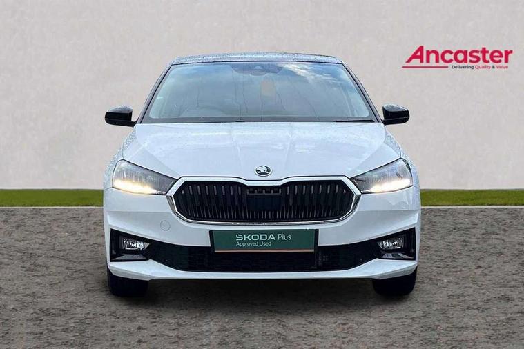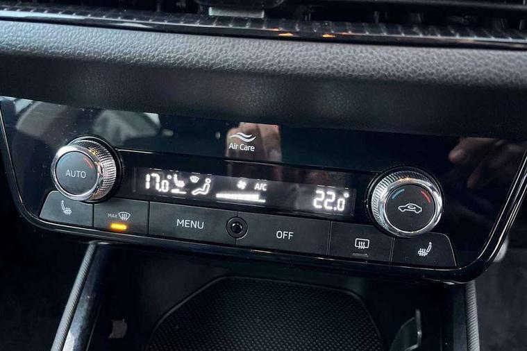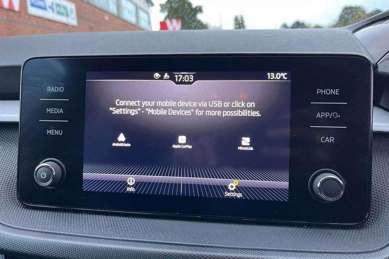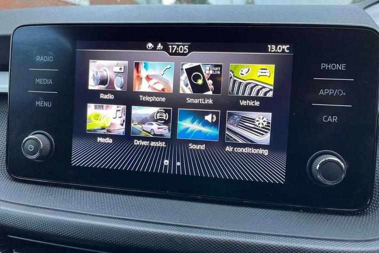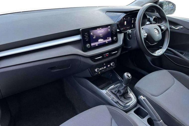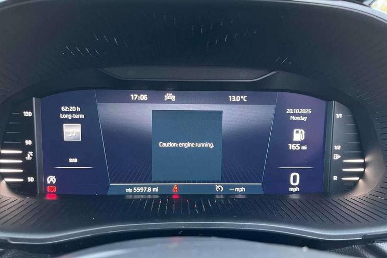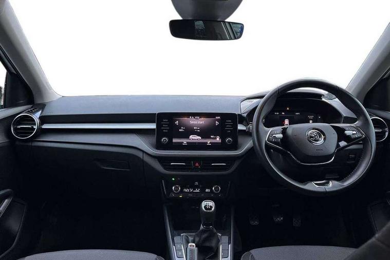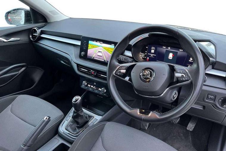 Bluetooth connection, Driver alert system - DAS, Electromechanical power steering, Exterior temperature gauge, Lane assist including road edge detection, Service interval indicator, Virtual cockpit with 10.25" colour display, 2x USB-C in the front (for data transmission and charging), 6 Speakers (4 in front and 2 in rear), Auxiliary socket for external MP3 player, Bolero radio with 8" colour display, DAB digital radio reception, Basic LED Headlights, Body coloured bumpers, Dimming rear view mirror with black frame, Door mirror integrated indicators, Electrically adjustable and heated door mirrors, Electrically adjustable front windows with function auto up/down, Front fog lights, Front window wiper intermittent control, Headlight range control - Automatic, Ice scraper in fuel cap, LED daytime running lights with coming and leaving home feature, Mechanical adjustable rear windows, Privacy glass, Rain sensor, Rear LED fog light, Rear side wing doors, Rear window wiper with washing nozzles, Roof mounted spoiler, SKODA tailgate lettering in chrome, Third brake light, 2 reading lights in front and 2 reading lights in rear, 3 rear headrests, Backrest split and folding, Central console with fixed cup holder and storage box, Chrome handbrake release button, Fabric upholstery, Gearshift knob/handle in leather, Grain satin black interior door handles, Hand brake lever handle in leather, Height adjustable drivers seat, Height adjustable front headrests, Height adjustable steering wheel, ISOFIX and TopTether anchorage points to the outer rear seats, ISOFIX and TopTether on the front passenger seat, Luggage compartment lighting, Pollen filter, Rear seat bench unsplit, Single front passenger seat, Storm grey headlining, Sun visors with mirror and airbag label on passenger side, Ticket holder, Umbrella in drivers door, 3-point height adjustable front seats belts with pretensioner and force limiter, Automatic warning lights in case of crash, Driver and passengers airbag with switch off function, e-Call+, ESC including ABS, MSR, ASR, EDS, HBA and XDS, Front and rear seat belt warning, FRONT ASSIST (AEB City and AEB Inter Urban), Front side airbags, Head airbags, One tone horn, Pedestrian protection, Three rear 3-points safety seat belts with pretensioner and force limiter including stop function for outer rear seat belts, Tyre pressure monitoring system, Anti-theft alarm system including immobiliser, interior monitoring, backup horn, and towing protection, Central locking with radio remote control, interior controls, SAFE function and 2 foldable keys, KESSY - Keyless engine start/stop, Anodized cross line upper decorative trim, Colour Edition air vents, Grain satin black central console cover, Grain satin black lower decorative trim, Satin black door and side trim panel in front, Anti-theft wheel bolts protection, Super-low rolling resistance tyres,