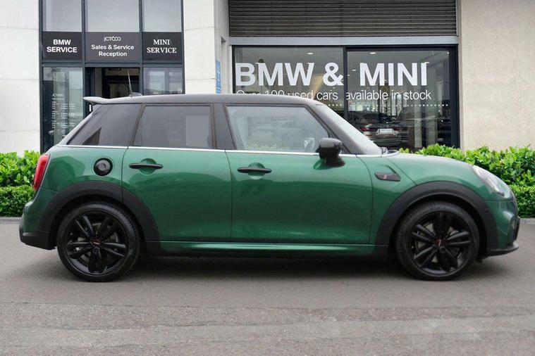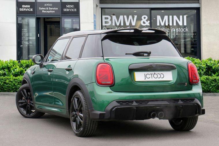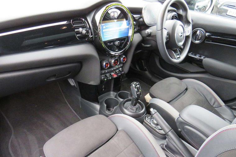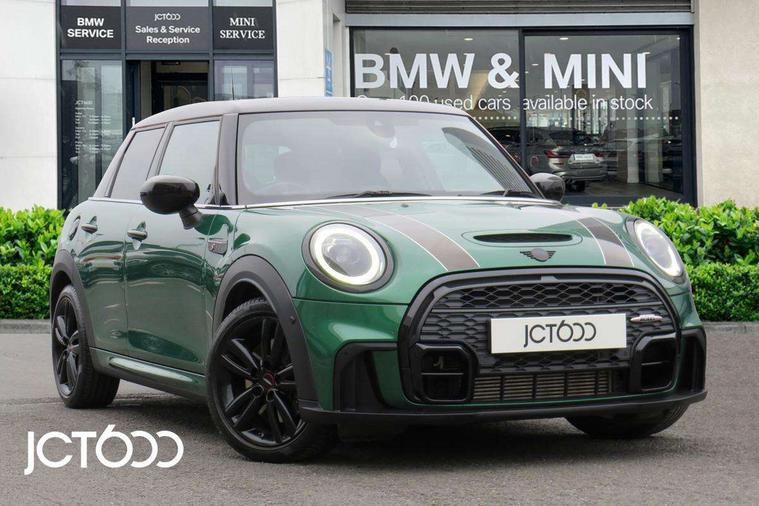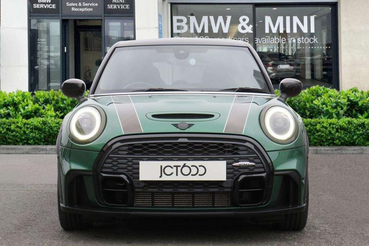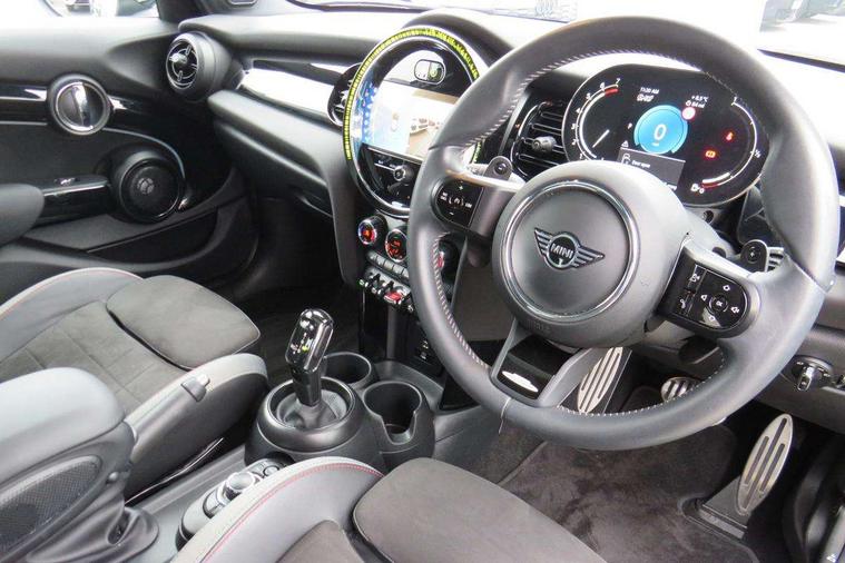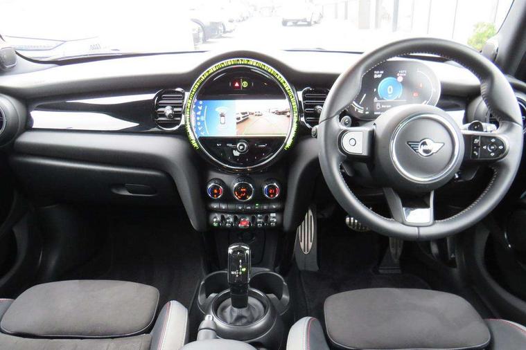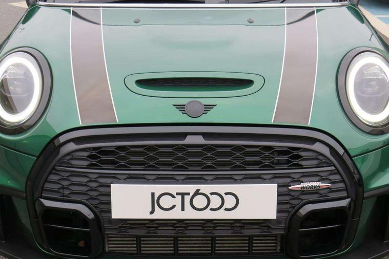 Apple CarPlay, Automatic start/stop function with brake energy recuperation, Compatible mobile phone bluetooth with audio streaming, Electro-mechanical speed dependant steering assistance, Flexible car sharing preparation, MINI Driving Modes - centre toggle switch to control driving setting (sport, mid and green), Mini E-call, MINI TeleServices, On board computer, Rear park distance control, Service interval indicator, Adaptive suspension, Double Vanos system, Fully variable valve control, Gear change indicator display, High precision injection, Performance Control, Steptronic sport transmission with double clutch and steering wheel paddles, 8.8" touchscreen with LED ring, FM tuner and DAB digital radio, 3rd brake light, Automatic headlight activation switch, Bonnet scoop, Dynamic brake lights, Electric front+rear windows, Heated rear window, Heated windscreen washer jets, JCW Aerodynamic kit - Front and rear bumpers with sporty JCW styling and part-painted side sills with MINI John Cooper Works door sill finishers, John Cooper Works rear spoiler, Metal door sill strips with Cooper S imprint, Model logo Cooper S on right of tailgate, Radiator grille chrome border with honeycomb structure including S Badge, Rain sensor window wipers, Rear fog lights, Rear LED lights with union jack design, Rear side wing doors, Rear window wiper, Side scuttle panel with integrated indicator, Sun/heat protection glass, Two central exhaust tailpipes with chrome finisher, White indicator lenses, 12V Accessory socket in centre console, 3 seat bench in 2nd row, 4 lashing eyes in luggage compartment, 60/40 split folding rear seat, Anthracite headliner including grab handles and clothes hooks, Carbon black colour line - Knee roll and door armrest, Chrome interior highlights, Cupholders, Front and rear isofix with front passenger airbag deactivation, Front and rear velour floor mats, Glove compartment, Height and length steering column adjustment, Interior lighting with 12 different colours across the dashboard, underneath door bezel with illuminated laser-engraved design on central display, JCW Sport seats with integrated headrests, adjustable thigh support and John Cooper Works logo, Leatherette gearshift lever and handbrake gaiters, LED reading lights, vanity mirror lights, front foot well light and spotlight on front seats, Mechanical seat adjustment - forward/back & backrest for front seats and driver seat height adjust, Multifunction steering wheel, Single front passenger seat, Sport leather steering wheel with speed limiter and audio/communication controls, Storage compartments in doors, Storage pocket on back of front seats, Sunvisors with vanity mirrors, Walknappa leather steering wheel with grey seam and John Cooper Works badge on Piano Black lower steering wheel spoke, Piano black exterior pack - Mini Hatchback Cooper S, 3 point seatbelts on all five seats, 6 Airbags - front, side, head and seat belt tensioners, Anti-lock braking system (ABS), Child locks on rear doors, DSC - Dynamic Stability Control, Front and rear disc brakes, Hill start assist, Two tone horn, Tyre pressure monitoring system, Alarm system with tilt sensor, monitoring doors, bonnet interior and tailgate, Electronic vehicle immobiliser, Start/stop toggle with keyless go, Piano black interior trim, Tool kit,