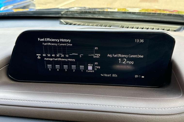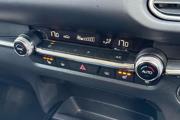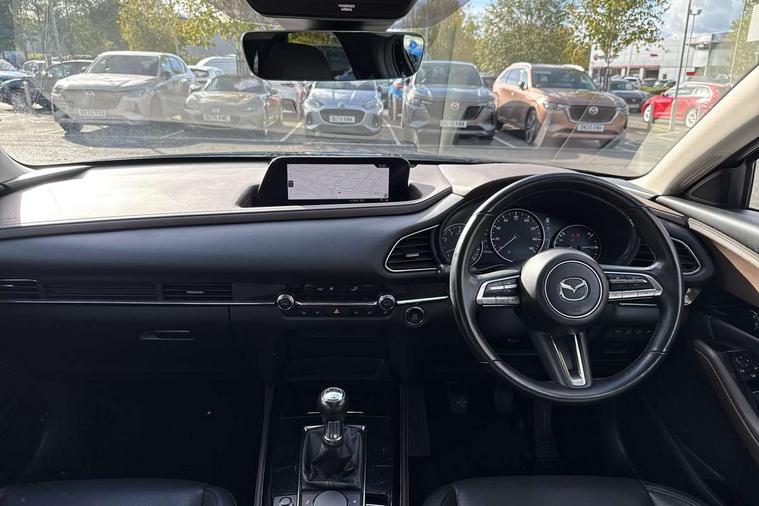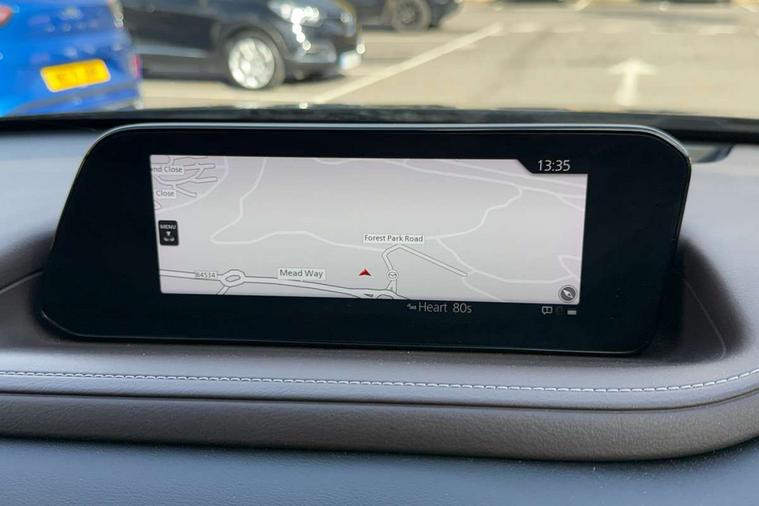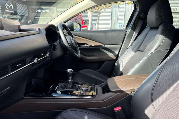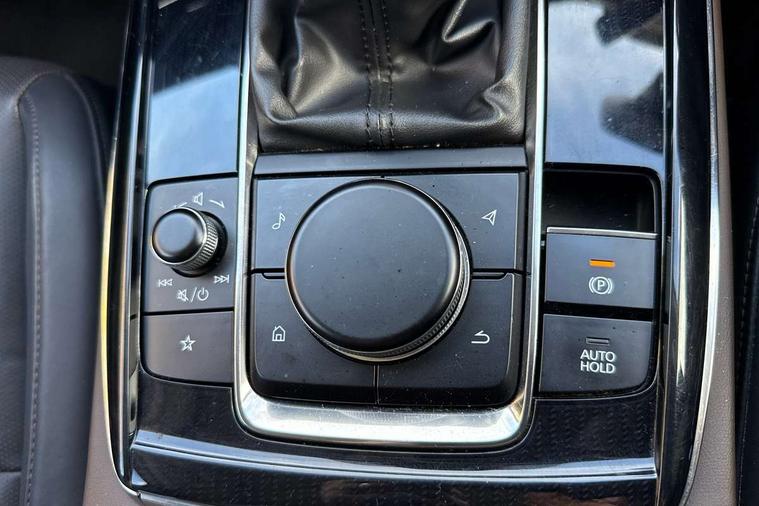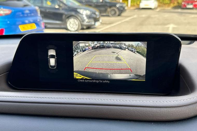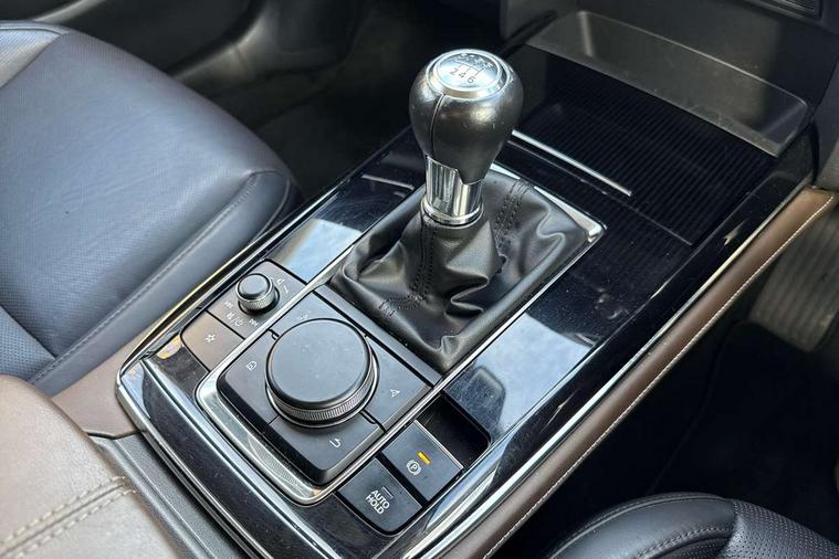 7" TFT Colour driver instrument panel display, 8.8" Colour centre touch screen display with Mazda Connect infotainment, Adaptive cruise control (Mazda radar cruise control), Apple car play/Android Auto, Blind spot monitoring with rear cross traffic alert, Driver attention alert system, E-call with GPS, Emergency stop signalling system, Engine start/stop button, Front and rear parking sensors, Integrated bluetooth, Integrated Mazda navigation system, Intelligent speed assist, Lane keep assist system (LAS) with Lane departure warning system (LDWS), Mazda connected services, PAS, Power lift gate, Reversing camera, Service indicator, Traffic sign recognition, Trip computer, Cylinder Deactivation, i-stop, 2 USB charging ports in front inner central armrest, AM/FM and DAB radio, Bose surround sound system with 12 Speaker, Bose center point, Bass match and audio pilot technology, Multimedia Commander including separate volume dial, Steering wheel mounted audio/bluetooth controls, Adaptive LED Headlights, Auto dimming driver's door mirror, Auto headlight levelling, B-pillar and C-pillar garnishes in piano black finish, Body coloured, electrically adjustable, heated auto power folding door mirrors with integrated indicators, Chrome finish signature wing in front grille, Coming/leaving home lighting function, Door mirrors with adjustable memory and tilt-down function when reversing, Dual chrome exhaust, Dusk sensing headlights, Electric front/rear windows with one touch auto up/down, Frameless auto dimming interior rear view mirror, Front kodo turn signal, Gloss black front grille, Gloss black rear roof spoiler, High beam assist, LED signature daytime running lights, Privacy glass (rear side windows and rear screen), Rain sensing front wipers with adjustable speed and intermittent wipe, Rear fog lights, Rear side wing doors, Rear wiper, Signature LED rear combination lights, Third brake light, 12V power outlet in centre console, 3 seat bench in 2nd row, 60/40 split fold down rear seats, Chrome horn pad ring, Chrome interior trim accents with steering wheel centre bezel, surround of engine start / stop button and glove box handle, Dashboard, door cards and front centre armrest in rich brown leather, Driver and front passenger visors with covered vanity mirror and driver ticket holder, Driver's seat power slide, recline, height, seat tilt and lumbar adjustment with head up display and driver door mirror memory, Driver, front passenger and two rear door storage, Driver, Front passenger and two rear grab handles with coathooks, Dual zone climate control air conditioning with rear air vents, Folding rear centre armrest with two cup holders, Front and rear (x3) head restraints, Front and rear LED lighting, Front armrest, Front centre storage with two cupholders with lid, Front passenger seatback pockets, Front passengers seat manual slide, recline and height adjustment, Gear shift indicator, Glovebox illumination, Heated front seats with 3 stage setting, Heated steering wheel, ISOFIX child seat anchorage points attached on outer rear seats, Leather upholstery with interior accents, Leather wrapped gear shift knob, Leather wrapped steering wheel with telescopic and tilt adjustment, LED luggage compartment lighting, Light roof headlining and pillars, Rear armrest inner material in cloth, Roof mounted sunglasses holder, Single front passenger seat, 3 point ELR front seat belts x2 with pretensioners, 3 point ELR rear seat belts, Anti-lock braking system (ABS), Drivers knee airbag, DSC - Dynamic Stability Control, Electronic parking brake with auto disengage function and auto hold function, Front and rear curtain airbags, Front dual stage driver and single stage front passenger airbags, Front passenger airbag cut-off switch, Front side airbags, Front smart city brake support, G-Vectoring control plus, Hill launch assist, Manual child lock in rear doors, Mild Hybrid system with regenerative braking, Seatbelt reminder for driver/front passenger and rear seats, Traction control system (TCS), Tyre pressure monitoring system (TPMS), Remote central locking with deadlocking and automatic door lock when driving, Smart keyless entry, Thatcham accredited alarm and immobiliser, Dark vinyl door panel inserts, 18" Silver alloy wheels, Emergency tyre repair kit,