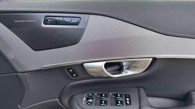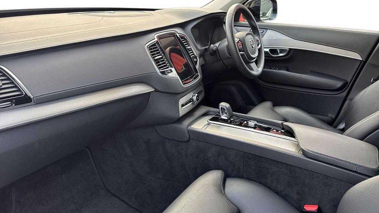 12.3" Progressive Driver Display, 360 degree surround view parking camera with side proximity sensors, 9" centre console portrait touch screen, Adjustable steering wheel force, Bluetooth hands free telephone connection, Driver alert control with lane keeping aid, Driver assistance (pilot assist and adaptive cruise control), Driver awareness - Blind spot information system with steer assist, cross traffic alert with autobrake and rear collision warning and mitigation, Emergency call service, Front and rear park assist, Google Automotive Services - Navigation with Voice recoginition and google assistant, Handsfree power tailgate opening and closing, Oncoming Lane Mitigation, Power operated tailgate, Service interval indicator, Speed limiter, Speed sensitive steering, Trip computer, Volvo on call, Wireless Mobile Phone Charger, 8 speed automatic transmission with start/stop + manual change functions, Touring chassis, DAB Radio (Digital Audio Broadcasting), Premium Sound by Harman Kardon, dirac unison, dolby pro logic II surround sound, 13 speakers/600W output and fresh air subwoofer, Steering wheel remote infotainment controls, Active bending headlights with adaptive shadow technology, Adaptive brake lights with high level LED brake lights, Auto dimming interior + exterior mirrors, Auto folding and heated power door mirrors, Automatic headlight levelling system, Automatic LED Headlights + Active high beam incorporating daytime running lights, Body colour bumpers, Front and rear power windows, Headlight cleaning system, Heated front windscreen, High gloss black door mirrors and window surround, High gloss black front and rear bumper deco, High gloss black mesh front grille with surround, Home safe and approach lighting, Integrated roof rails in high gloss black, LED front fog lights with cornering light function, Power glass tilt and slide panoramic sunroof with sun curtain, Puddle lights, Rain sensor with automatic windscreen wiper activation, Rear side wing doors, Rear wash/wipe with intermittent wipe setting, Roof antenna, Roof spoiler, Visible VIN plate, 12V socket front tunnel console, rear passenger compartment and cargo area, 2 seat bench in 3rd row, 2nd Row centre armrest with and cupholders, 3 seat bench in 2nd row, 4 zone electronic climate control with Clean zone air quality system + pollen filter, A-pillar parking ticket holder, Advanced interior air cleaner PM2.5, Air conditioning for 3rd row of seats, Ambient door and instrument panel lighting, B Pillar ventilation, Bright metal luggage threshold, Centre console cupholders and storage, Floor mats, Front and rear door pocket and front cupholder illumination, Front and rear reading lights, Theatre lighting and centre armrest storage illumination, Front footwell and side step illumination, Front headrests, Front seat cushion extensions, Heated front seats, Heated rear seats, Heated steering wheel, Height/reach adjustable steering column, Illuminated front and rear tread plates, Illuminated luggage compartment, Illuminated tailgate, Illuminated vanity mirrors + ticket holder, Illumination lockable glovebox compartment, Integrated sun curtains in rear doors, Isofix outer rear child seat preparation in 2nd row, Load protection net, Luggage compartment divider with grocery bag holder, Outboard armrest with cupholder and storage for third row passengers, Power driver seat with multi directional lumbar support and memory for seat and exterior mirrors, Power folding 2nd row headrests, Power passenger seat with multi directional lumbar support and memory, Rear footwell and side step illumination, Rear headrests, Semi automatic load cover, Single front passenger seat, Underfloor luggage compartment storage, 7 three point seatbelts, City safety with steering support includes pedestrian, cyclist and large animal detection and front collision warning with full auto brake, Drivers knee airbag, Dual stage driver/passenger airbags, First aid kit, Front seats SIPS airbags, Hill descent control - off drive mode, Hill start assist, IC (Inflatable Curtains) - Full Length, Passenger airbag cut-off switch, Power child locks on rear doors, Power parking brake with auto hold function, Road sign information display, Run off Road Mitigation, Run off Road Protection, Seatbelt reminder and pretensioners for all seats, SIPS (Side Impact Protection System), Slippery road and hazard light alert, Stability and Traction Control with Spin control, Engine Drag Control and Corner Traction Control, Tyre pressure monitoring system, Vehicle deceleration control with Anti-lock Brake System, Electronic Brake Distribution and Emergency Brake Assist, Warning triangle, WHIPS whiplash protection system - front, Anti-theft alarm including immobiliser/volume sensor + level sensor, Care key with user defined top speed, Key integrated remote control central locking + fuel flap with deadlocking system and auto open/close power windows, Keyless drive includes keyless entry and keyless start, Locking wheel nuts, Private locking for glovebox and tailgate, Tailored Instrument Panel and Door Tops with Contrast Stitching, Tempa spare wheel and jack,