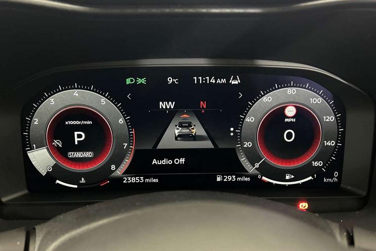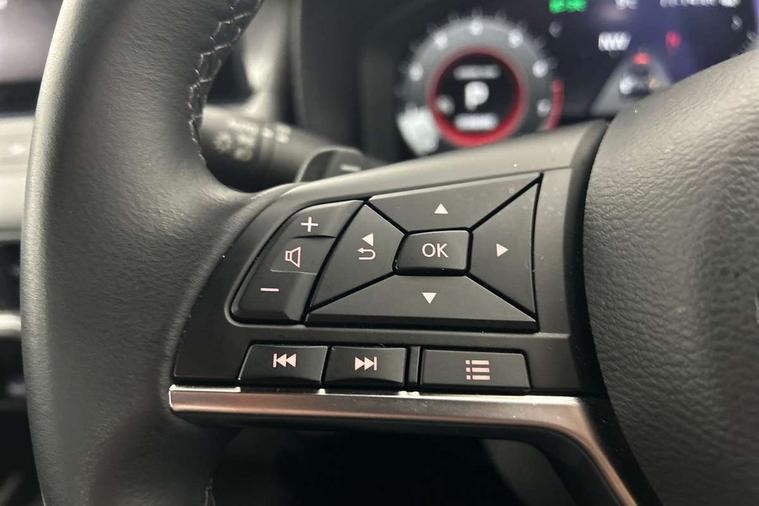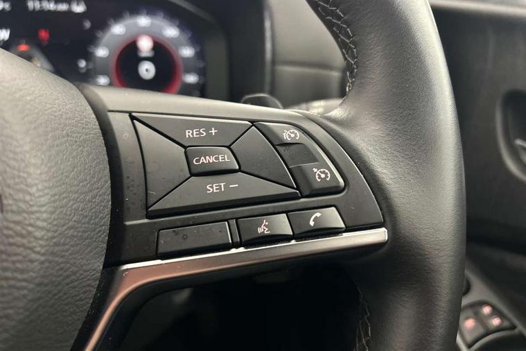 12.3" full colour TFT screen combimeter, Drive modes select (Eco, normal and sport), Emergency and breakdown call, Front parking sensor, Idle start/stop system, Intelligent driver alert system, Intelligent lane intervention, Lane departure warning system, Nissan connect 12.3" touch screen entertainment system, Nissan connect nav with TomTom traffic, Nissan connect services and Wifi connection, Outside temperature sensor, Power Steering, Rear parking sensor, Stop/start button, Traffic sign recognition, Trip computer, Voice recognition, Wireless Apple CarPlay and Google Android auto, Wireless Smartphone charger, 2 X Rear console USB port, 6 speakers, Bluetooth system, USB, Aux-in and 12V socket, DAB Digital radio, Auto dimming frameless rear view mirror, Automatic hazard signal with emergency stop signal, Body colour door handles, Electrically adjustable door mirrors with integrated indicators, Follow me home headlights, Front and rear electric window with one touch driver window, Heated and auto folding door mirrors, High beam assist, LED 3rd brake light, LED daytime running lights, LED headlamps, LED rear fog lamp, LED rear lamps, One touch passenger window, Rain sensor windscreen wipers, Rear privacy glass, Rear side wing doors, Rear wiper, Roof spoiler, Shark fin roof antenna in solid Black, Three blink turn signal, 3 height adjustable rear headrests, 3 seat bench in 2nd row, 60/40 split folding rear seat, Automatic climate control, Card holder on driver sunvisor, Cloth/Synthetic leather with melange fabric inserts, Driver side rear coat hanger, Driver/passenger sunvisors and vanity mirrors, Front and rear cabin lights, Front armrest, Front door pockets with bottle holders, Front head restraints, Front/rear passenger grab handles, Height adjustable driver's seat, Internal chrome door handles, Leather gearshift knob, Leather steering wheel, Luggage board, Luggage space lighting, Monoform sporty seats, Multifunction steering wheel, Rear door bottle holders, Single front passenger seat, Steering wheel mounted gearshift paddles, Synthetic leather kneepad, Telescopic steering wheel adjustment, Two cupholders in front centre console, Two rear isofix child seat anchorage points with top tether, Welcome light and console tray ambient lighting, ABS with EBD and brake assist, Active ride control, Active Trace Control, Driver and passenger airbags, Driver and passenger side airbags, Electric handbrake with auto hold function, Electronic Stability Programme (ESP), Front and rear curtain airbags, Height adjustable seatbelts, Hill start assist, Intelligent emergency braking with pedestrian and cyclist recognition, Rear door child safety locks, Seatbelt reminder for driver/front passenger and rear seats, Three 3 point rear seatbelts, Traction control, Tyre pressure monitoring system, VDC Dynamic Vehicle Control, Alarm, Immobiliser, Intelligent key and start push button with walk away lock and approach unlock functions, Remote central locking, 17" Alloy wheels,