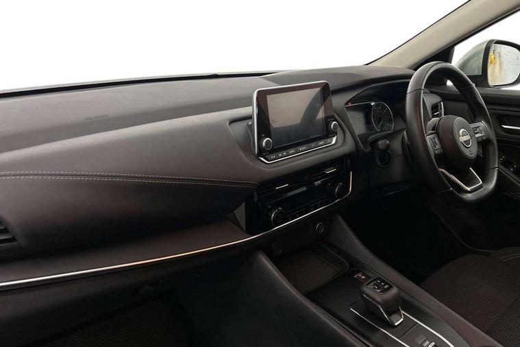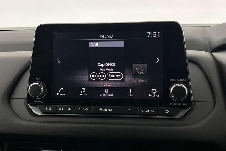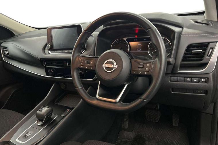 7" High definition full colour TFT screen combimeter, Android auto/Apple CarPlay (Wired), Blind spot warning, Drive modes (sport, normal, eco), Electric speed sensitive power steering, Emergency and breakdown call, Idle stop/start system, Intelligent Cruise control (ICC), Intelligent driver alert system, Intelligent forward collision warning, Intelligent lane intervention, Lane departure prevention, Lane departure warning system, Maximum speed limiter, Nissan connect 8" touchscreen infotainment system, Push button starter, Rear cross traffic alert, Rear parking sensors, Rear view camera, Traffic sign recognition with legal speed adjustment, Trip computer, 6 speakers, AM/FM audio system with DAB, Bluetooth audio streaming, Front USB connections (Type-A and Type-C), 3rd brake light, Auto dimming rear view mirror, Auto rear wiper when reversing, Automatic hazard signal with emergency stop signal, Body colour mirror caps, Body coloured door handles, Bodyside mouldings, Chrome side window finisher, Door handle with button, Electric auto folding door mirrors, Electrically adjustable and heated door mirrors with LED turn indicator, Follow me home headlights, High beam assist, Intelligent auto headlights, LED daytime running lights, LED Headlights, LED rear lights, One touch front and rear electric windows with remote opening and closing, Partially body coloured bumpers, Rear reversing light (bulb lighting), Rear roof spoiler, Rear side wing doors, Shark fin antenna, Splash free rain sensing wipers, Three blink turn signal, 12v power socket in dashboard and luggage, 2x Rear coat hooks, 3 bench rear seats in 2nd row, 3 rear headrests, 4 folding assist grip, 6-way manually adjustable driver's seat, 60/40 split folding rear seat bench, Centre console storage tray, Chrome interior door handles, Cloth monoform upholstery, Driver and front passenger sunvisors with illuminated vanity mirrors, Driver seat back pocket, Dual zone automatic climate control with pollen filter, Electrically adjustable lumbar support for driver, Front and rear door storage, Front centre console and armrest, Front cupholders x 2, Front door with bottle holders, Glovebox with light, Hard trunk cover, Height adjustable driver's seat, Height adjustable front headrests, Height adjustable passenger seat, Leather steering wheel, Luggage space lighting, Manually adjustable passenger (slide recline + lifter), Multifunction steering wheel, Passenger seat back pocket, Rear armrest with 2 cupholders, Rear door bottle holders, Single front passenger seat, Steering wheel gearshift paddles, Steering wheel switches, Sunglasses holder, Tilt/telescopic adjustable steering wheel, Two rear isofix child seat anchorage points with top tether, 3x3 point rear seatbelt pretensioners + load limiters, ABS with EBD and brake assist, Active brake limited slip, Auto hold function, Child locks on rear doors, Curtain and front side, far side airbags, Driver and passenger airbags, Driver, passenger and 2nd row rear seat belt reminder, Electronic parking brake, Front seatbelt pretensioners + load limiters, Height adjustable front seatbelts, Hill start assist, Intelligent blind spot intervention, Intelligent front emergency braking with pedestrian, cyclist recognition and junction assist, Intelligent rear automatic braking, Tyre pressure monitoring system, Vehicle dynamic control, Capless fuel filler, Engine immobiliser, Intelligent Key, Remote central door locking with deadlocking, Thatcham Cat.1 alarm, Interior instrumental panel A finisher, 17" alloy wheels, Tyre puncture repair kit,