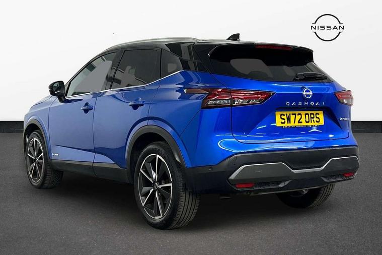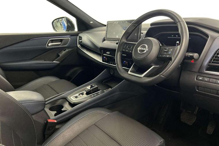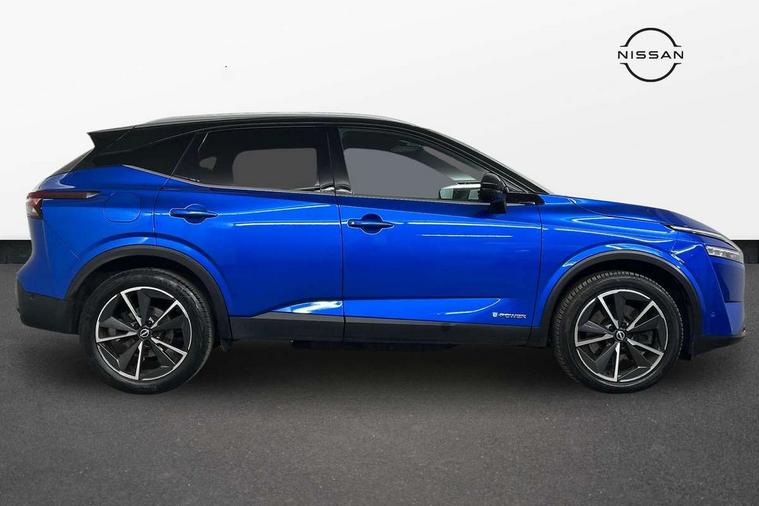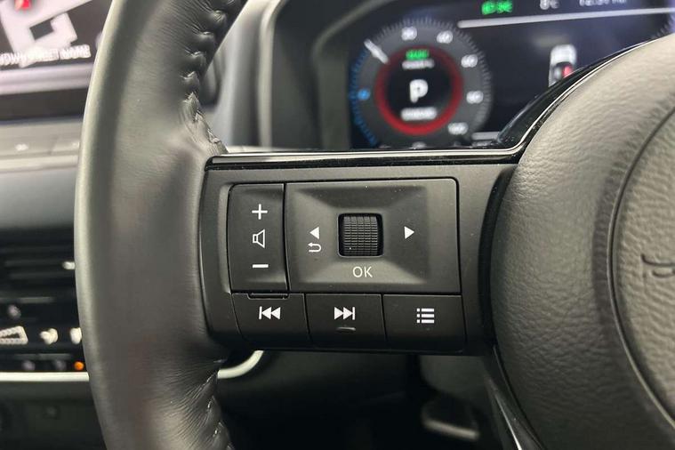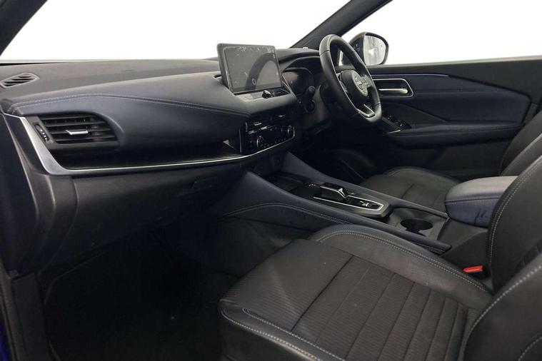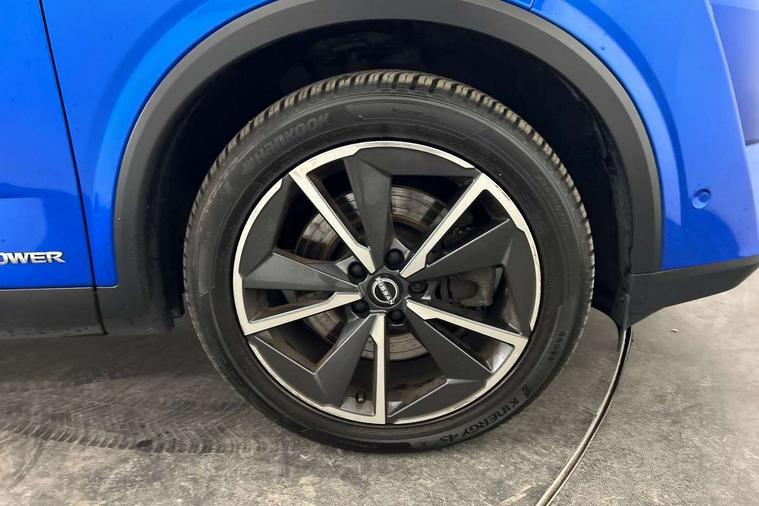 Advanced windscreen head up display, Android auto/Apple CarPlay (Wired), Blind spot warning, Drive modes (sport, normal, eco), Electric speed sensitive power steering, Emergency and breakdown call, Front and rear parking sensors, Full Digital 12.3" TFT Digital Combimeter, Google maps services - search, weather, 3D maps and Google street view, Hands free power tailgate, Idle stop/start system, Intelligent around view monitor, Intelligent Cruise control (ICC), Intelligent driver alert system, Intelligent forward collision warning, Intelligent lane intervention, Lane departure prevention, Lane departure warning system, Lane keep assist, Moving object detection, Nissan connect 12.3 inch touchscreen infotainment system, Nissan connect navigation, ProPILOT with Navi-Link, Push button starter, Rear cross traffic alert, Rear view camera, Remote control services - door locks, lights, horn and car locator, Telematics - notifications and connectivity services, TomTom live traffic services, Traffic sign recognition with legal speed adjustment, Trip computer, Virtual personal assistant and firmware over the air capability, Wireless apple carplay, Wireless charging pad, 6 speakers, AM/FM audio system with DAB, Bluetooth audio streaming, Front USB connections (Type-A and Type-C), Rear USB charging only ports (Type-A and Type-C), Auto dimming rear view mirror, Auto rear wiper when reversing, Automatic hazard signal with emergency stop signal, Body colour mirror caps, Body coloured door handles, Bodyside mouldings, Chrome side window finisher, Door handle with button, e-POWER badging, Electric auto folding door mirrors, Electrically adjustable and heated door mirrors with LED turn indicator, Follow me home headlights, Front and rear LED turning signals, Headlights auto levelling system, Intelligent auto headlights, LED daytime running lights, LED headlights with adaptive driving beam, LED rear lights, One touch front and rear electric windows with remote opening and closing, Partially body coloured bumpers, Privacy glass, Rear bumper with graphite insert, Rear reversing light (bulb lighting), Rear roof spoiler, Rear side wing doors, Rear styling plate, Shark fin antenna, Splash free rain sensing wipers, Super UV and infrared cut glass, Thermaclear heated windscreen, Three blink turn signal, 12v power socket in dashboard and luggage, 2x Rear coat hooks, 3 bench rear seats in 2nd row, 3 rear headrests, 4 folding assist grip, 6 Luggage hooks - 4 on floor, 2 on side, 60/40 split folding rear seat bench, Ambient lighting around centre console, Ambient lighting in front doors, Centre console storage tray, Chrome interior door handles, Cloth/syntech leather monoform upholstery, Dark black/blueish PVC wrapping, Dark headlining, Driver and front passenger sunvisors with illuminated vanity mirrors, Driver seat back pocket, Dual zone automatic climate control with pollen filter, e-POWER shifter, Electrically adjustable driver seat, Electrically adjustable lumbar support for driver, Front and rear door storage, Front centre console and armrest, Front cupholders x 2, Front door with bottle holders, Glovebox with light, Hard trunk cover, Heated front seats, Heated steering wheel, Height adjustable driver's seat, Height adjustable front headrests, Height adjustable passenger seat, Leather steering wheel, Luggage board system, Luggage space lighting, Manual lumbar support on passenger seat, Manually adjustable passenger (slide recline + lifter), Multifunction steering wheel, Passenger seat back pocket, Rear armrest with 2 cupholders, Rear door bottle holders, Single front passenger seat, Soft PVC kneepad, Steering wheel switches, Tilt/telescopic adjustable steering wheel, Two rear isofix child seat anchorage points with top tether, Welcome light and doors with console tray ambient lighting, Glass roof pack with roof rails - Qashqai, 3x3 point rear seatbelt pretensioners + load limiters, ABS with EBD and brake assist, Active brake limited slip, Auto hold function, Child locks on rear doors, Curtain and front side, far side airbags, Driver and passenger airbags, Driver, passenger and 2nd row rear seat belt reminder, Electronic parking brake, Front seatbelt pretensioners + load limiters, Height adjustable front seatbelts, Hill start assist, Intelligent blind spot intervention, Intelligent front emergency braking with pedestrian, cyclist recognition and junction assist, Intelligent rear automatic braking, Tyre pressure monitoring system, Vehicle dynamic control, Capless fuel filler, Engine immobiliser, Intelligent Key, Remote central door locking with deadlocking, Thatcham Cat.1 alarm, Interior instrumental panel C finisher, 19" Diamond cut alloy wheels, Tyre puncture repair kit,