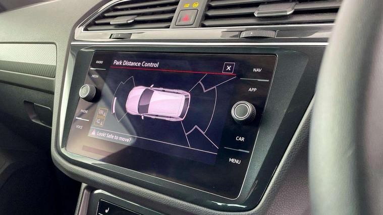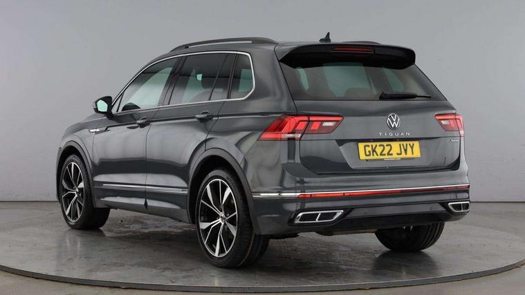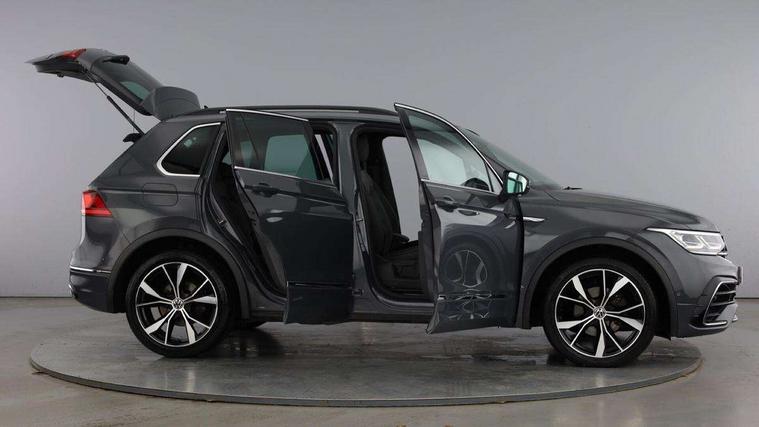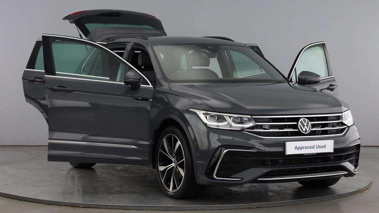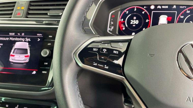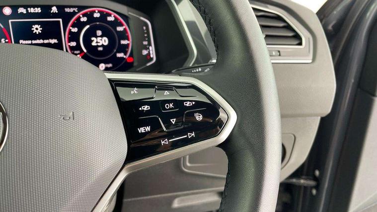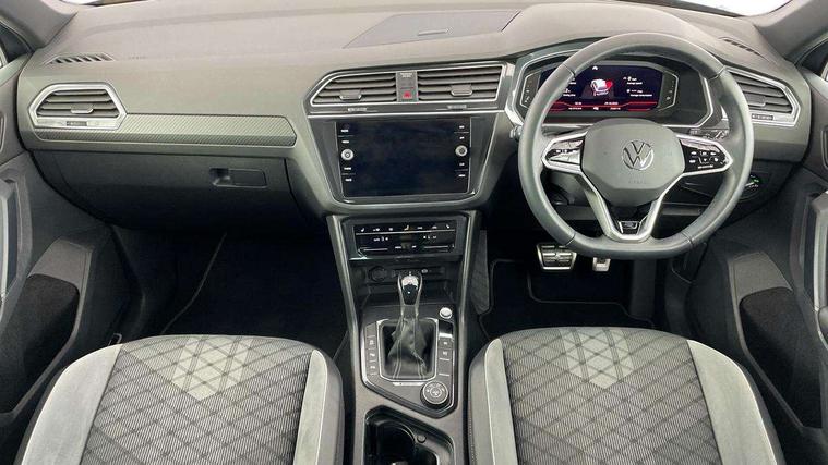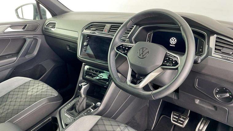 Adaptive cruise control ACC stop and go including speed limiter, App-Connect incl. App-Connect Wireless for Apple CarPlay and Android Auto, Bluetooth phone integration system, Digital Cockpit Pro - Active info display, Distance control assist, Driver alert system, Driver profile selection, Dynamic road sign display, eCall emergency call system, Electromechanical speed sensitive power steering, Engine start/stop button, Lane keeping system Lane Assist, Lights on warning, Multifunction front facing camera, Outside temperature display, Premium multifunction display with multi colour display, Remote control boot opening, Rev counter, Revision / skills operating concept travel assistant, Service interval indicator, Speed limit display, Start/stop system with regenerative braking, Trip computer, Warning sound and light for doors and tailgate open, All wheel drive - 4Motion, Battery regeneration during braking, Diesel particulate filter, Misfuel prevention device for diesel engine, Selective Catalytic Reduction, XDS electronic differential lock for improved traction and handling, 2 USB-C ports in the front, 1 USB-C charging socket on the center console in the rear, Diversity antenna for FM reception, Radio, SD card slot, Simultaneous pairing of 2 compatible mobile devices, SMS functionality - read, compose and send SMS messages using touch-screen display, Title and cover art display, Auto dimming interior rear view mirror, Automatic headlight control system, Black roof rails, Body colour door handles, Body coloured bumpers in R Line style, Body coloured door mirrors with integrated indicators, Chrome moldings on the side windows, Coming/leaving home lighting function, Dynamic headlight range control, Front and rear electric windows, Heated rear window, High level 3rd brake light, Laminated safety glass windshield, heat and sound insulating, LED rear number plate lights, License plate carrier in front and rear, Poor weather light and cornering light, Privacy glass for rear side windows and rear window, R Line body kit, R Line side sills, Rain sensor windscreen wipers, Rear exhaust tailpipe, Rear fog lamp, Rear side wing doors, Rear spoiler in R style, Rear windscreen washer and wiper with interval delay, Side and rear windows in heat insulating glass, Trailer Stability Programme, Unique R Line badging, Windscreen wipers/ intermittent wipe + 4 position delay, 12V outlet in center console rear and in luggage compartment, 12V outlet in front and tray, 2 cup holders in front, 2 LED front reading lights, 2 LED rear reading lights, 3 bench rear seats in 2nd row, 3 rear headrests, 4 load lashing points, 40:20:40 split folding rear seats, Air Care Climatronic 3 zone automatic climate control with enhanced air filter and controls in the rear, Backrest release for left front seat, Black headlining, Brushed stainless steel pedals and footrest, Carpet mats in front and rear with decorative stitching in Gray, Climate control unit rear with touch function, Door and side trim panel in foam film, insert in leatherette, Front centre armrest, Front footwell illumination, Front seats head restraints (x-adjustment), Height adjustable front seats, Height/reach adjust steering wheel, Instrument lighting white adjustable panel illumination, Interior light with delay, Isofix Preparation 2 Rear child seats, Leather gear knob, Lockable cooled glovebox, Luggage compartment lighting, Luggage net, Rear bench seat asymetrically split folding, longitudinally movable and folding with load-through hatch and center armrest, Remote unlocking for rear seat backrest, Removable luggage cover, Removable rear headrests, Safety optimised front head restraints, Single front passenger seat, Sliding/reclining rear seats, Standard rear seat release, Storage compartment in driver's door, Storage compartment in passenger's door, Storage compartment in rear doors, Storage compartments in luggage area left and right, Storage tray on dashboard, Sun visors with illuminated vanity mirrors, Top front comfort seats, Variable boot floor, height adjustable and removable, Ambience pack - Tiguan R Line, Driver assistance pack plus - Tiguan DSG, Park assist pack - Tiguan, 3 point seat belt for centre rear seats, 3 point seat belts with seat belt pretensioners for the outer rear seats, Active bonnet, Curtain airbags for front and rear passengers, Driver/Front Passenger airbags, Drivers knee airbag, Electronic parking brake with auto hold, Electronic Stability Control with driver steering recommendation, ABS, ASR, EDL, EDTC and trailer stabilization, Front assist with autonomous emergency braking (for Adaptive Cruise Control ACC up to 130 mph), Front disc brakes, Front passenger airbag deactivation, Front side airbags, Height adjustable front 3 point seatbelts + pretensioners, Hill hold control, Manual child proof rear door locks, Pedestrian monitoring system, Power assisted brakes, Proactive passenger protection system in combination with front assist, Rear disc brakes, Rigid safety cell with front and rear crumple zones, Two tone horn, Warning sound and light for front seat belts if unfastened, Anti theft alarm system with interior monitoring, backup horn and towing protection, Anti theft wheel bolts, Electronic engine immobiliser, 20" Misano black with diamond turned surface alloy wheels with Airstop tyres, Tool kit,