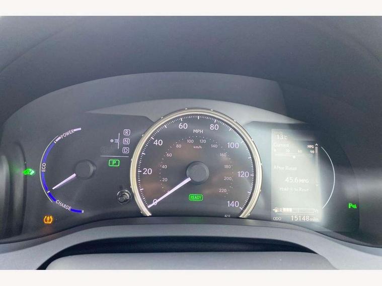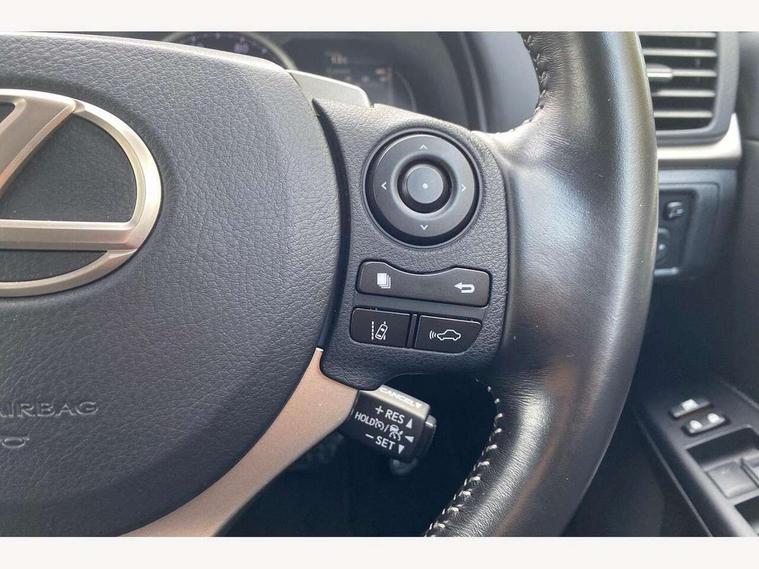 Bluetooth mobile phone connection, Digital clock, Drive mode selector, EPS with speed sensitive steering, Lexus Navigaton System, Lexus safety systems+ Dynamic radar cruise control, pre-collision system, lane keep assist, road sign assist, automatic high beam, Push button starter, Rear parking sensors, Reversing camera, Trip computer, Vehicle Dynamics Integrated Management, Vehicle Stability Control (VSC), 2 USB ports, 4.2" thin film transistor, AUX socket with VTR compatibility, DAB Digital radio, Lexus media display with 6 speakers, 7" display screen, CD and rotary dial controller, Black scuff plates, Body colour bumpers, Front and rear one-touch automatic power windows equipped with a jam protection, Halogen headlights, Heated and electrically folding outside mirrors with turn indicators and puddle light, LED brake lights and rear lights with emergency brake signal, LED daytime running lights, LED front fog lamps, Rain sensor windscreen wipers, Rear spoiler, Rear wiper, 2 cup holders in the front and rear centre console, 2 map pockets in the rear of the front seats, 2 x coat hooks in the rear, 2 x sun visors with vanity mirror and lamp, 4 x tie down hooks in the boot, 60/40 split folding rear seat, Card holder installed in drivers sun visor, Driver 6-way manually adjustable front seat, Driver and passenger door pocket, Dual zone climate control, Fabric upholstery, Front and rear head restraints, Front and rear textile carpet mats, Front centre armrest with storage, Front glove box with lock, Manually reach and rake adjustable leather steering wheel, Multifunction steering wheel, Passenger 4-way manually adjustable front seat, Storage tray under the deck board boot + storage location for tonneau cover, Sunglasses storage by interior rear view mirror, Whiplash lessening front seats, 2 x Isofix child rear seat restraints, 3 point ELR front seatbelts with pretensioners, ABS, BAS (Brake Assist System), Driver and front passenger 2 stage airbag, Driver and front passenger knee airbag, Driver and passenger side airbags, ECB (Electronically Controlled Brake System), Electronic brake force distribution, Front and rear curtain airbags, Hill assist control, Passenger airbag cut-off device, Three 3 point rear seatbelts, Traction control, Tyre pressure warning, Anti-theft system with siren, intrusion sensor, tilt sensor and immobiliser, Locking wheel nuts, Remote central locking, Two motion door lock with double lock, VIN Window etching, 17" alloy wheels, Space saver spare wheel,