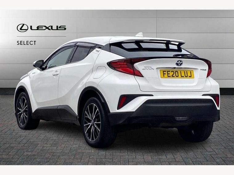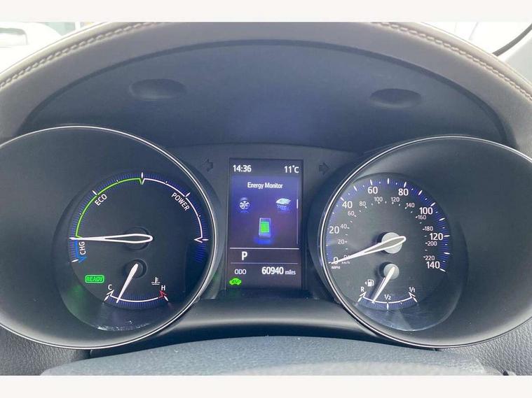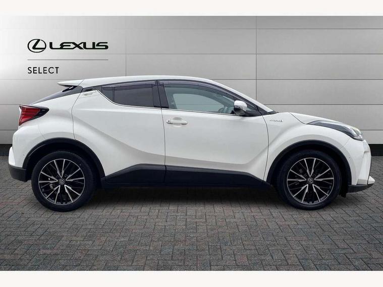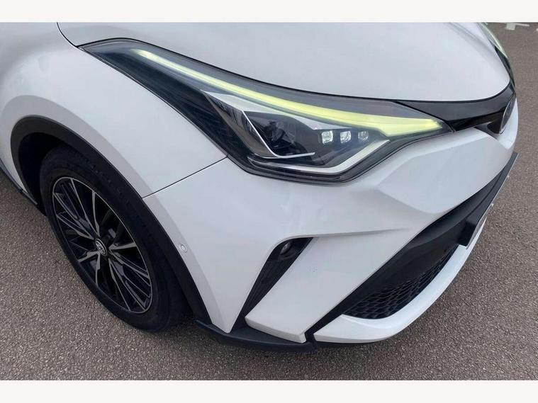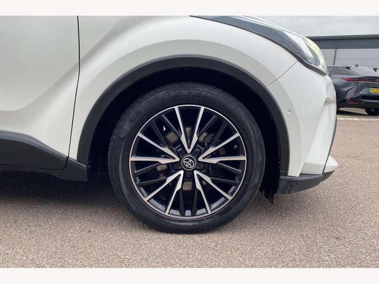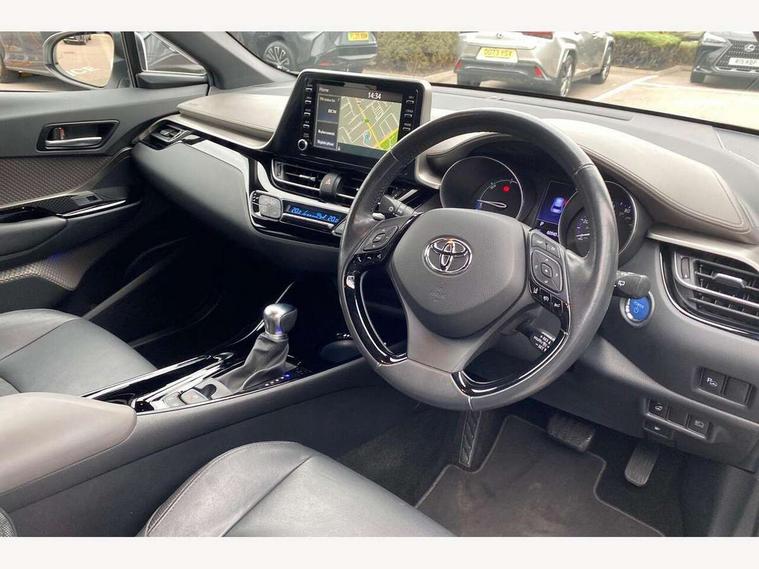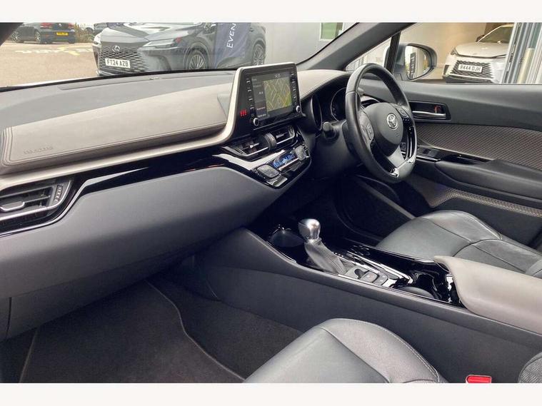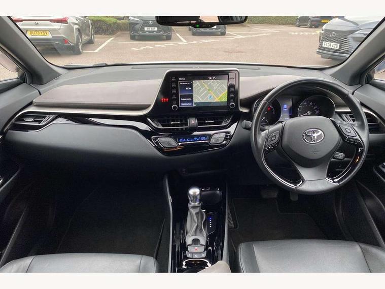 4.2" coloured TFT screen for multi-information display, Adaptive cruise control, Bluetooth connectivity, Electric power steering, Hybrid system indicator, Lane departure alert with steering control, Remote boot door release in cabin, Remote boot door release in key, Reversing camera, Road sign assist - RSA, Simple Intelligent parking assist, Touch 2 Go navigation system, Trip computer, Voice recognition, Vehicle Stability Control (VSC), 6 speakers, Aux connectors + 12V front outlet, DAB Radio (Digital Audio Broadcasting), Toyota touch 2 multimedia system with 8" display, USB connector integrated with radio and CD player, Wi-fi connectivity, Adaptive front light system, Adaptive LED Headlights, Anti-jam protection on power windows, Auto high beam, Auto up and down function on all power windows, Automatic headlight levelling, Automatic headlights, Automatic headlights cut-off, Black and body coloured rear bumper, Black front bumper, Black upper front grille, Body colour door handles, Body colour door mirrors, Boot door release with push button, Electric heated door mirrors, Follow me home headlights, Front and rear power windows, Front spoiler, Hard tonneau cover, Honeycomb lower front grille, LED daytime running lights, LED fog lights, LED front light guide, LED High mounted stop light, LED rear brake lights, LED rear combination lights, Noise reduction layer on front windows and windscreen, Power adjustable door mirrors, Privacy glass, Rear spoiler, Rear tailgate, Rear window defogger, Rear window wiper, Shark fin antenna, UV-filter on driver and passenger windows, UV-filter on rear windows, 12v power outlet - front, 3 rear headrests, 3 spoke leather steering wheel, 60/40 split folding rear seat, Adjustable rear headrests, Adjustable speed limiter switch on steering wheel, Assist grips front and centre pillar, Audio and telephone switches on steering wheel, Black front door assist grips, Blue ambient lighting on front cup holders, Blue ambient lighting on front doors, Boot light, Chrome interior door handles, Driver and front passenger personal light, Driver and front passenger Whiplash Injury Lessening seats, Driver and passenger seatback pockets, Dual zone automatic air conditioning, Front cupholders, Front head restraints, Front sports seats, Glovebox with internal light, Heated driver and front passenger seats, Heated steering wheel, Hooks for luggage holding net, Humidifying Nanoe air purifier, Illuminated entry system, Isofix attachments on rear seats, Leather gearshift, Light on driver sun visor, Light on passenger sun visor, Manual telescopic steering wheel, Manual tilt steering wheel, Microphone on front personal light, Mirror on driver sun visor, Mirror on passenger sun visor, Multimedia switches on steering wheel, Pollen filter, Power adjustable lumbar support on driver seat, Power tilting cushion on driver seat, Shopping bag hooks, Slow opening on lower glovebox, Voice recognition switch on steering wheel, Leather pack - C-HR, Tech with parking sensor pack - C-HR, 16 Disk front wheel brake, 3x3 point rear seatbelts, ABS+EBD+Brake assist, Electronic parking brake, ESP + traction control, Front and rear seatbelt reminder, Front passenger airbag on/off switch, Hill start assist control (HAC), Pre collision system with pedestrian detection, Pre-tensioners and force limiters, Rear door child safety locks, SRS Airbags - Driver + Front passenger, front side, front and rear curtain and driver's knee airbags, Toyota safety sense, Tyre pressure monitoring system, Glass-breaking alarm sensors, Immobiliser, Intrusion alarm, Intrusion sensor, Motion sensor alarm, Power door locks, Power passenger window lock, Remote central locking, Remote door lock, Black lower dashboard, Black lower driver dashboard, Dark brown upper dashboard, Piano black console, Silver deco line on upper dashboard, Tyre repair kit,