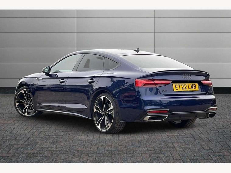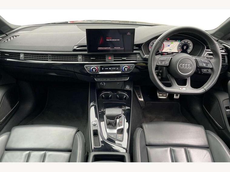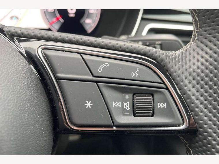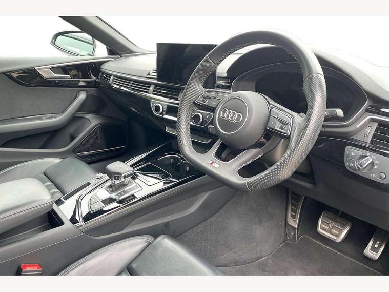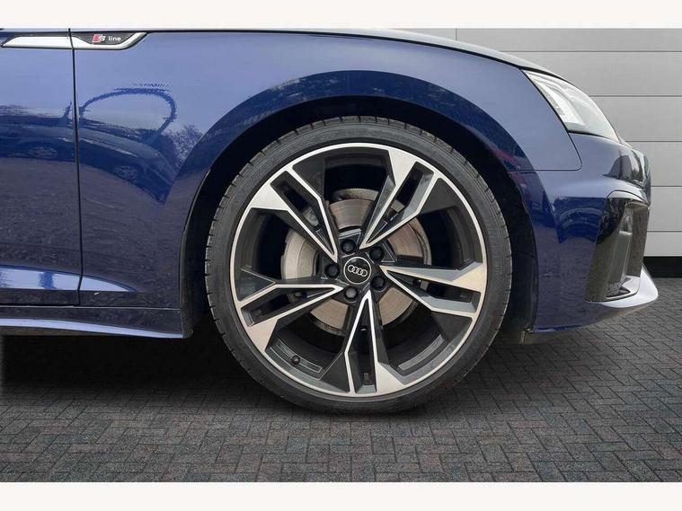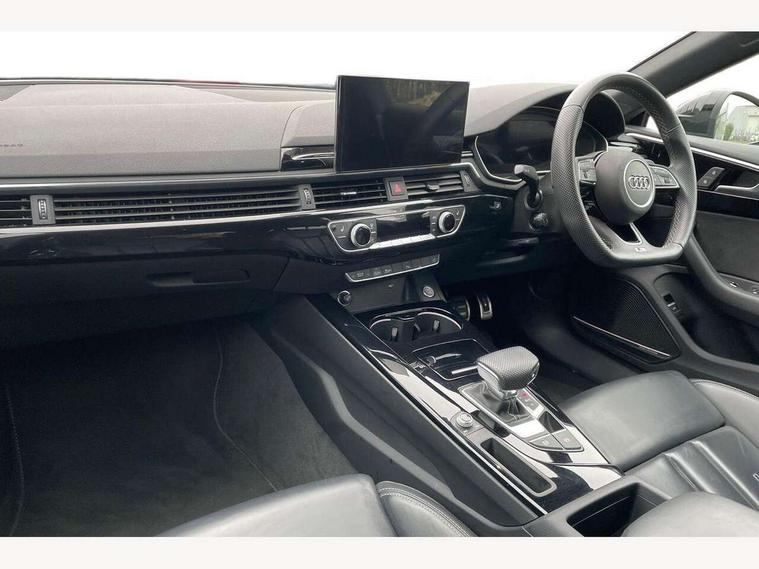 Audi connect safety and service (e-call), Audi connect with Amazon Alexa Integration, Audi drive select (Auto, Comfort, Dynamic, Efficiency and Individual), Audi parking system plus with front and rear sensors, Audi smartphone interface, Audi virtual cockpit - 12.3" full colour digital instrument cluster, vehicle/engine speed, Radio/media information+Driver assistance systems, Automatic start-stop system with coasting functionality and efficiency programme, Bluetooth interface, Electro-mechanical power steering, Email, calendar and text messages displayed via MMI, MMI nav+ with MMI touch - 10.1" high resolution MMI display, touch sensitive, 3D map, route/country info, dynamic route guide, personal route assist, Power operated tailgate, Rear view camera, Service interval indicator, Voice control system, Sports suspension lowered by 23mm, 8 passive loudspeakers, CD player, DAB digital radio reception, Two additional USB ports for rear passenger in rear centre console, Two SDXC card slots, Audi matrix LED headlights with LED rear lights + dynamic front and rear indicators, Auto dimming rear view mirror, Black audi rings decal above rear sills, Black door mirror housings, Body colour door handles, Body colour front spoiler lip, Body colour side sill trim, Electric adjustable heated door mirrors, Electric folding door mirrors, Electric front windows, Front fog lights, Honeycomb structure radiator grille in grained matt black, LED daytime running lights, LED third brake light, Matt aluminium silver tailpipe trim, Privacy glass, Rain and light sensors, Rear diffuser in matt titanium black with trim strip in matt aluminium silver, Rear side wing doors, S model rear spoiler in black, Side air inlets in grained matt black with matt aluminium silver inlay, Sport front and rear bumpers with side skirts, Variable front intermittent wipers, Windscreen with acoustic glazing, 3 Spoke flat bottom high multi-function leather steering wheel with shift paddles, 4 way electric lumbar support for driver and front passenger, 40/20/40 split folding 3 seater rear bench seat, Adjustable steering column, Black cloth headlining, Black perforated leather gearknob, Contrast stitching on seats, steering wheel and gear lever gaiter, Deluxe 3 zone electronic climate control, Front centre armrest, Front head restraints, Front/rear floor mats, Heated front seats, Illuminated door sill trim with S logo, ISOFIX child seat mounting and top tether, Luggage compartment mat, Manual seat adjustment, Rear headrests, Single front passenger seat, Stainless steel pedals, Sunvisors with vanity mirrors, Black styling pack - A5 Coupe/Sportback, LED interior light pack - A5/RS5, 3x3 point rear seatbelts, 6 airbags - Driver, front passenger, curtain and side airbags, Electromechanical parking brake, Electronic Stabilisation Control (ESC) including ABS, ASR and EDL, Front passenger airbag deactivation, Height adjustable front seatbelts, Hill hold assist, Multi collision brake assist, Pop-up bonnet for pedestrian protection, Pre sense city, Seatbelt monitoring, Tyre pressure warning, Variable restraint system, Warning triangle and first aid kit, Anti theft alarm system, Anti theft wheel bolts, Immobiliser, Keyless Go, Remote central locking, Piano black finish inlay, 20" 5 twin spoke polygon design alloy wheels in gloss anthracite black and gloss turned finish, Tool kit, Tyre repair kit,