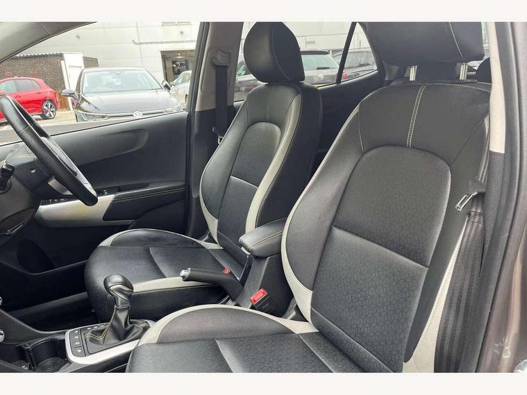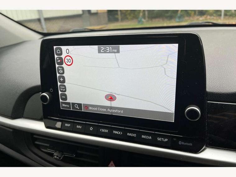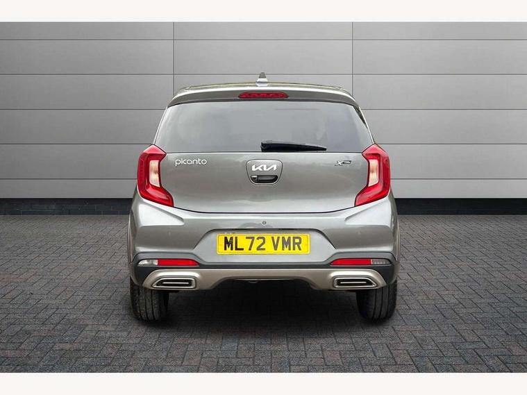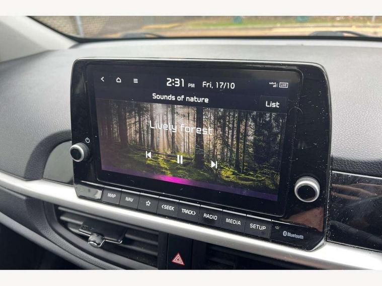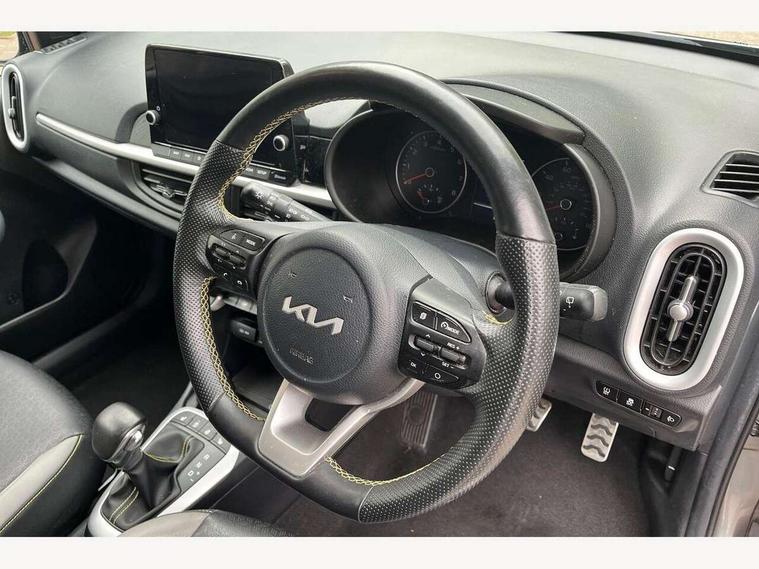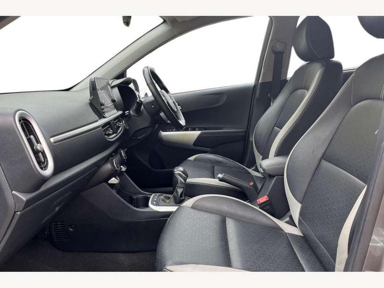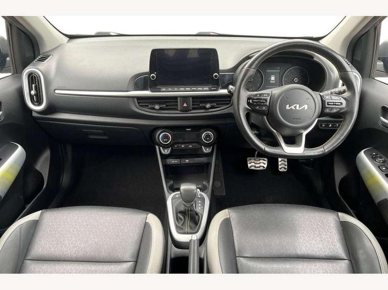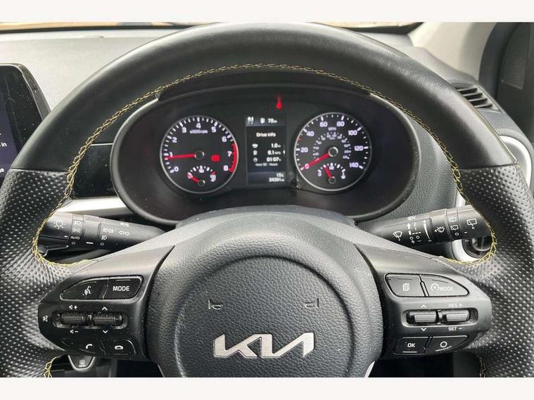 8" touch screen satellite naviagtion with RDS and DAB with telematics, Apple car play/Android Auto with voice control, Cruise control + speed limiter, Emergency call service, Emergency stop signalling system, External temperature gauge, Kia Connect (UVO), Motor driven power steering, Rear parking sensors, Reversing camera system with dynamic guidelines (Integrated into centre fascia screen), Tachometer, Trip computer, Wireless Smartphone charger, 6 speaker audio system, Bluetooth with music streaming, Steering wheel mounted controls, USB ports for connection of a media device, Automatic headlight control system, Bi-function projection headlights, Black beltline mouldings, Black grille with silver surround, Black side sill moulding, Black wheel arch cladding, Body colour B pillars, Body colour bumpers, Body coloured mirrors and chrome exterior handles, Day/night rear view mirror, Electric adjustable/heated/folding door mirrors with LED indicators lights, Front and rear bumpers with silver skid plates and twin exhaust, Front and rear electric windows with drivers's auto up/down function, Front fog lights, Headlamp levelling, Heated rear window, High mount brake light, LED daytime running lights, LED rear fog lights, LED rear lights, Privacy glass - Rear windows and tailgate, Rain sensor, Rear side wing doors, Rear wash/wipe, Speed variable front wipers, Tinted glass, Visible VIN plate, Welcome and follow-me home light functionality, 1 x rear coat hook, 12V power point front, 3 seat bench in 2nd row, 3 x passenger assist grips, 60/40 split/folding 2nd row of seats, All round height adjustable headrests, Automatic air conditioning, Centre Console with Storage Box and Sliding Armrest, Cupholders in centre console, D-cut steering wheel with green stitching, Driver and front passenger sunvisors with driver's side illuminated vanity mirrors, Driver seat height adjust, Dual Height Luggage Area Floor, Faux leather upholstery, Front cabin lights, Glovebox, Heated front seats, Heated steering wheel, ISOFIX Child seat top tethers and anchor fixings, Leather trimmed steering wheel and gearshift, Luggage area light, Luggage area parcel shelf, Metal pedals, Passenger front seatback pockets, Satin chrome interior door handles, Silver and green accents on door armrests, lower centre console trim and air vents, Single front passenger seat, Slide/reclining front seats, Tilt adjustable steering wheel, Advanced Driver Assistance Pack - Picanto, 3x3 point rear seatbelts, ABS/EBD, Automatic unlocking of doors in case of impact, Dual front airbags, ESC + BAS + VSM + HAC, Front passenger airbag cut-off switch, Front seatbelt height adjusters, Front seatbelt pretensioners + load limiters, Hill hold control, Knee airbags, Rear child proof door locks, Seatbelt warning, Side impact protection, Torque vectoring brake based and straight line stability (SLS), Traction control, Twin curtain airbags, Twin front side airbags, Tyre pressure monitoring system, Anti theft alarm, Engine immobiliser, Locking wheel nuts, Smart key with engine start/stop button, 16" alloy X-Line wheels, Tyre mobility kit,