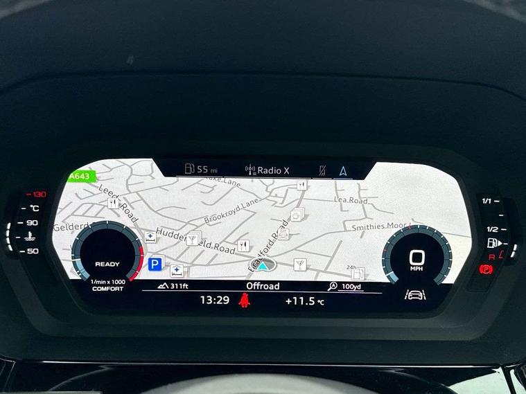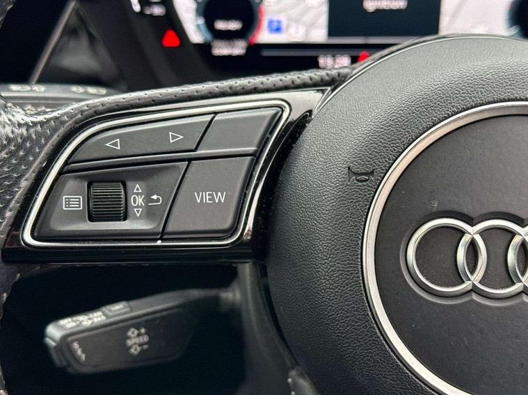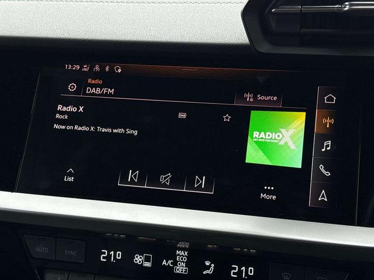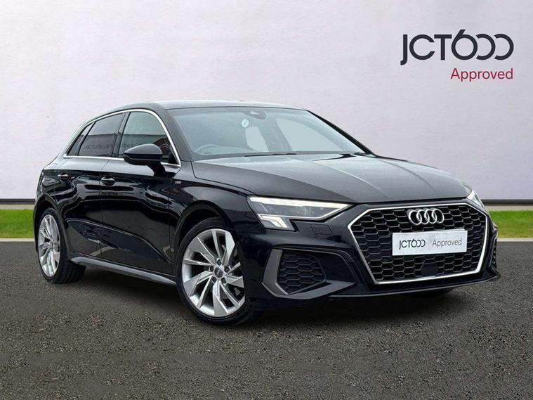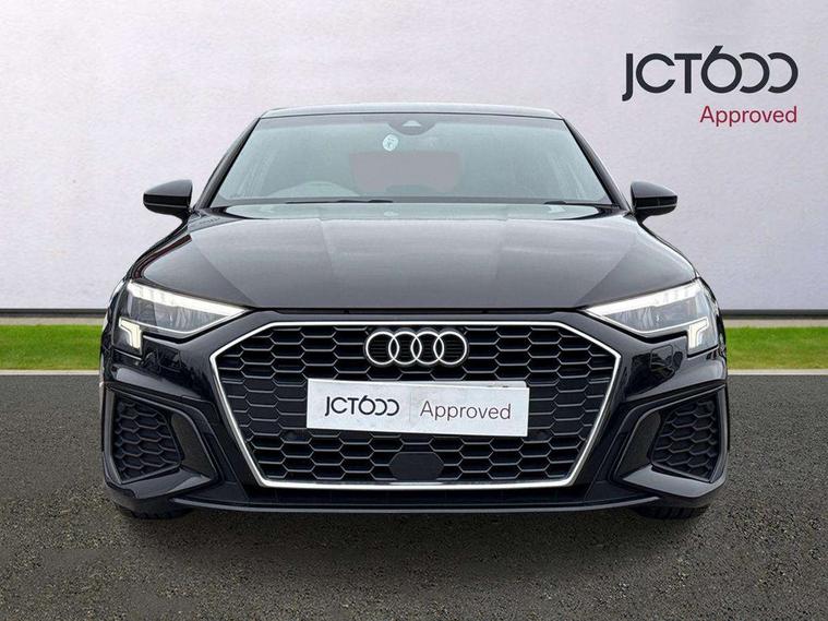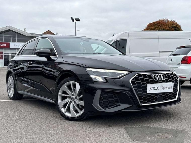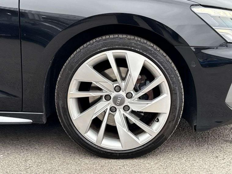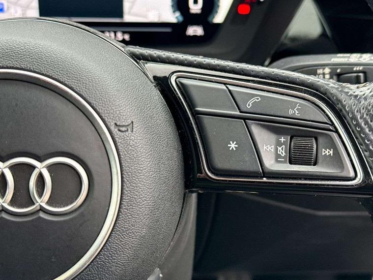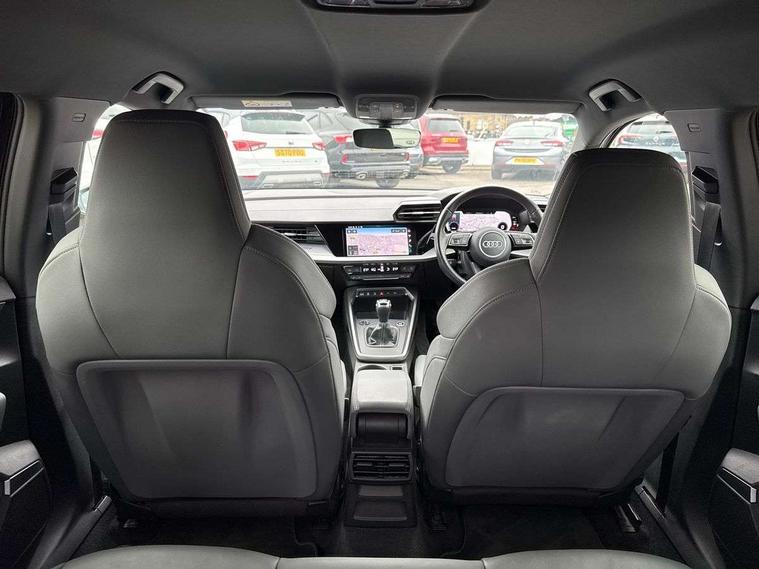 Audi connect emergency call and service, Audi drive select (Auto, Comfort, Dynamic, Efficiency and Individual), Audi smartphone interface, Audi Virtual Cockpit - 10.25" digital and colour instrument cluster, Automatic start/stop system with recuperation, Bluetooth interface, Collision avoidance assistant, Cruise control, Electromechanical power speed sensitive steering, Lane departure warning system, MMI Navigation Plus with high resolution 10.1" colour touch screen display, Rear parking sensors, Service indicator, Trip computer, Voice control system with natural language interaction, 1xUSB-A and 1xUSB-C connection, 6 passive loudspeakers, DAB Digital radio, Acoustic glass windscreen, Aluminium window trim, Auto dimming frameless rear view mirror, Body colour exterior mirrors, Electrically adjustable/heated/folding/dimming door mirrors with kerb view includes integrated LED indications + kerb view function for passenger side, Front electric windows, Illuminated aluminium inserts front door sills with S logo, LED daytime running lights, Light and rain sensors, Privacy glass - dark tinted rear window, rear door and side windows, Rear electric windows, Rear side air outlets in grained matt black, Rear wiper, S line bumpers, S roof spoiler, 12V socket and storage compartment in front centre console, 40/20/40 split folding rear seat bench with cupholder, Black cloth headlining, Dual zone electronic climate control, Front and rear centre armrest in leather, Front and rear headrests, Front/rear floor mats, Height and reach adjustable steering wheel, Interior lighting - glove compartment light and right hand side, Luggage compartment floor covering, Manual boot compartment lid, Manually adjustable front seats, Seat side bolsters, Stainless steel pedals and front footrest, Twin leather upholstery with front sports seats S embossed logo, Aluminium interior elements pack - A3 Sportback, S line styling pack - A3 Sportback, 3x3 point rear seat belts, Driver and front passenger airbag with passenger airbag deactivation, Electronic Stabilisation Control (ESC) including ABS, ASR and EDL, First aid kit with warning triangle and 2 safety vests, Hill hold assist, Pre-sense front with pedestrian and cyclist detection, Seatbelt monitoring, Tyre pressure loss indicator, Anti theft alarm, Anti-theft wheel bolts, Electronically operated child lock, Immobiliser, Remote control central locking, Accent surfaces in the dashboard and centre console in platinum grey silk effect paint finish, Dark spectrum aluminium inlays,