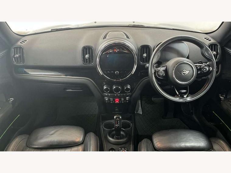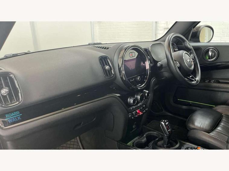 Active Guard incl speed limiting and lane departure functions with auto steering, and front collision warning with brake intervention, Automatic start/stop function with brake energy recuperation, Automatic tailgate operation, Compatible mobile phone bluetooth with audio streaming, Cruise control with brake assist, Electro-mechanical speed dependant steering assistance, Instrument cluster, MINI Driving Modes - centre toggle switch to control driving setting (sport, mid and green), Mini E-call, On board computer, 51 Litre fuel tank, Double Vanos system, Fully variable valve control, High precision injection, Performance Control, Steptronic sport transmission with double clutch and steering wheel paddles, 6 speakers, FM tuner and DAB digital radio, Black roof and mirror caps, Black roof rails, Boardwalk badge on lower rear roof section, Boardwalk side scuttle, Boardwalk sill tread plates, Bonnet scoop, Chrome border honeycomb structure radiator grille with S badge, Chrome fuel filler cap, Day time driving lights, Dynamic brake lights, Electric windows, Heated rear window, Heated windscreen washer jets, LED fog lights, LED Headlights, LED rear lights, Metal door sill strips with Cooper S imprint, Metallic paint, Model logo on Tailgate, Rain sensor with auto headlights, Rear fog lights, Rear window wiper, Split rear doors, Sun/heat protection glass, Unique Boardwalk logo, White indicator lenses, 12V socket in centre console, 360L luggage compartment capacity, 40:20:40 split folding rear seats, Anthracite headlining with grab handles and clothes hooks, Boardwalk badge on interior facia panel, Chrome interior highlights, Colour line - Carbon black, Cupholders, English handbook, Front headrests, Glove compartment, Height and length steering column adjustment, Interior lighting with 12 basic colours selectable via toggle switch in roof, Isofix rear child seat preparation, Leather gearshift lever and handbrake gaiters, LED reading lights, vanity mirror lights, front foot well light and spotlight on front seats, Mechanical seat adjustment, driver seat height adjust, forward/back and front seats backrest, MINI Yours fine walk nappa leather steering wheel with contrast stitching in silver and MINI Yours badge, MINI Yours lounge leather upholstery with sports seats, Multifunction steering wheel, Rear headrests, Storage compartments in doors, Sunvisors with vanity mirrors, Comfort plus pack - Countryman, Excitement pack - Countryman, Navigation pack - Countryman, Piano black exterior pack - Countryman Cooper S/SD/SE/Boardwalk, 2 tone horn, 3 point seatbelts on all seats, 6 Airbags - front, side, head and seat belt tensioners, Anti-lock braking system (ABS), DSC - Dynamic Stability Control, Electronic handbrake, Front and rear disc brakes, Hill start assist, Tyre pressure monitoring system, Alarm system with tilt sensor, monitoring doors, bonnet interior and tailgate, Auto drive away locking, Comfort access system, Deadlocking function, Electronic vehicle immobiliser, Locking wheel bolts, Start/stop toggle with keyless go, Chrome line interior, Piano black interior trim, 19" Turnstile spoke 2 tone alloy wheels, Tool kit, Tyre repair kit,