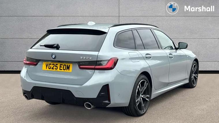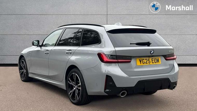 Active guard plus, Attentiveness assist, Automatic Start/stop button, Bluetooth Wi-Fi interface, BMW iDrive, BMW Teleservices, ConnectedDrive Services - last state call, Electric bootlid, Live cockpit plus with Navigation + 12.3" instrument display + 14.9" display, Intelligent voice assist, 2 USB, 4G LTE connect, Oil sensor for level and grade, Personal e-SIM, Shifting point display, Double joint spring strut front axle, Fuel tank breather system, Public mode 3 professional fast charging cable with 5m length, Steptronic Sport automatic transmission with steering wheel mounted gearshift paddles launch control and xtreme drive lever control, DAB tuner, 3rd brake light, Auto dimming rear view mirror, Automatic headlight beam throw control with load dependent regulating reaction, dynamic compensation of braking dive and acceleration squat, Bi-LED Low and high beam headlights, BMW emblem, engine compartment lid and tailgate, Body colour roof fin, Door sill strips, Electric windows - front and rear, with open/close fingertip control, anti-trap facility and comfort closing, Fading support, Follow me home headlight function, Front and rear bumper system with replaceable deformation elements, Front apron plastic in body colour, Fuel filler flap - right rear in body colour, Heat protection glazing on front windows and windscreen, Heated washer jets, High gloss chrome kidney frame with high gloss black kidney struts, High gloss shadow line roof rails, LED daytime running lights, LED rear lights, LED turn indicator, Licence plate panel integrated into front bumper and tailgate, M high gloss shadow line exterior trim, Matt black B-pillar finsher, Matt black window recess cover, Model designation on right side of tailgate, One piece front bumper cover including towing eye cover in body colour, Rain sensor with automatic headlight activation, Rear side wing doors, Rear wiper, Reversing lights, Side frame decorative moulding black matt, Trailer stabilisation logic, Visible exhaust tailpipe finisher, Welcome lights in interior and door handle area, 12V power socket in front storage compartment, 2 front cupholder in centre console with clamping elements and matt black inlay, 3 seat bench in 2nd row, 3 spoke M Sport multifunction flat bottom leather steering wheel, 3 zone automatic air conditioning, 40:20:40 split folding rear seat with loading system, Anthracite headlining, Armrest integrated in front and rear door trim + front centre console armrest, Battery in luggage compartment, BMW ID, Cruise control operation in steering wheel, Driving experience mode switch, Folding rear centre armrest with 2 cupholders, Front and rear headrests, Front and rear velour floor mats, Front reading light, Heated front seats, Height adjustable mechanically and infinitely variable steering column, Illuminated armrest storage compartment, Illuminated glove compartment, Illuminated luggage compartment, Lashing eyelets in luggage compartment, Single front passenger seat, Sunvisors with illuminated vanity mirrors and ticket pocket, Toolkit located in luggage compartment, Connected pack professional - 3 Series Saloon/Touring, Interior and exterior mirror pack - 3 Series Touring/Saloon, M sport exterior styling pack - 3 Series Saloon/Touring, Parking assistant pack - 3 Series, 3x3 point rear seatbelts, BMW emergency call, Child locks on rear doors, Crash sensor activating of airbags, Unlocking doors, hazard warning lights, interior light, safety battery terminal, Drive-off assistant, Driver and front passenger with seat occupancy detection for driver's and passenger side, Driver and passenger side airbags, body protection at side and airbags deploy from seat backrests, Dry braking, Dynamic brake control, Dynamic stability control + (DSC+) - Anti-lock Braking System (ABS) with brake assist and cornering brake control + Automatic Stability Control (ASC), Dynamic Traction Control - DTC, Electric parking brake including automatic hold function and automatic release of the parking brake when driving off, Electronic differential lock control (EDLC), Front airbag deactivation, Front airbags for driver and front passenger, Head airbags in 1st and 2nd row, head protection at side, curtain airbags open from headliner above 1st and 2nd row, Plastic fuel tank, Side impact protection, Tyre pressure sensors, Ventilated front and rear disc brakes, Warning triangle and first aid kit, Alarm system, Centre lock switch, Closing system with central locking, Electronic vehicle immobiliser, Locking wheel bolts, Tyre repair kit,