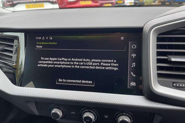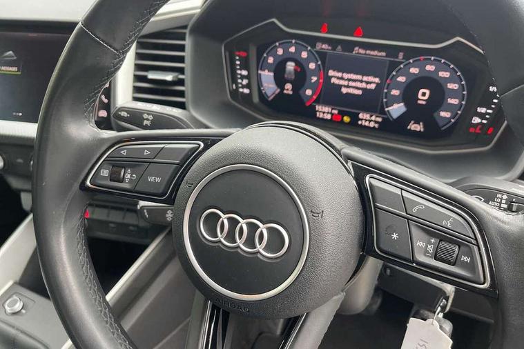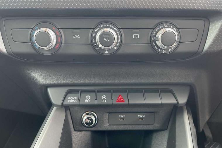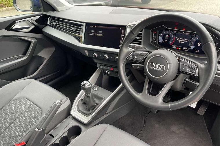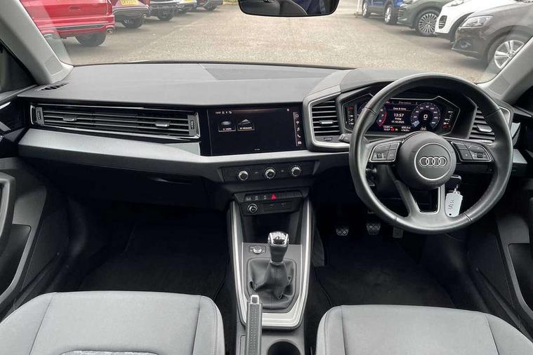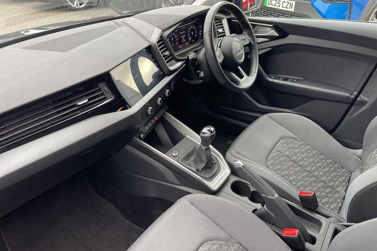10.25" Digital instrument cluster display classis style instrument dials + speed, odometer, time, outside temperature, telephone menu + fuel level warning, Audi drive select - power steering assistance + engine, Audi smartphone interface with connect compatible smartphone via USB directly MMI display + Nav, music, third party apps controlled via MMI controller, Automatic start/stop system, Bluetooth interface, Cruise control, Driver's information system, Electromechanical power steering, Emergency e-call, Lane departure warning system, Rear parking sensor, Service interval indicator, Speed limiter, Voice control system, Washer fluid level indicator, Dynamic suspension, 2 x USB type C connection points, 6 passive loudspeakers, DAB Digital radio, MMI radio plus with 10.1" colour MMI display screen and MMI touch, Auto dimming rear view mirror, Body coloured bumpers, Body coloured door mirrors, Electric front and rear windows, Electrically adjustable, heated, folding door mirrors with integrated LED side indicator, Front side air inlets in grained matt black and C frame in anthracite black, Heat insulating glass windscreen and side windows, Heated rear windscreen, High level LED brake light, LED headlights with LED rear lights + dynamic rear indicators + headlight adjustment and high beam, turning light + LED daytime running lights, Radiator grille and rear diffuser in matt anthracite black, Radiator protective grille frame in matt aluminium silver, Rain and light sensors, Rear fog lights, Rear side wing doors, Rear wiper, Side front spoiler lips in grained matt black, 12V socket in centre console with two cup holders, 3 rear seats with headrests, 3 seat bench in 2nd row, 3 spoke leather multifunction plus steering wheel, 40:60 Split folding rear seat or folded fully, Black front and rear floor mats, Door sill trims with aluminium inlay, Driver and passenger seat with manual height adjust with forward and backwards adjustment, Front head restraints, Front passenger seat, Grey cloth headlining, Height and reach adjustable steering wheel, ISOFIX child seat mounting for front passenger and outer rear seats including top tether attachment point of outer rear seats, Leather gear knob with aluminium trim, Leatherette handbrake grip, Luggage compartment light with front and rear reading lights, Manual air conditioning, Manually adjustable lumbar support in front seats, Novum cloth upholstery with front sport seats, Luggage compartment pack - A1, 3x3 point rear seatbelts, Audi pre-sense front with pedestrain and cyclist recognition, Brake assist function, Driver and front passenger airbag with front side and head airbags, Electronic Stability Control including ABS, EBD, ASR and EDL, Front passenger airbag deactivation switch, Hill hold assist, Manual rear child locks, Seatbelt height adjustment for front seats, Seatbelt monitoring, Tyre pressure warning light, Warning triangle and first aid kit, Anti theft alarm, Anti theft wheel bolts and loose wheel warning, Immobiliser, Remote central locking with 2 foldaway keys, Aluminium trim for control switches, air vents and digital instrument cluster, Black dashboard, Silver grey accent areas including air vents, door handle recesses and centre console in diamond paint finish, Slate grey inlays polygon structure in fine paint finish,