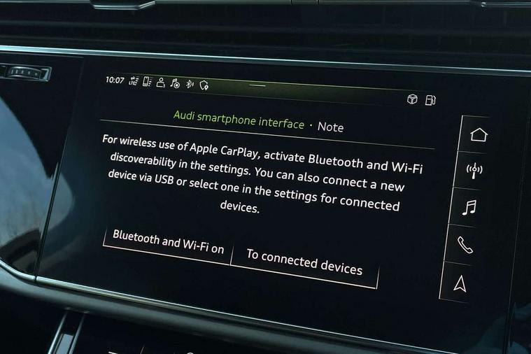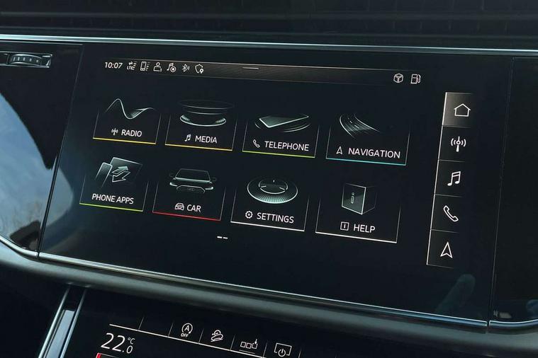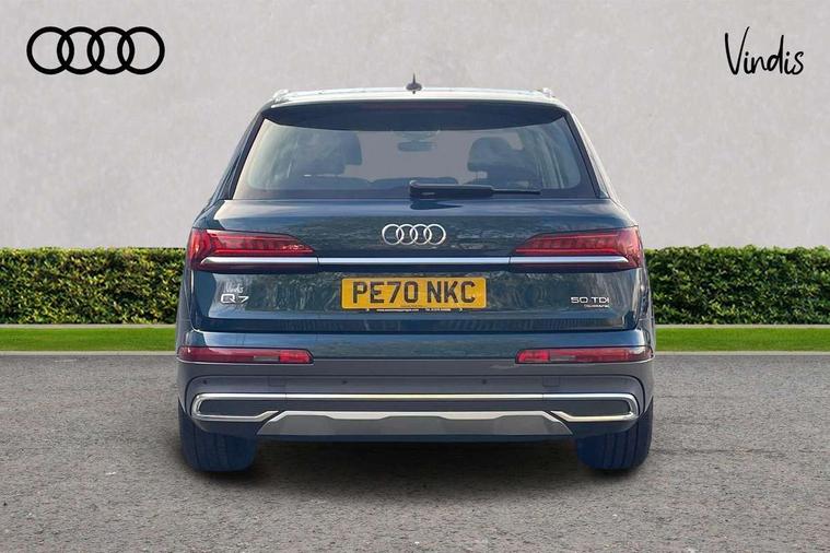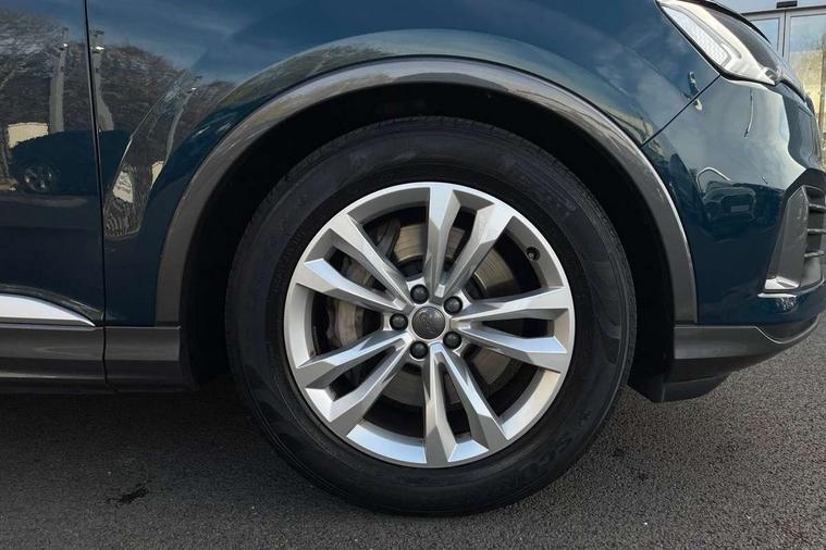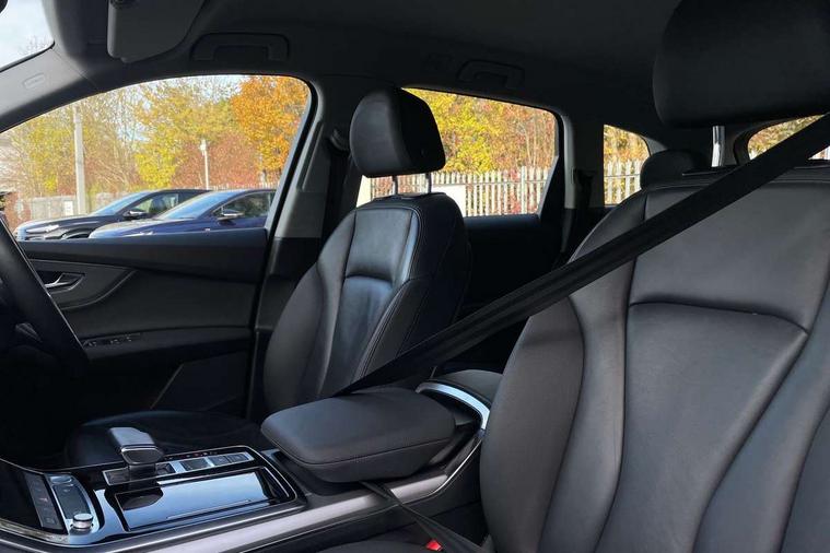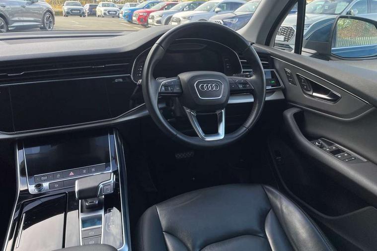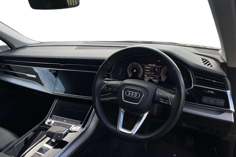 Audi connect safety and service (e-call), Audi drive select (Auto, Comfort, Dynamic, Efficiency, Individual, Off-road and All road), Audi phone box with wireless charging, Audi virtual cockpit - 12.3" high-resolution LCD display with fully customisable instrument cluster, Camera based traffic sign recognition, Electromechanical steering, MMI navigation plus with MMI touch screens includes 10.1" and 8.6" screens with haptic feedback, Natural voice recognition, Parking system plus - front + rear sensors, PAS, Power operated tailgate, Rear view camera, Smartphone interface includes wireless Apple carplay/Android Auto, Start/stop system, 48V Mild hybrid technology, Adaptive air suspension, Quattro all wheel drive with self locking centre differential, Audi music interface - front 2 USB-C ports with charger and data functions, Audi sound system with 6 channel amplifier, 180 watt amplifying capacity and 10 loudspeakers including subwoofer, DAB digital radio module, Aluminium roof rails, Aluminium window trim, Audi matrix LED headlights with dynamic front and rear indicators, Auto dimming frameless rear view mirror, Body coloured door mirrors, Bumpers in contrast paint scandium grey finish includes door trim and wheel arch trim strips, inlays in door strip contain quattro embossing, Electrically adj heated/folding + automatically dimming exterior mirrors with memory + automatic kerb side function for passenger side exterior mirror, Heat insulating glass in windshield, LED daytime running lights, LED rear tail lights, 2 zone automatic climate control, 3 spoke leather trimmed multi-function steering wheel with paddles, 4 way adjustable front seat lumbar support, 7 seat layout with ISOFIX points for the front passenger seat and rear passenger seat, Comfort front centre armrest, Electrically adjustable front seats with memory function for driver's side, Fabric headlining trim, Folding rear seats, Front head restraints, Front/rear floor mats, Heated front seats, LED interior ambient lighting, Luggage compartment cover, Rear head restraints, Sunvisors with illuminated vanity mirrors, Twin leather upholstery, 3 point seatbelts on all rear seats, Audi pre sense front, Driver and front passenger, front side and curtain airbags, Electromechanical parking brake, Electronic Stabilisation Control (ESC) including ABS, ASR and EDL, Extended pedestrian protection measures, Hill hold assist, Seatbelt monitoring, Tyre pressure loss indicator, Warning triangle and first aid kit, Anti theft alarm, Anti-theft wheel bolts and wheel loosening detection, Keyless go with remote central locking, Silver grey interior inlays, Tool kit, Tyre repair kit,