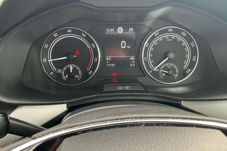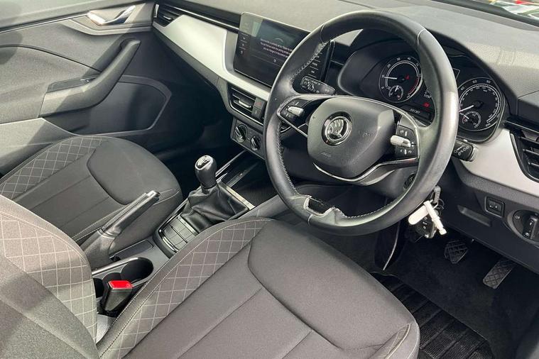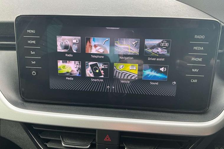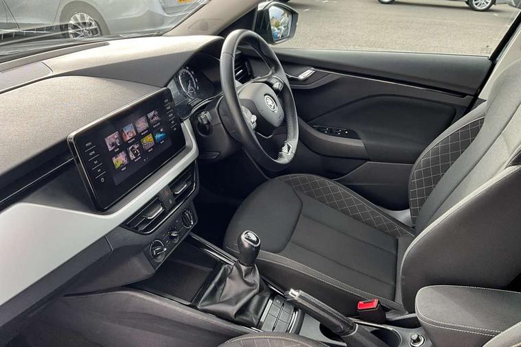 Amundsen satellite navigation with 9.2" glass colour touchscreen display, web radio, voice control and traffic sign recognition, Bluetooth system, E-call, Front assist system, Gesture control, PAS, Service indicator, Speed limiter, Wireless SmartLink for apple car play, android auto and mirrorlink, 8 Speakers, Auxiliary input socket, DAB Digital radio, Body colour bumpers, Body colour door mirrors and handles, Chrome grille surround, Dimming rear view mirror with black surround, Electrically adjustable and heated door mirrors, Front and rear electric windows, Headlight range control, Heated rear window, LED rear lights - low functionality, Light sensors, Privacy glass, Rear fog lights, Rear side wing doors, Rear wiper, 12V Accessory socket in centre console, 3 seat bench in 2nd row, Chrome inner door handles, Cloth upholstery, Front head restraints, Glove compartment with illumination, Height adjustable driver and front passenger seats - manual, Ice scraper, Isofix child seat fittings on outer rear seats, ISOFIX on front passenger seat, Manual lumbar support for front seats, Rake/reach adjustable steering wheel, Reading lights, Single front passenger seat, Sun visors with illumination on front passenger, Textile floor mats, Third rear headrest, Top tether for front passenger seat, Umbrella in driver's door, 3x3 point rear seatbelts, Airbags - driver and front passenger, ESP, Front passenger airbag deactivation switch, Front side airbags with curtain airbags, Hill hold control, Manual parking brake, Manual rear child locks, One tone horn, Rear disc brakes, Seatbelt reminder for driver an co-driver, Traction control, Tyre pressure monitor, Anti-theft alarm system with interior monitoring, backup horn, towing protection and remote central locking with SAFE system, Anti-theft wheel bolts, Electronic engine immobilizer, Silver haptic decorative insert on the dashboard with hot stamping in glossy black,