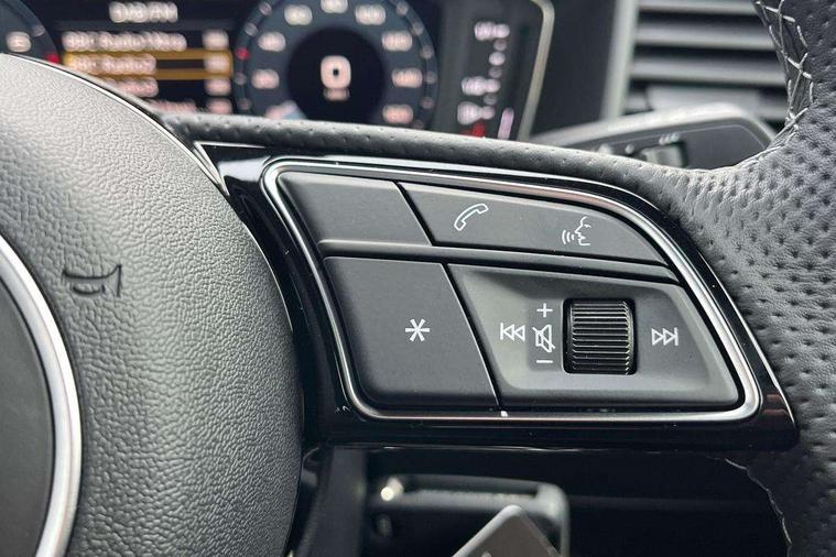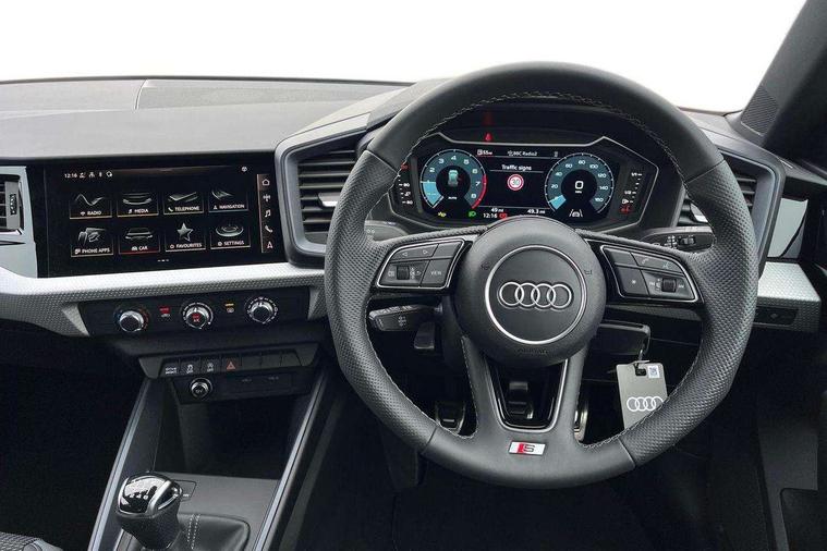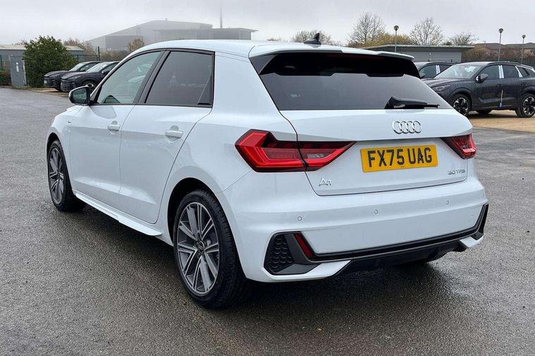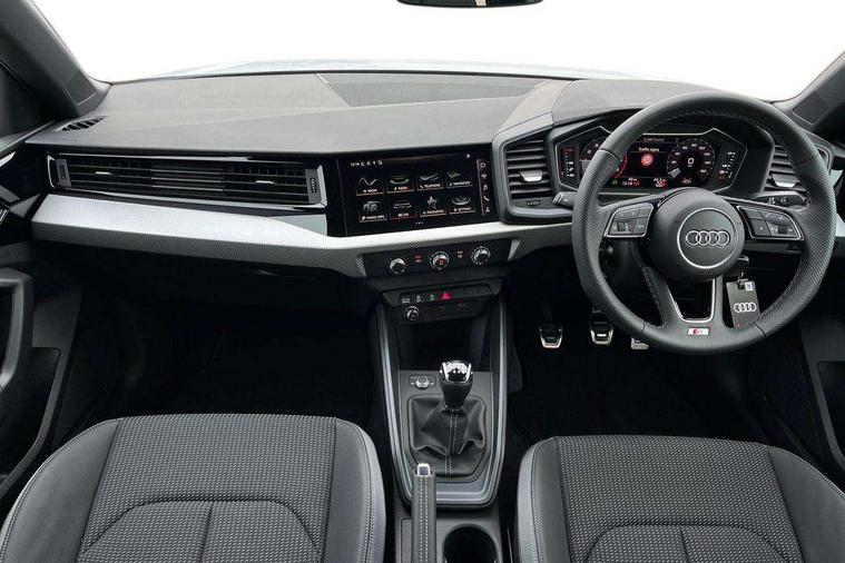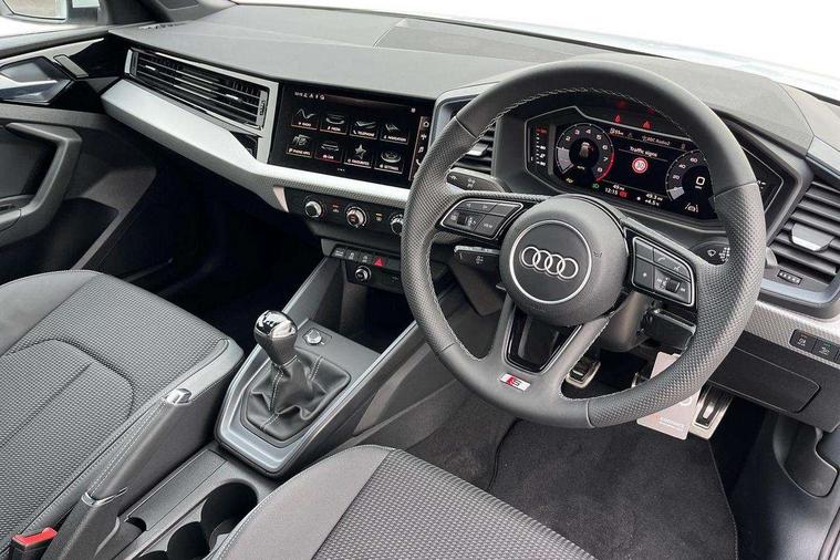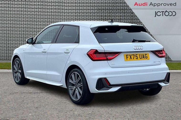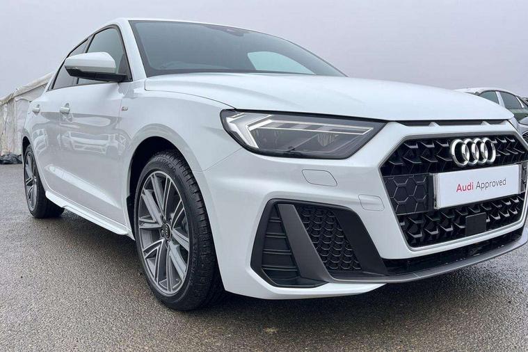 10.25" Digital instrument cluster display classis style instrument dials + speed, odometer, time, outside temperature, telephone menu + fuel level warning, Advanced driver attention and drowsiness monitor, Audi connect emergency call and service, Audi drive select, Audi remote connect and control, Audi smartphone interface, Bluetooth interface, Camera based traffic sign recognition, Cruise control, Driver's information system, Electromechanical power steering, Lane departure warning system, Rear parking sensor, Service interval indicator, Speed limiter, Start stop system with recuperation, Voice control system, Washer fluid level indicator, Sports suspension, 2 x USB type C connection points, 6 loudspeakers, DAB Digital radio, MMI radio plus with 10.1" colour MMI display screen and MMI touch, Auto dimming rear view mirror, Body coloured door mirrors, Door sill trims with aluminium inlays and S line logo in front, Electric front and rear windows, Electrically adjustable, heated, folding door mirrors with integrated LED side indicator, Front side air inlets in grained matt black and C frame in anthracite black, Headlight cleaning system, Heat insulating glass windscreen and side windows, Heated rear windscreen, High level LED brake light, LED daytime running lights, LED headlights with range control LED rear lights + dynamic rear indicators, Light and rain sensors, Privacy glass, Radiator grille and rear diffuser in matt anthracite black, Radiator protective grille frame in matt aluminium silver, Rear fog lights, Rear side wing doors, Rear wiper, S line badges on front wings, Side front spoiler lips in grained matt black, 12V socket in centre console with two cup holders, 3 rear seats with headrests, 3 seat bench in 2nd row, 3 spoke leather multi-function plus steering wheel features S badging and grips in perforated leather with contrast stitching, 40:60 Split folding rear seat or fully collapsed, Black cloth headlining, Front and rear velour black floor mats with contrast stitching in fine silver, Front head restraints, Front passenger seat, Height and reach adjustable steering wheel, Interior lighting includes roof module, front and rear reading lights and right luggage compartment lighting, ISOFIX child seat mounting for front passenger and outer rear seats including top tether attachment point of outer rear seats, Leather gear knob with aluminium trim, Leather handbrake grip, Manual air conditioning, Manual height adjustable for driver and front passenger seat, Manually adjustable lumbar support in front seats, Stainless steel pedals, Ambient lighting package - A1, Luggage compartment pack - A1, S line exterior styling pack - A1 Sportback, 3x3 point rear seatbelts, Audi pre-sense front with pedestrain and cyclist recognition, Brake assist function, Driver and front passenger airbag with front side and head airbags, Electronic Stability Control including ABS, EBD, ASR and EDL, Front passenger airbag deactivation switch, Hill hold assist, Manual rear child locks, Seatbelt height adjustment for front seats, Seatbelt monitoring, Tyre pressure loss indicator, Warning triangle and first aid kit, Anti theft alarm, Anti theft wheel bolts, Immobiliser, Remote control key with safelock, Aluminium trim for control switches, air vents and digital instrument cluster, Black dashboard, Silver grey inlays polygon structure in diamond paint finish, Structured grey accent surfaces insert of air vents, interior door handle recesses and centre console in quartz paint finish,