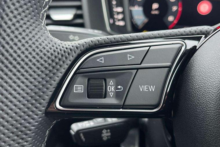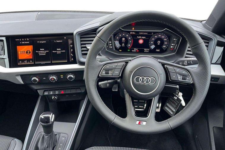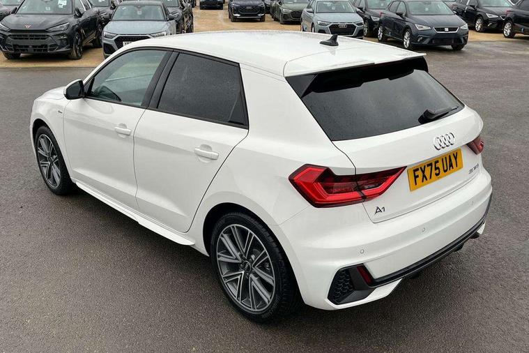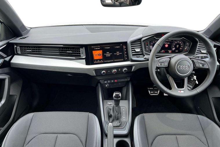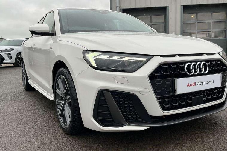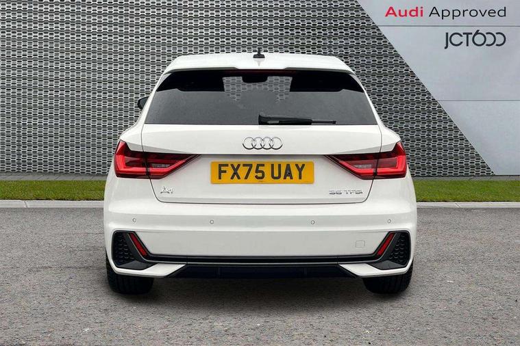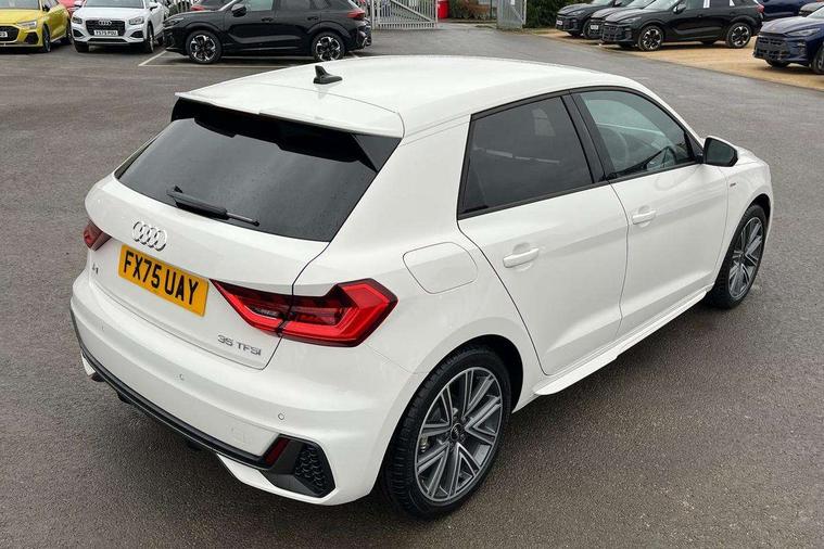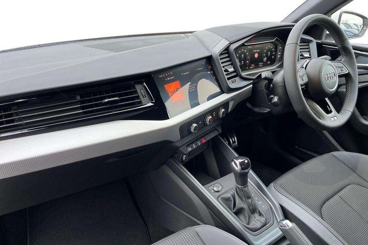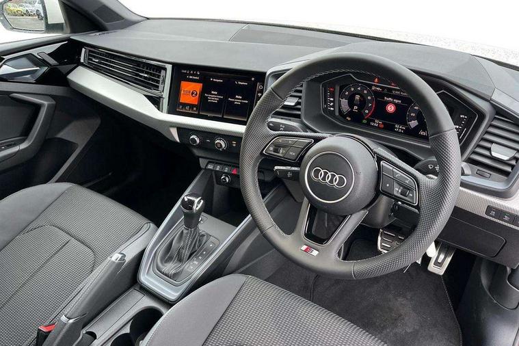 10.25" Digital instrument cluster display classis style instrument dials + speed, odometer, time, outside temperature, telephone menu + fuel level warning, Advanced driver attention and drowsiness monitor, Audi connect emergency call and service, Audi drive select, Audi remote connect and control, Audi smartphone interface, Bluetooth interface, Camera based traffic sign recognition, Cruise control, Driver's information system, Electromechanical power steering, Lane departure warning system, Rear parking sensor, Service interval indicator, Speed limiter, Start stop system with recuperation, Voice control system, Washer fluid level indicator, Sports suspension, 2 x USB type C connection points, 6 loudspeakers, DAB Digital radio, MMI radio plus with 10.1" colour MMI display screen and MMI touch, Auto dimming rear view mirror, Body coloured door mirrors, Door sill trims with aluminium inlays and S line logo in front, Electric front and rear windows, Electrically adjustable, heated, folding door mirrors with integrated LED side indicator, Front side air inlets in grained matt black and C frame in anthracite black, Headlight cleaning system, Heat insulating glass windscreen and side windows, Heated rear windscreen, High level LED brake light, LED daytime running lights, LED headlights with range control LED rear lights + dynamic rear indicators, Light and rain sensors, Privacy glass, Radiator grille and rear diffuser in matt anthracite black, Radiator protective grille frame in matt aluminium silver, Rear fog lights, Rear side wing doors, Rear wiper, S line badges on front wings, Side front spoiler lips in grained matt black, 12V socket in centre console with two cup holders, 3 rear seats with headrests, 3 seat bench in 2nd row, 3 spoke leather multi-function plus steering wheel features S badging and grips in perforated leather with contrast stitching, 40:60 Split folding rear seat or fully collapsed, Black cloth headlining, Front and rear velour black floor mats with contrast stitching in fine silver, Front head restraints, Front passenger seat, Height and reach adjustable steering wheel, Interior lighting includes roof module, front and rear reading lights and right luggage compartment lighting, ISOFIX child seat mounting for front passenger and outer rear seats including top tether attachment point of outer rear seats, Leather gear knob with aluminium trim, Leather handbrake grip, Manual air conditioning, Manual height adjustable for driver and front passenger seat, Manually adjustable lumbar support in front seats, Stainless steel pedals, Ambient lighting package - A1, Luggage compartment pack - A1, S line exterior styling pack - A1 Sportback, 3x3 point rear seatbelts, Audi pre-sense front with pedestrain and cyclist recognition, Brake assist function, Driver and front passenger airbag with front side and head airbags, Electronic Stability Control including ABS, EBD, ASR and EDL, Front passenger airbag deactivation switch, Hill hold assist, Manual rear child locks, Seatbelt height adjustment for front seats, Seatbelt monitoring, Tyre pressure loss indicator, Warning triangle and first aid kit, Anti theft alarm, Anti theft wheel bolts, Immobiliser, Remote control key with safelock, Aluminium trim for control switches, air vents and digital instrument cluster, Black dashboard, Silver grey inlays polygon structure in diamond paint finish, Structured grey accent surfaces insert of air vents, interior door handle recesses and centre console in quartz paint finish,