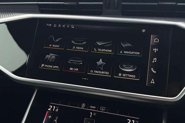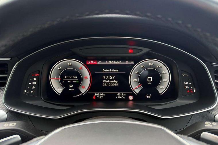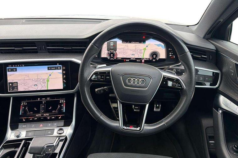 Matt brushed aluminium dark inlays, LED Interior Ambient Lighting Pack - A6, Non smoking pack - A6, 20" 5 V spoke star design Audi sport cast aluminium alloy wheels in matt titanium look, Anti theft alarm with tow away protection, Anti-theft wheel bolts and wheel loosening detection, Immobiliser, Keyless Go, Remote central locking, Audi music interface, Audi sound system, Auxiliary input socket, DAB Digital radio, USB connection, 3 point seatbelts on all seats, Airbags - Front side, front and rear including head, Audi pre-sense front, Black seatbelts, EBD - Electronic brakeforce distribution, Electromechanical parking brake, Electronic Stability Control (ESC) including ABS, ASR and EDL, Extended pedestrian protection measures, Seatbelt monitoring, Tyre pressure warning light, Warning triangle and first aid kit, Electric front/rear windows, Frameless auto dimming interior rear view mirror, Gloss black exterior mirror housings, Gloss black highlights on the exterior area of the Audi Single frame, Gloss black highlights on the front and rear bumpers, Gloss black highlights on the radiator grille, Gloss black highlights on the side windows trim strips, Headlight washers, Heat insulating glass in side and rear windows, Heat insulating glass in windshield, LED rear lights, LED signature front daytime running light, Matrix LED headlights with dynamic rear indicators, Matt black rear diffuser with diffuser strip and tailpipes in chrome, Matt black side air intake grille with inlay in matt aluminium, Privacy glass, Rain and light sensors, Signature rear LED light design, 2 zone deluxe electronic climate control, 4 way electric lumbar support for driver and front passenger, 40/20/40 split folding 3 rear seat bench in 3 parts with rear centre armrest, Black cloth headlining, Electrically adjustable front seats with driver memory, Front centre armrest, Front head restraints, Front/rear floor mats, Heated front seats, Height/reach adjust steering wheel, Illuminated door sill trims with S logo, Illuminated sun visors with vanity mirrors, ISOFIX child seat mounting and Top Tether with front passenger airbag deactivation, Leather gear knob, Rear headrests, Stainless steel pedals and foot rest, Tool kit and car jack, 7" high resolution colour driver information display system, Audi connect safety and service (e-call), Audi drive select, Audi parking system plus - acoustic and visual park assist system for front and rear, Audi smartphone interface, Automatic start/stop system with coasting functionality, Bluetooth interface, Electric boot lid release, Lane departure warning system, MMI navigation with MMI touch + twin touch screens 8.8" and 8.6" with haptic and acoustic feedback, Progressive steering, Rear view camera, Service interval indicator, Voice control system, 24 litre AdBlue tank, 48V Mild hybrid technology, Diesel particulate filter, Quattro all wheel drive with self locking centre differential, Sports suspension,