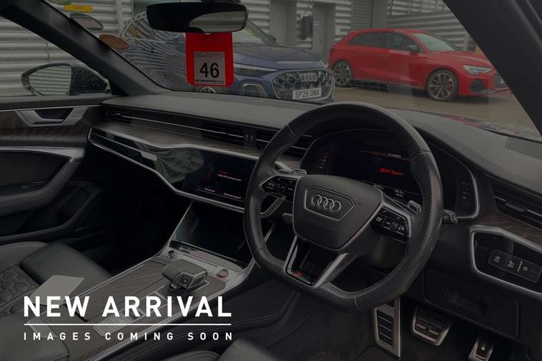 360 degree parking camera, Audi connect safety and service (e-call), Audi drive select, Audi phone box with wireless charging, Audi smartphone interface, Audi Virtual Cockpit with RS specific design and 12.3" display, Automatic start/stop system, Bluetooth interface, Dynamic all wheel steering, Head up Display, Lane departure warning system, MMI navigation with MMI touch + twin touch screens 10.1" and 8.6" with haptic and acoustic feedback, Operating buttons in black, glass look with haptic feedback including extended aluminium look, Power door closure, Power latching doors, Power operated tailgate, Service interval indicator, Voice control system, 73 litre fuel tank, Increased top speed to 174mph, Quattro sports differential, RS Sports suspension plus with dynamic ride control, Audi music interface, Audi music interface at rear, Bang & Olufsen 3D Premium Sound System, DAB Digital radio, Adaptive windscreen wipers with integrated washer jets, Black mirror caps, Body colour rear roof spoiler, Electric front/rear windows, Electric Panoramic opening glass sunroof, Electrically folding auto dimming/adjustable/heated door mirrors with LED side indicators and kerb view function for passenger side, Frameless auto dimming interior rear view mirror, HD Matrix LED headlights with Audi laser light with dynamic light design and dynamic turn signal, Headlight washers, Heat insulating glass in side and rear windows, Illuminated door sill trims with RS lettering, LED rear combination lamps with dynamic light design and dynamic turn signal, Privacy glass with rear/side windows and acoustic glazing side windows, Radiator grille in honeycomb structure, large front air inlets and rear diffuser in gloss black, Rain and light sensors, Rear sports exhaust system with gloss black oval tailpipe, Rear wiper, RS front bumper with air inlets on both side, Towbar preparation, Wheel arch extensions, 3 spoke RS flat bottomed leather multifunction steering wheel with shift paddles, heated funtion, contrast stitching, RS mode button and RS emblem, 4 way electric lumbar support for driver and front passenger, 4 zone deluxe automatic climate control, Aluminiium gear shift paddles, Audi Sport logo projection (Audi Beam) in front and rear, Black cloth headlining, Electric steering wheel adjustment, Electrically adjustable front seats with driver memory, Front and rear headrests, Front centre armrest, Front seat ventilation, Front/rear floor mats, Heated front and rear seats, ISOFIX child seat mounting and Top Tether with front passenger airbag deactivation, RS Front sports seats, Stainless steel pedals and foot rest, Valcona leather upholstery with perforated honeycomb and RS lettering, Air quality pack - RS6, City assist pack - RS6, Extended LED interior multi coloured lighting pack - RS6, Gloss black styling pack - RS6, Parking assistance plus pack - RS6, Storage pack - RS6, Tour pack - RS6, 2 x 3-point rear seat belts, Airbags - Front side, front and rear including head, Audi pre-sense front, Direct tyre pressure monitoring system, EBD - Electronic brakeforce distribution, Electromechanical parking brake, Electronic Stability Control (ESC) including ABS, ASR and EDL, Extended pedestrian protection measures, Warning triangle and first aid kit, Advanced key, Anti theft alarm with tow away protection, Anti-theft wheel bolts and wheel loosening detection, Immobiliser, Keyless Go, Remote central locking, 22" Titanium matt gloss turned finish alloy wheels, Tyre repair kit,