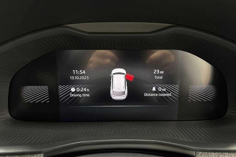 8" Digital display, Advanced driver attention and drowsiness monitor, Bluetooth system, E-call, Front assist system, PAS, Rear parking sensors, Service indicator, Speed limiter, Traffic sign recognition, Wireless smartlink, 4 USB C ports, 8 Speakers, 8.25" Skoda infotainment display, DAB Digital radio, Auto dimming rear view mirror, Automatic headlight control with coming home and leaving home feature, Black roof rails, Body colour bumpers, Body colour door mirrors and handles, Chrome grille surround, Front and rear electric windows, Full LED headlights, Heated rear window, LED daytime running lights, LED front turning lights, LED high beam, LED low beam, LED third brake light, Rear LED fog light, Rear side wing doors, Rear wiper, Ticket holder inside windscreen, 12V socket in luggage compartment, 3 seat bench in 2nd row, Black hotstamping, Cargo elements, Chrome inner door handles, Driver and passenger sun visors with vanity mirror, Dual zone climate control, Front and rear roof lights, Front centre armrest, Front head restraints, Glove compartment with illumination, Height adjustable driver seat, Height adjustable front passenger seat, Ice scraper, Inner circulation control with pollen filter, ISOFIX on front passenger seat, Isofix preparation for back seats, Krepp recycled decor inserts, Leather gearknob and handbrake lever, Loft cloth upholstery, Manual lumbar support for front seats, Net package and top tether hooks in boot space, Net under rear shelf, Overhead glasses storage compartment, Pocket on the back of both front seats include mobile phone pockets, Rake/reach adjustable steering wheel, Reading lights, Satin black door inserts, Single front passenger seat, Textile floor mats, Third rear headrest, Top tether for front passenger seat, Umbrella in driver's door, 3x3 point rear seatbelts, Airbags - driver and front passenger, Disc brakes, ESP, Extended and predictive pedestrian/cyclist protection, Front passenger airbag deactivation switch, Front side airbags with curtain airbags, Hill hold control, Manual leather parking brake, Manual rear child locks, One tone horn, Seatbelt reminder for driver an co-driver, Traction control, Tyre pressure monitor, Anti-theft alarm system with interior monitoring, backup horn, towing protection and remote central locking with SAFE system, Anti-theft wheel bolts, Electronic engine immobilizer,