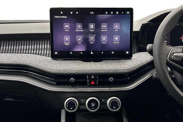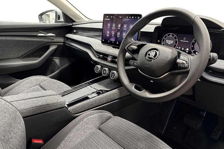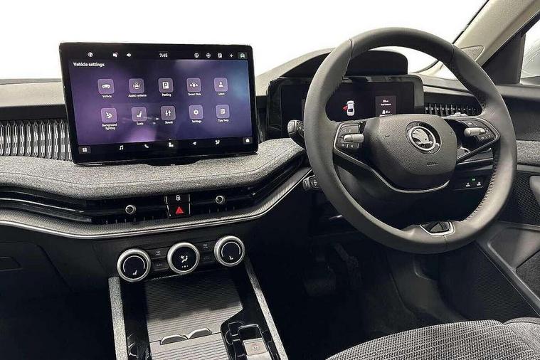 13" touchscreen display with satellite navigation, 4x USB-C ports (2x in front centre console and 2x in rear) (45W), Adaptive cruise control with speed assist, lane assist plus and traffic tram assist, Blind spot detection with door exit warning, Bluetooth system, CareConnect and Emergency Call, ChatGPT functionality, Driver fatigue sensor, Front assist with extended predictive pedestrian protection, Front cross traffic assist, PAS, Quick start all heating software functionality, Rear view camera with washer, Stop/start engine system, Traffic sign recognition, Turn assist with evasive assistance, Virtual Cockpit - 10.25" digital display, Voice control system, Wireless charging for one smartphone (15W) with cooling function, Wireless smartlink apple carplay, SmartLink+ android auto, 8 Speakers, DAB Digital radio, Display cleaner, FM radio connection, Web radio connection, Acoustic side windows and interior noise suppression, Backdrop lighting, Body colour door handles, Body coloured door mirrors, Chrome window surround, Electrically adjustable, heated, folding and driver side auto-dimming door mirrors with integrated indicators and logo projection, Frameless auto-dimming rear view mirror with USB-C, Front windscreen with heat-insulating glass, Ice scraper in fuel tank cap, LED 3rd brake light, Light assist with High beam control, Light assistant (coming/leaving home/tunnel light), Privacy glass, Rear fog light (x1), Rear side wing doors, Tow bar preparation, Unique dark chrome design logo on alloy wheels, Unique dark chrome grille surround with dark chrome rib elements, Windscreen wipers with rain sensor, 12V socket 1x centre console 1x boot, 12V socket and 2x cargo elements in boot, 2 spoke multifunction steering wheel with DSG paddles, 3 seat bench in 2nd row, 60:40 Split folding rear seats, Bottle holders in the front doors 1.5 litre bottle and rear 1.5 litre bottle, Cup holder in front with easy open mat, Front and rear footwell illumination, Front armrest with storage box, Front comfort seats, Heated front seats, Height adjustable driver and front passenger seats with 2-way electric tilt, 4-way pneumatic lumbar support, and extendable thigh support, Height adjustable front and rear head restraints, Height adjustable front passenger seat, Illuminated glovebox, Interior lights with control switches, Isofix child seat fittings in outer rear and front passenger seats, LED front and rear reading lights, Massage function for front seats, Single front passenger seat, Skoda lettering on steering wheel, Storage pockets on back of front seats, Sun visors with illuminated vanity mirrors, Ticket holder on A Pillar, Tri zone climate control, Umbrella in driver's door, 3 rear seatbelts, 8 Airbags - Front driver and passenger, front side driver and passenger, centre, curtain front and rear, drivers knee, Crew protect assist, Driver and passenger seatbelts with warning light, Electronic parking brake, ESC including ABS, EBV, MSR, ASR, EDS, HBA, DSR, RBS, CBC, multi-collision brake (MKB) and Auto hold, Hill hold assist, Power operated child lock in rear doors, Alarm with interior monitoring tilt sensor and back up horn, Backrest remote release from trunk, Electronic engine immobiliser, Keyless start/stop, Remote central locking with SAFE system, Third key, Decorative front door sills,