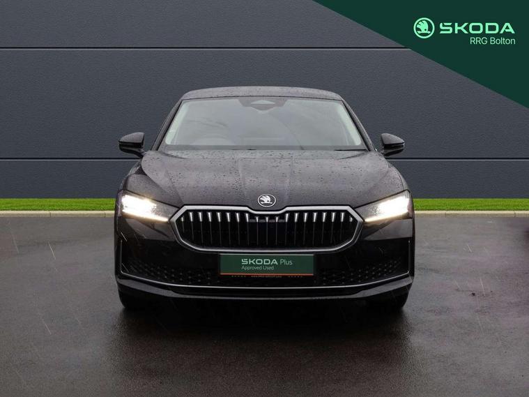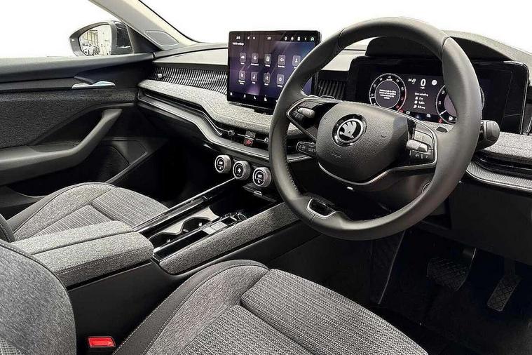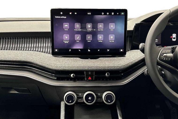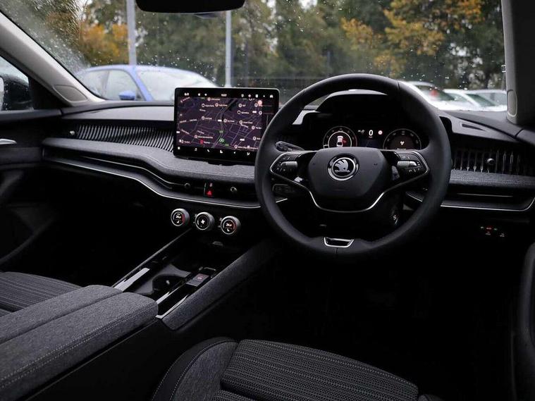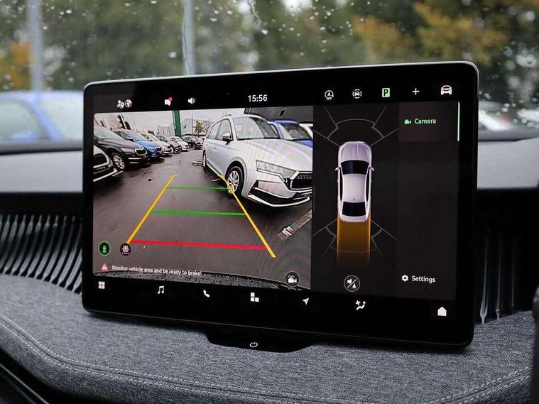 13" touchscreen display with satellite navigation, 4x USB-C ports (2x in front centre console and 2x in rear) (45W), Adaptive cruise control with speed assist, lane assist plus and traffic tram assist, Blind spot detection with door exit warning, Bluetooth system, CareConnect and Emergency Call, ChatGPT functionality, Driver fatigue sensor, Front assist with extended predictive pedestrian protection, Front cross traffic assist, PAS, Quick start all heating software functionality, Rear view camera with washer, Stop/start engine system, Traffic sign recognition, Turn assist with evasive assistance, Virtual Cockpit - 10.25" digital display, Voice control system, Wireless charging for one smartphone (15W) with cooling function, Wireless smartlink apple carplay, SmartLink+ android auto, 8 Speakers, DAB Digital radio, Display cleaner, FM radio connection, Web radio connection, Acoustic side windows and interior noise suppression, Backdrop lighting, Body colour door handles, Body coloured door mirrors, Chrome window surround, Electrically adjustable, heated, folding and driver side auto-dimming door mirrors with integrated indicators and logo projection, Frameless auto-dimming rear view mirror with USB-C, Front windscreen with heat-insulating glass, Ice scraper in fuel tank cap, LED 3rd brake light, Light assist with High beam control, Light assistant (coming/leaving home/tunnel light), Privacy glass, Rear fog light (x1), Rear side wing doors, Tow bar preparation, Unique dark chrome design logo on alloy wheels, Unique dark chrome grille surround with dark chrome rib elements, Windscreen wipers with rain sensor, 12V socket 1x centre console 1x boot, 12V socket and 2x cargo elements in boot, 2 spoke multifunction steering wheel with DSG paddles, 3 seat bench in 2nd row, 60:40 Split folding rear seats, Bottle holders in the front doors 1.5 litre bottle and rear 1.5 litre bottle, Cup holder in front with easy open mat, Front and rear footwell illumination, Front armrest with storage box, Front comfort seats, Heated front seats, Height adjustable driver and front passenger seats with 2-way electric tilt, 4-way pneumatic lumbar support, and extendable thigh support, Height adjustable front and rear head restraints, Height adjustable front passenger seat, Illuminated glovebox, Interior lights with control switches, Isofix child seat fittings in outer rear and front passenger seats, LED front and rear reading lights, Massage function for front seats, Single front passenger seat, Skoda lettering on steering wheel, Storage pockets on back of front seats, Sun visors with illuminated vanity mirrors, Ticket holder on A Pillar, Tri zone climate control, Umbrella in driver's door, 3 rear seatbelts, 8 Airbags - Front driver and passenger, front side driver and passenger, centre, curtain front and rear, drivers knee, Crew protect assist, Driver and passenger seatbelts with warning light, Electronic parking brake, ESC including ABS, EBV, MSR, ASR, EDS, HBA, DSR, RBS, CBC, multi-collision brake (MKB) and Auto hold, Hill hold assist, Power operated child lock in rear doors, Alarm with interior monitoring tilt sensor and back up horn, Backrest remote release from trunk, Electronic engine immobiliser, Keyless start/stop, Remote central locking with SAFE system, Third key, Decorative front door sills,