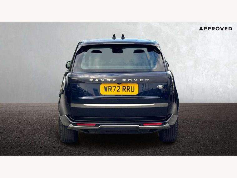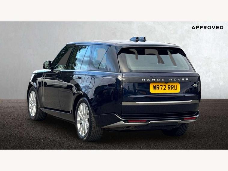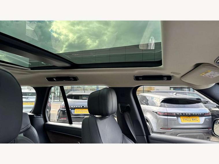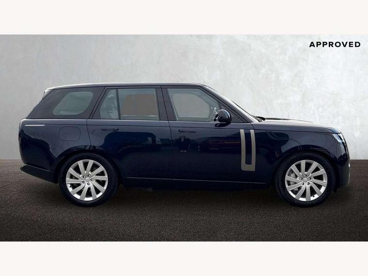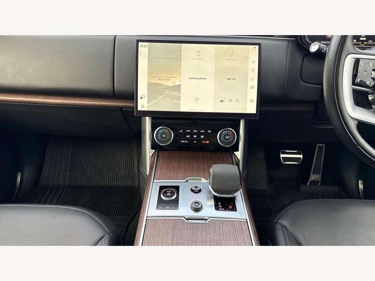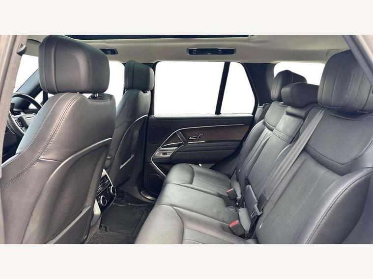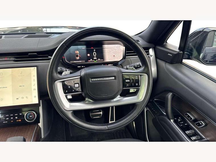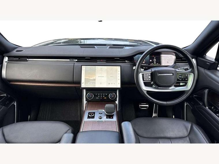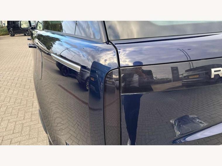 13.1" Touchscreen, 3D surround camera inc frwd traffic detection, vehicle clearance guidance, 3D view, clearsight ground view, manoevure light, 360 parking aid, wade sensing, Adaptive cruise control with steering assist, All Terrain Info Centre, All wheel steering, Android Auto, Apple car play, Blind spot assist, Bluetooth connectivity streaming, Driver condition response, Eco mode, Electric power assisted steering (EPAS), Emergency call service, Front and rear parking aid, Interactive driver display, Lane keep assist, Powered gesture tailgate/boot lid, Rear collision monitor, Rear traffic monitor, Remote, Traffic sign recognition with adaptive speed limiter, Wi-Fi Enabled with data plan, Wireless device charging with phone signal booster, 7 kW onboard charger, 8 speed automatic transmission, Active damper technology system, Adaptive dynamics, All terrain progress control, All Wheel Drive (AWD), Automatic access height, Home charging cable 5m Mode 2 including plugs, Public charging cable 5m Mode 2 including plugs, Terrain Response 2 Auto, Twin speed transfer box, Digital Audio Broadcast radio-DAB, Pivi pro including smart settings, Connected navigation pro, nuance speech, USB socket, Acoustic laminated windscreen, Animated directional indicators, Automatic headlights, Automatic levelling headlights, Centre high mounted stop light, Electric windows with one touch open/close and anti trap, Flush deployable exterior door handles, Front and rear recovery eyes, Front fog lights, Headlamp power wash, Heated rear window, Heated washer jets, LED tail lights, Power fold, auto-dimming, heated door mirrors with approach lights, Rain sensing windscreen wipers, Range rover badge, Rear boot, Rear fog lights, Rear side wing doors, Rear wash/wipe, Side repeater indicators in mirror, Trailer stability assist, Winter wiper park position, 12V power sockets, 3 seat bench in 2nd row, Air quality sensor, Bright metal pedals, Cabin lighting, Customer configurable single point entry, Driver and passenger front seat armrests, Easy boot loading, Ebony Carpet, Front and rear cupholders, Front and rear grab handles, Front head restraints, Gearshift paddles, Heated steering wheel, Hook in load space, Loadspace light, Luggage tie down in loadspace, Multifunction steering wheel, Rear centre armrest, Rear head restraints, Rear ISOFIX, Single front passenger seat, Twin blade sunvisors with Illuminated vanity mirrors, Upper and lower glovebox, Online pack with data plan - Range Rover, 3x3 point rear seat belts, Anti-lock braking system (ABS), Brake hold function, Cornering brake control (CBC), Customer configurable autolock, DSC - Dynamic Stability Control, Electronic brake force distribution, Electronic parking brake, Electronic traction control, Emergency brake assist, Emergency braking, Front airbags with passenger seat occupant detector, Front side airbags, Hill descent control, Hill launch assist, Low traction launch, Occupant protection assist, Power operated child locks, Roll stability control, Tyre pressure monitoring system (TPMS), Immobiliser, Intrusion sensor and alarm, Keyless entry, Locking wheel nuts, Remote central locking, Noble chrome controls,