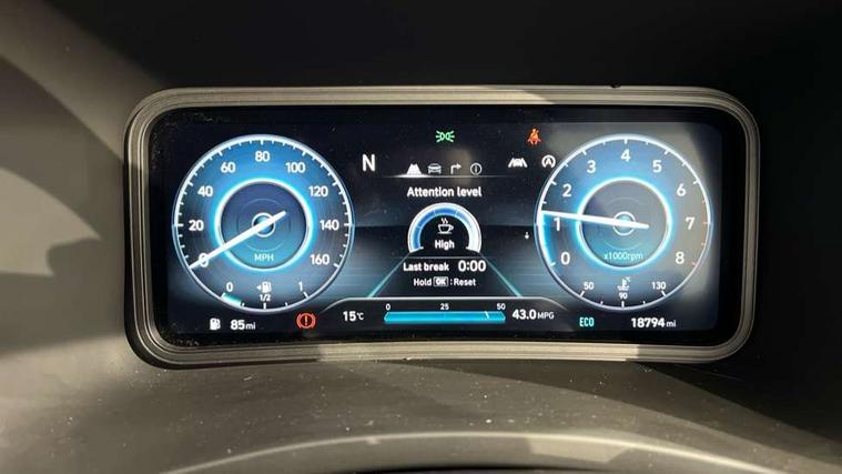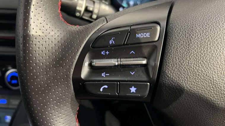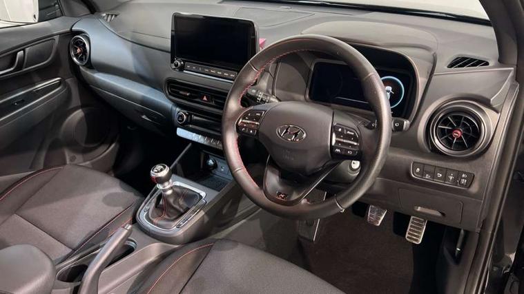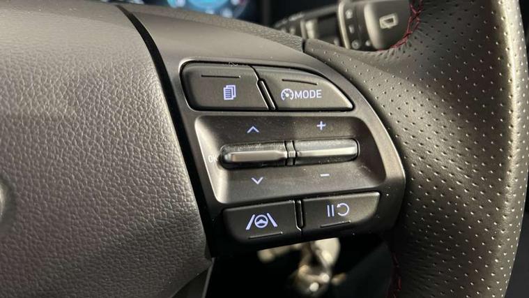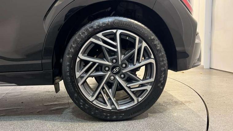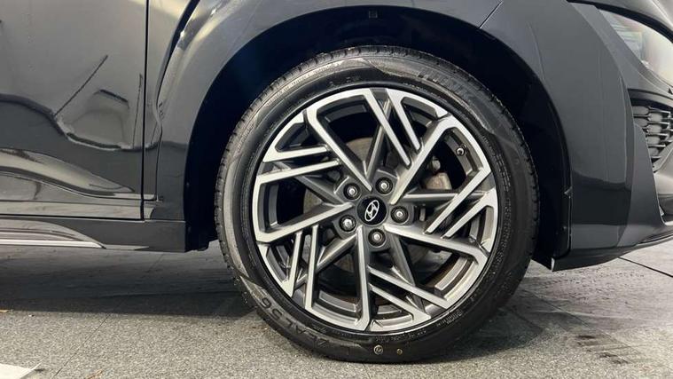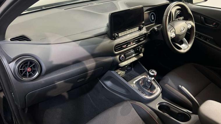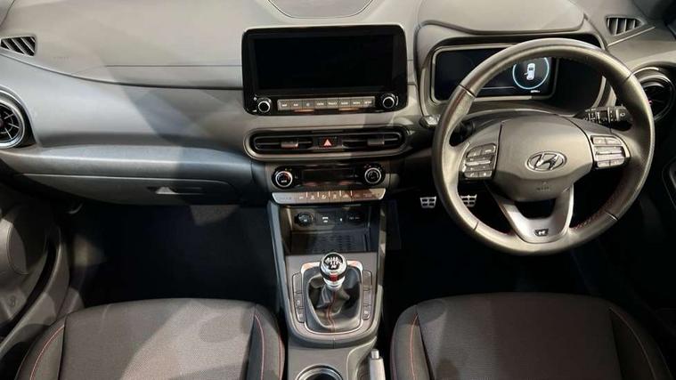 10.25" touchscreen centre console display satellite navigation with live services and mapcare, Bluetooth connectivity, Cruise control + speed limiter, Digital clock, Driver attention warning, Driver supervision instrument cluster with 10.25" LCD display, eCall emergency call system, Forward collision avoidance assist with pedestrian detection, Lane follow assist, Lane keep assist, Leading vehicle departure alert (LVDA), Parking system with rear camera and guidance system, PAS, Phone connection with apple carPlay and android auto, Rear parking sensor, Roadside assistance, Windscreen washer fluid sensor and warning indicator, Wireless phone charging pad, 6 speed intelligent manual transmission, Front and rear USB ports, Krell premium audio system with 8 speakers including external amplifier and subwoofer, RDS and Digital DAB, Steering wheel mounted audio/phone controls, Auto dimming rear view mirror, Automatic headlights with dusk sensor, Automatic windscreen wipers with rain sensor, Black radiator grille, Body colour bumpers, Body colour door mirrors and handles, Body colour side cladding, Body coloured garnish, Door mirror integrated indicators, Electric front/rear windows with drivers one touch/anti-trap, Electrically adjustable and heated door mirrors, Halogen headlights, LED daytime running lights, LED rear lights, Positioning Lights - LED, Power folding door mirrors, Privacy glass - Rear windows and tailgate, Rear roof spoiler with integrated LED brake light, Rear skid plate - silver, Rear wiper, Roof rails, Solar glass with front door glass and windscreen shade band, Windscreen auto defog function, 12V power outlet in front console, 60/40 split folding rear seat, Adjustable head restraints, Air conditioning climate control, Ambient lighting, Centre interior light, Cloth upholstery, Door scuff plate, Driver and passenger front seat pockets, Driver's seat electric lumbar support, Driver's seat height adjustment, Driver/passenger sunvisors and illuminated vanity mirrors, Front interior light, Front passenger seat manual adjustments, Height/reach adjustable steering column, Isofix rear child seat fastenings, Leather wrapped steering wheel and gear knob, Luggage compartment lighting, Luggage hooks, Luggage net, Metal paint effect interior door handles, Metal pedals, N logo on the gear shift, Parcel shelf, Rear centre console with air vents, Sunglasses holder, Vertical adjustment rear head restraints, Trailer wiring package - Kona, Airbags - front, front side and curtain airbags, Anti-lock brake system (ABS), Childproof rear door locks, Downhill brake control, EBD + Brake Assist, Electronic stability control, Fasten seatbelt reminder, Fixed 3 point for second row centre passenger seatbelt, Front seatbelt pretensioners, Height adjustable front seatbelts, Hill start assist control (HAC), Manual parking brake, Passenger airbag deactivate switch, Rear seat alert, Traction control, Tyre pressure monitoring system, Alarm/immobiliser, Deadlocks, Folding key, Locking wheel nuts, Remote central locking, 18" Alloy wheels,