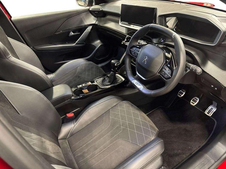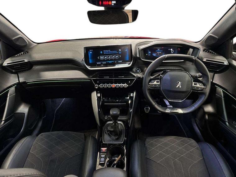 10" Capacitive colour touchscreen with connected 3D navigation, Blind spot monitoring, Bluetooth telephone facility, Driver attention warning, Exterior temperature indicator with ice warning, Lane keep assist, Mirror screen with mirror link, apple carplay and android auto, Multi function trip computer, PEUGEOT i-Cockpit with compact steering wheel, PEUGEOT i-Cockpit with configurable 3D headup instrument panel, PEUGEOT SOS and assistance, Push button start, Smart phone docking station, Speed limit recognition and recommendation, Start/stop system, Visio park assist 180 with colour reversing camera + front and rear parking sensor, 2 front USB socket with USB-C, 2x USB sockets in rear, 6 speakers radio with mp3 compatible, DAB Digital radio, Voice recognition for radio, navigation and telephony features, 2 X Rear number plate lights, Automatic hazard light activation upon heavy brake application, Automatic lights, Automatic windscreen wipers, Body coloured exterior door handles, Dark tinted rear side and tailgate windows, Diamond black rear spoiler (roof), Diamond Black roof, Electric front windows + one touch + anti-pinch, Electric rear windows with one touch/anti-pinch, Electrically adjustable, heated and power folding door mirrors, Follow me home headlights, Frameless electrochrome interior rear view mirror, Full LED headlights with smartbeam assist, Gloss black finish on B pillar, Gloss black rear cluster connecting strip, Gloss black wheel arch extensions, Gloss black window surround, GT model designation badging on C pillar, GT model designation badging on tailgate, Headlights left on audible warning, LED daytime running lights with 3 claw headlight with distinctive tooth design, LED side indicator lights integrated into door mirrors, LED third brake light, Model designation badges front and rear, Nera black door mirror shells, Peugeot scuff plates, Radiator grille - Dark chrome chequered and gloss black edge trim, Rear bumper with gloss black finish, Rear full LED 3D peugeot signature claw effect lights with daylight function, Rear lower bumper diffuser effect trim in gloss black, Rear reversing lights, Rear side wing doors, Rear windscreen wiper triggered automatically in reverse gear, Roof mounted aerial with fin design, Roof spoiler, Single exhaust tailpipe, Tailgate with heated rear windscreen and wiper blade, Variable front intermittent wipers, 1/3 to 2/3 split folding rear seats, 12V socket, 3 seat bench in 2nd row, 8 Colour personalisable ambient lighting, Aluminium pedals and foot rest, Automatic air conditioning, Driver and front passenger seat manual adjustment in longitudinal and back rest angle, Driver and front passenger seat mechanical height adjustment, Driver and front passenger sport seats, Electric power steering with reach and rake adjustable steering column, Front and rear carpet mats in black with lime green stitch detail, Front centre armrest with storage compartment, Front LED interior light with 2 reading spotlights and rear interior light with timer, Gear shift indicator, High centre console with 2 cup holders, ISOFIX child seat mounting points on passenger seat, Lime green contrast stitching to armrest, front centre console, door panels and dashboard facia, Map pockets on the backs of the front seats, Mistral full grain perforated leather steering wheel with aikinite stitch detail and satin chrome 'GT' emblem, Piano keys gloss black plated toggle switches to access main functions of the vehicle, Piano keys gloss black plated toggle switches to access touchscreen functions, Rear centre headrest, Roof lining - Mistral black, Satin chrome gear lever, Seatbelt unfastened on the move audible and visual alert for front and rear seats, Single front passenger seat, Drive assist pack - 208, 3 rear 3 point seatbelts, ABS (Anti-lock Braking System) with EBD (Electronic Brakeforce Distribution) and EBA (Emergency Braking Assistance), Active safety brake with night function/cyclists/pedestrians, Adaptive driver and front passenger airbags with passenger airbag deactivation function, Child locking functionality on rear doors, Driver/front passenger side airbags, Electric parking brake, ESP with Hill Assist, Front and rear curtain airbags, Front and rear disc brakes, Front optimised safety headrests and 3 x rear retractable headrests with height adjustable, Front three point retractable seatbelts with force limiters, Tyre pressure sensor, Acoustic vehicle alert system (AVAS), Automatic door locking when moving off, Deadlock, Electronic code immobiliser, Peugeot Open and Go System, Remote central locking, Thatcham cat. 1 alarm with anti lift sensor, Carbon effect Dashboard, front and rear door panel finish, 17" Bronx two-tone alloy wheels, Space saver spare wheel,