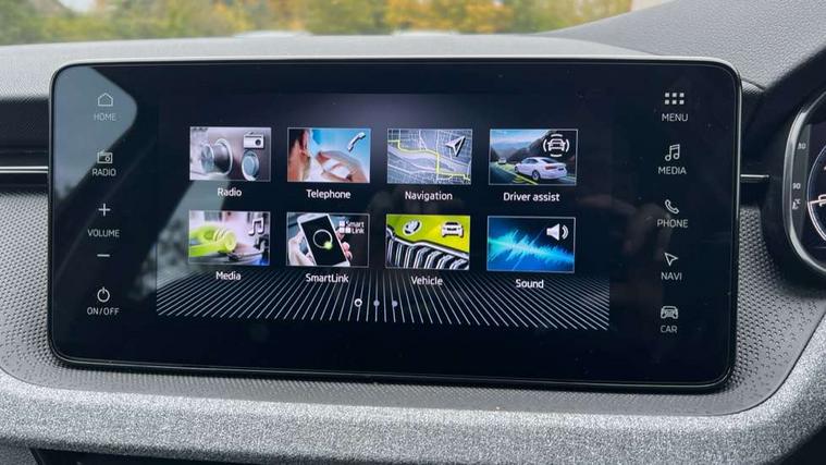 Advanced driver attention and drowsiness monitor, Bluetooth, e-Call (emergency call), Front assist system, PAS, Rear parking sensors, Rear view camera, Speed limiter, Tailgate, Traffic sign recognition, Virtual Cockpit - 10.25" digital display, Voice control system, Wireless smartlink, 4 USB C ports, 8 Speakers, 9.2" Skoda navigation display, DAB radio, Auto dimming rear view mirror, Automatic headlamp activation with Coming home and Leaving home feature, Automatic high/low beam, Body colour bumpers, Body colour door mirrors and handles, Chrome moulding around grille, Front and rear electric windows, Full LED headlights, Heated rear window, LED 3rd brake light, LED brake lights, LED daytime running lights, LED front turning lights, LED high beam, LED low beam, LED taillights, Rear LED fog light, Rear side wing doors, Rear wiper, Tinted windows, Unique dark chrome design logo on alloy wheels, 12V socket in luggage compartment, 3 seat bench in 2nd row, Black / Grey armrest stitching, Black hotstamping, Cargo elements, Chrome inner door handles, Door inserts in satin black, Driver and passenger sun visors with vanity mirror, Dual zone climate control, Front and rear roof lights, Front centre armrest, Front head restraints, Glasses storage in roof liner, Height adjustable driver seat, Height adjustable passenger seat, Ice scraper, Illuminated glove compartment, Inner circulation control with pollen filter, ISOFIX for front passenger seat, Isofix preparation for back seats, Leather gearknob and handbrake lever, Loft cloth upholstery, Luggage net under rear parcel shelf, Manual lumbar support for front seats, Net package and top tether hooks in boot space, Pearl grey ceiling, Pocket on the back of both front seats, incl. mobile phone pockets, Single front passenger seat, Skoda lettering on steering wheel, Textile floor mats, Third rear headrest, Ticket holder, Top tether for front passenger seat, Umbrella in driver's door, 3x3 point rear seatbelts, ABS, Child locks, Curtain airbags and front side airbags, Disc brakes, Driver and front passenger airbags, ESP, Hill hold control, Manual leather parking brake, One tone horn, Passenger airbag switch off function, Seatbelt reminder for driver and front passenger, Tyre pressure monitoring system, Anti theft alarm system with interior monitoring, backup horn and towing protection, Anti-theft wheel bolts, Remote central locking with 2 remote folding keys, SAFE function for remote central locking, Decord pad, door inserts Kota uni,