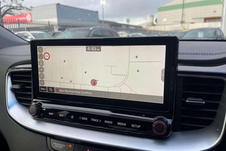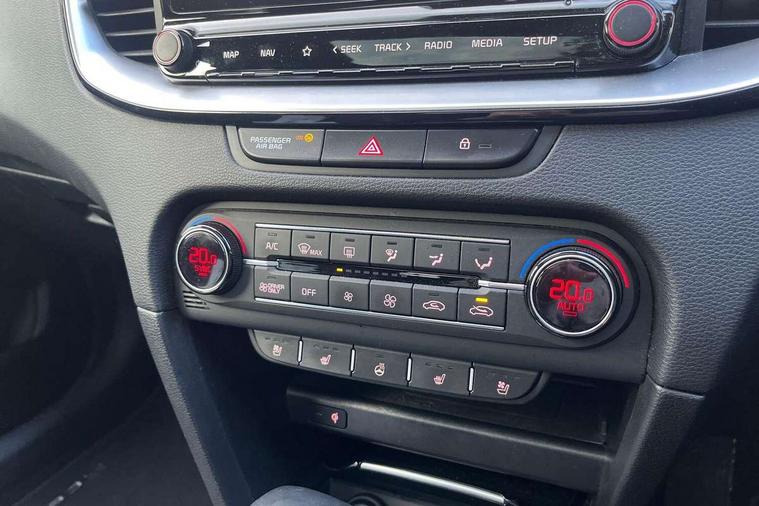 10.25" touchscreen satellite navigation with telematics, 12.3" TFT supervision cluster display, Android auto with voice control, Apple car play with voice control, Blind spot collision warning, Bluetooth with Voice Recognition & Music Streaming, Drive mode selector, Driver attention warning, Forward Collision-Avoidance Assist (FCA) - City/Pedestrian/Cyclist, Intelligent speed limit warning, Kia connected services featuring TomTom live, Lane Following Assist (LFA), Lane keep assist, Motor driven power steering, Reversing camera with dynamic guide lines, Smart cruise control with stop and go functionality, Smart park assist system (SPAS) with parallel/perpendicular/reverse with front/rear parking sensors, Smart power tailgate, Trip computer, Wireless Mobile Phone Charger, 7 speakers, DAB Radio with MP3, Front USB port, Steering wheel mounted controls, USB Fast Charger in Front Centre Console, All-round Electric Windows with Auto Up & Down Function, Auto dimming rear view mirror, Automatic defog system, Automatic headlights, Black chrome and satin chrome closed radiator grille, Black wheel arch extensions, Body colour bumpers, Body colour exterior door handles, Body colour side sill mouldings, Body coloured rear spoiler, Electrically folding, adjustable and heated door mirrors with integrated LED indicator lights, Gloss black shark fin antenna, Heated rear window with timer, High beam assist, High gloss black door mirrors with matt black lower housing, LED Bi-Function projection headlights, LED daytime running lights, LED High-mounted Brake Light, LED rear fog light, LED rear lights, Panoramic sunroof with tilt/slide function and automatic electric roll blinds, Privacy glass - Rear windows and tailgate, Projection front fog lights, Rain sensing front wipers, Rear wiper, Satin chrome window surround, Silver roof rails, Tinted glass, Wide view drivers door mirror, Windscreen Washer Level Warning, 12V power socket in front centre console, 12V socket in luggage compartment, 40:20:40 split folding rear bench seat, All-round height adjustable headrests, Aluminium pedals, Centre console with cupholders and sliding cover, Centre Console with Storage Box and Sliding Armrest, Chrome interior door handles, Driver + front passenger electric lumbar support, Driver seat memory function, Driver seat power height adjuster, Dual zone automatic air conditioning, Faux leather door trim, Front and rear door storage, Front cabin LED map light with sunglasses case, Front Passenger Seat Height Adjuster, Front seat and rear pockets, Heated front seats, Heated outer rear seats, Heated steering wheel, Illuminated driver and front passenger sunvisors with vanity mirror, ISOFIX Child seat top tethers and anchor fixings, Leather steering wheel and gearshift, Leather upholstery, Luggage area light, Luggage area parcel shelf, Luggage hooks, Rear cabin light, Rear centre armrest with cupholders, Tilt/telescopic adjustable steering wheel, Ventilated front seats, Trailer Pack - XCEED, ABS with Electronic Brakeforce Distribution (EBD) and Brake Assist System (BAS), All round 3-point seatbelts, Dual front side airbags, Dual horn, Electronic parking brake, Electronic stability control (ESC) and vehicle stability management (VSM), Front passenger airbag cut off switch, Height adjustable front seatbelts, Hill start assist control (HAC), Impact sensing auto door unlocking, Rear door child safety locks, Seatbelt reminder warning, Traction control, Twin curtain airbags, Twin front airbags, Tyre pressure monitoring system, Alarm system, Engine Immobiliser & Deadlocks, Engine Start/Stop Button with Smart Entry System, Locking wheel nuts, 18" Alloy wheels, Tyre mobility kit,