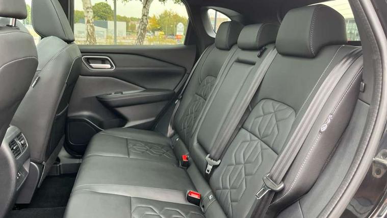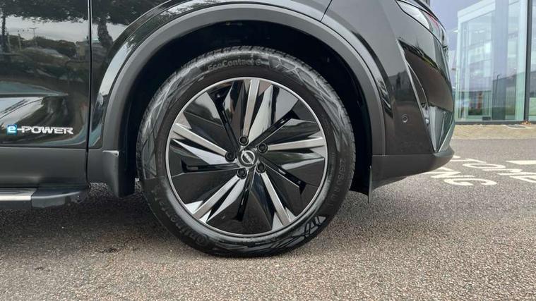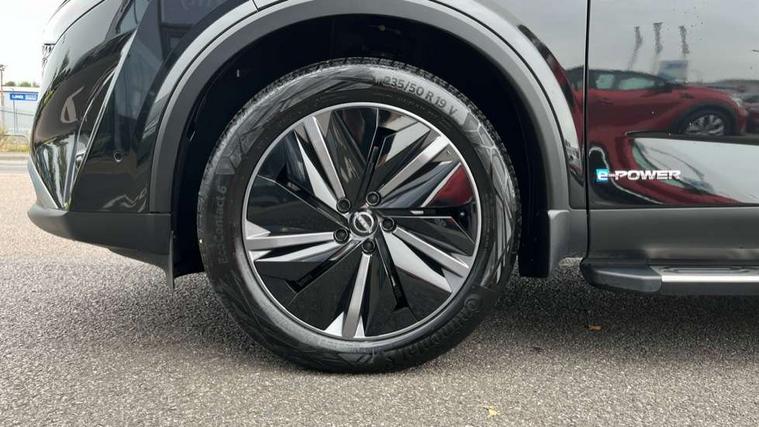 2 front USB-C ports, 2 rear USB-C ports, 360 degree Intelligent around view monitor with moving object detection, Advanced windscreen head up display, Blind spot warning, Drive assist custom mode, Drive modes (sport, normal, eco), Driver drowsiness and attention warning, e-Pedal step, Electric speed sensitive power steering, Emergency and breakdown call, Emergency lane keep assist, Emergency Stop Signal (ESS), Engine start/stop button, EV mode switch, Event data recorder, Front and rear parking sensors, Full Digital 12.3" TFT Digital Combimeter, Google virtual personal assistance, Hands free power tailgate, Idle stop/start system, In-car WIFI hotspot, Intelligent Cruise control (ICC), Intelligent driver alert system, Intelligent forward collision warning, Intelligent lane intervention, Intelligent speed assist, Lane departure warning system, Nissan connect 12.3 inch touchscreen infotainment system, Nissan connect navigation with google maps, Nissan connect services 2.0 (Google Automotive System), Outside temperature sensor, Propilot assist with Navi-Link, ProPilot park, Rear cross traffic alert, Remote control services - door locks, lights, horn and car locator, Reversing detection, Traffic jam pilot, Traffic sign recognition with legal speed adjustment, Trip computer, Wireless Apple CarPlay/Android Auto, Wireless charging pad, Limited slip differential, 6 speakers, AM/FM audio system with DAB, Bluetooth audio streaming, Auto dimming frameless rear view mirror, Auto rear wiper when reversing, Body colour mirror caps, Body coloured door handles, Bodyside mouldings, Chrome side window finisher, e-POWER badging, Electric auto folding door mirrors, Electrically adjustable and heated door mirrors with LED turn indicator, Follow me home headlights, High beam assist, Intelligent auto headlights, LED 3rd brake light, LED daytime running lights, LED headlights with adaptive driving beam, LED rear lights, LED sequential turn lights, One touch front and rear electric windows with remote opening and closing, One touch passenger window, Partially body coloured bumpers, Rain sensing wipers, Rear privacy glass, Rear roof spoiler, Rear side wing doors, Rear styling plate, Reverse tilting door mirrors, Shark fin antenna, Silver roof rails, Splash free rain sensing wipers, Super RED rear LED lights, Super UV and infrared cut glass, Thermaclear heated windscreen, 12v power socket in dashboard and luggage, 3 bench rear seats in 2nd row, 3 rear headrests, 60/40 split folding rear seat bench, Chrome interior door handles, Dark headlining, Driver and passenger sunvisors with illuminated vanity mirrors, Driver seat back pocket, Dual zone automatic climate control with pollen filter, e-POWER shifter, Electrically adjustable driver seat, Electrically adjustable lumbar support for driver, Fixed Glass roof with electric sunshade, Front centre console and armrest, Front cupholders, Front door with bottle holders, Heated front seats, Heated steering wheel, Height adjustable front headrests, Height adjustable passenger seat, Luggage board system, Luggage space lighting, Manual adjustable lumbar support for passenger, Multifunction steering wheel, Passenger seat back pocket, Quilted/PVC upholstery, Rear door bottle holders, Rear seat armrest with 2 cupholders, RGB ambient light (Full area coverage), Single front passenger seat, Smooth leather steering wheel, Tilt/telescopic adjustable steering wheel, Two rear isofix child seat anchorage points with top tether, 3x3 point rear seatbelt pretensioners + load limiters, ABS with EBD and brake assist, Autonomous emergency braking, Child locks on rear doors, Curtain and front side, far side airbags, Driver and passenger airbags, Driver, passenger and 2nd row rear seat belt reminder, Electric handbrake with auto hold function, Front seatbelt pretensioners + load limiters, Height adjustable front seatbelts, Hill start assist, Intelligent blind spot intervention, intelligent front emergency braking, Intelligent rear automatic braking, Tyre pressure monitoring system, Vehicle dynamic control, Engine immobiliser, Intelligent key with walk away lock and approach unlock functions, Remote central door locking with deadlocking, Thatcham alarm, 19" Diamond cut alloy wheels, Tyre puncture repair kit,