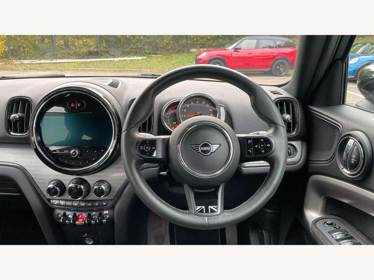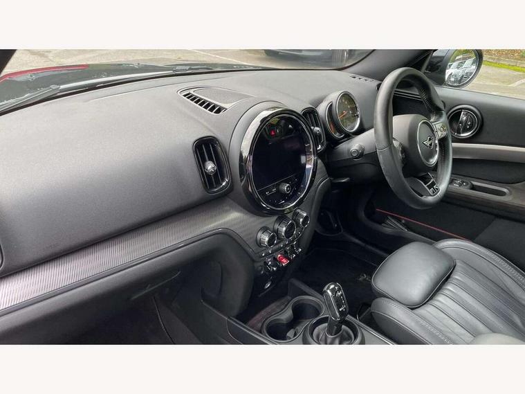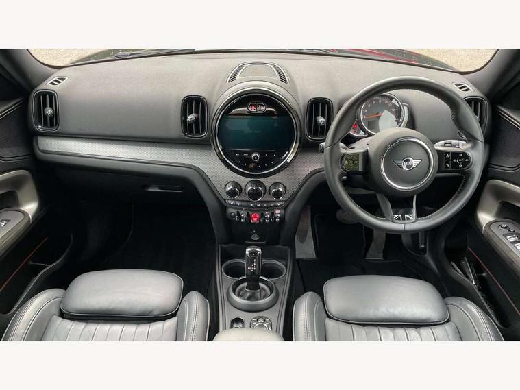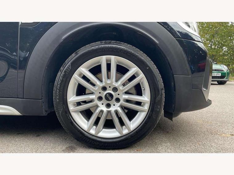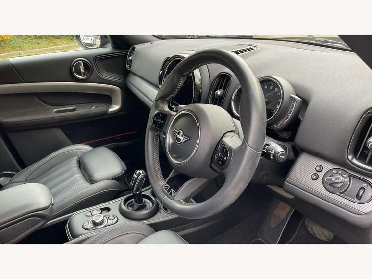 Active Guard incl speed limiting and lane departure functions with auto steering, and front collision warning with brake intervention, Automatic start/stop function with brake energy recuperation, Compatible mobile phone bluetooth with audio streaming, Electro-mechanical speed dependant steering assistance, Instrument cluster, On board computer, Rear parking distance control, 51 Litre fuel tank, Double Vanos system, Fully variable valve control, High precision injection, Performance Control, Steptronic transmission with double clutch, 6 speakers, FM tuner and DAB digital radio, Body colour fuel filler cap, Day time driving lights, Door sill strips, Dynamic brake lights, Electric windows, Heated rear window, Heated windscreen washer jets, LED fog lights, LED Headlights, MINI yours exterior badge in C-Pillar, driver and passenger side, Model logo, Model logo on Tailgate, Rain sensor with auto headlights, Rear fog lights, Rear window wiper, Side scuttle panel with integrated indicator, Split rear doors, Sun/heat protection glass, White indicator lenses, 12V socket in centre console, 360L luggage compartment capacity, 4 lashing eyes in luggage compartment, 40:20:40 split folding rear seats, Anthracite headlining with grab handles and clothes hooks, Chrome interior highlights, Colour line - Carbon black, Cupholders, English handbook, Front headrests, Glove compartment, Height and length steering column adjustment, Interior lighting with 12 basic colours selectable via toggle switch in roof, Isofix rear child seat preparation, Leather gearshift lever and handbrake gaiters, LED reading lights, vanity mirror lights, front foot well light and spotlight on front seats, Manual air conditioning, MINI Yours fine walk nappa leather steering wheel with contrast stitching in silver and MINI Yours badge, MINI Yours floor mats, Multifunction steering wheel, Rear headrests, Storage compartments in doors, Sunvisors with vanity mirrors, Excitement pack - Countryman, Navigation pack - Countryman, 2 tone horn, 3 point seatbelts on all seats, 6 Airbags - front, side, head and seat belt tensioners, Anti-lock braking system (ABS), DSC - Dynamic Stability Control, Electronic handbrake, Front and rear disc brakes, Hill start assist, Tyre pressure monitoring system, Alarm system with tilt sensor, monitoring doors, bonnet interior and tailgate, Auto drive away locking, Deadlocking function, Electronic vehicle immobiliser, Locking wheel bolts, Start/stop toggle with keyless go, Tool kit,