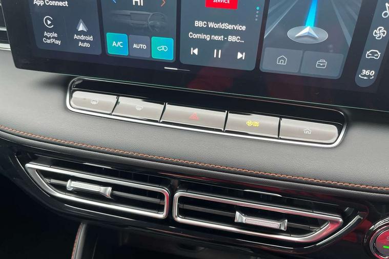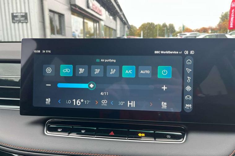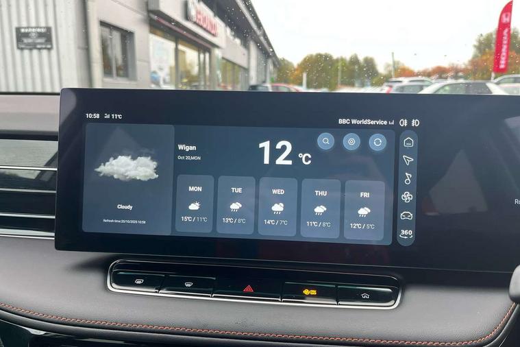 Driver attention alert, 12.3" colour touchscreen, 12.3" Virtual driver information display, 360 degree parking camera, Adaptive cruise control, Android Auto, Apple CarPlay, Blind spot detection, Bluetooth connectivity, Driver memory function, Emergency call service, Forward collision warning, Front parking sensors, Intelligent speed limit assist, iSmart, Lane change assist, Lane keep assist system (LAS) with Lane departure warning system (LDWS), Live services, PAS, Power tailgate, Rear cross traffic alert, Rear parking sensors, Satellite navigation system, Traffic jam assist, Trip computer, Wireless charging, 4 USB ports 2 front and 2 rear, 8 Speaker audio system, DAB audio, Auto dimming rear view mirror, Automatic headlights, Electric adjustable/heated/folding door mirrors with memory, Follow me home headlights, Front and rear aero wiper, Front and rear electric windows with one-touch up/down, Front fog lights, Intelligent high beam, LED 3rd brake light, LED daytime running lights, LED Headlights, LED rear lights, Rain sensing wipers, Rear privacy glass, Rear side wing doors, Silver roof rails, Vehicle to Load, 12V power sockets, 2nd row 60/40 split fold seat, 3 rear headrests, 3 seat bench in 2nd row, 3 stage heated front seats, 4 way electric adjustable passenger seat, 6 way electric adjustable drivers seat + lumbar support, Dual zone automatic air conditioning, Front and rear reading lights, Front centre sliding armrest with storage compartment, Front headrests, Height and reach adjustable steering wheel, ISOFIX restraints on outer rear seats x2, Multi function steering wheel, Single passenger seat, 3x3 point rear seatbelts, ABS/EBD, Active emergency braking with pedestrian/Bicycle detection, Anti rolling protection, Door open warning, Drivers seatbelt reminder, Dual front airbags, Electric parking brake with auto hold function, ESP, Front and rear passenger seat belt reminder, Front centre airbag, Front passenger airbag deactivation switch, Front seat belt height adjuster, Front seatbelts (3-point + pretensioner + load limiter), Front side airbags, Hill descent control, Hill launch assist, Manual rear child locks, Rear outer seatbelt pretensioner and load limiter, Side curtain airbags, Tyre pressure monitoring system, Alarm system and engine immobiliser, Keyless entry and push button start system, Remote central locking, Speed sensing door locks, 19" Blade diamond cut alloy wheels, Tyre repair kit,