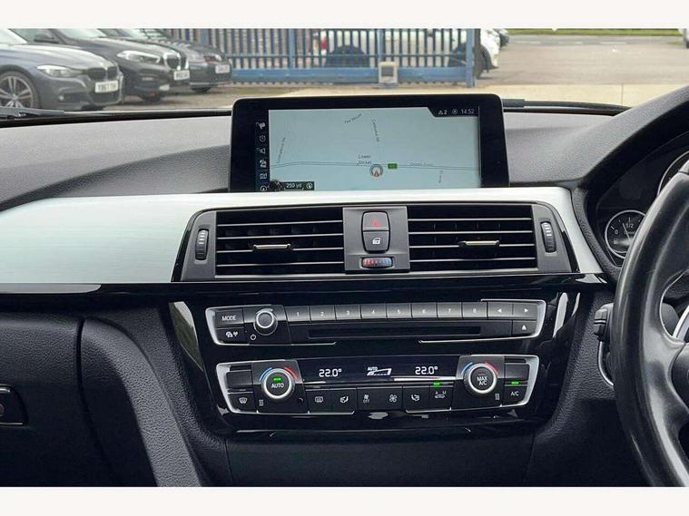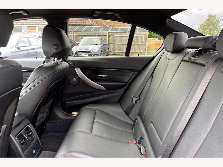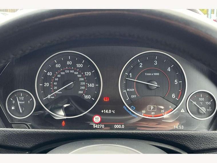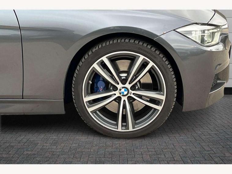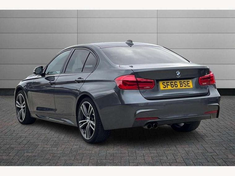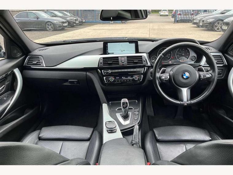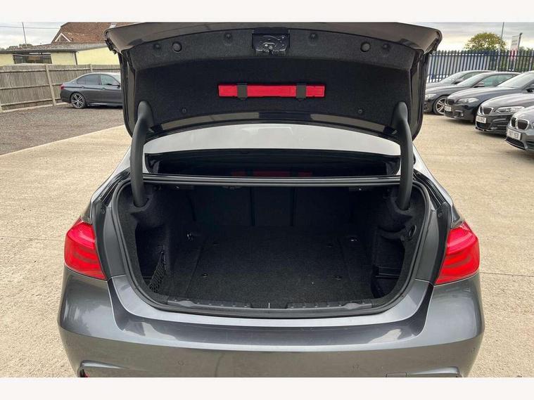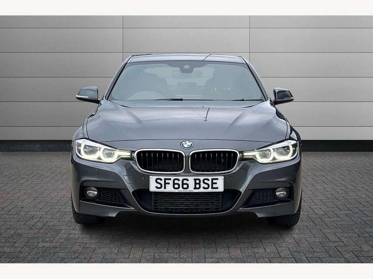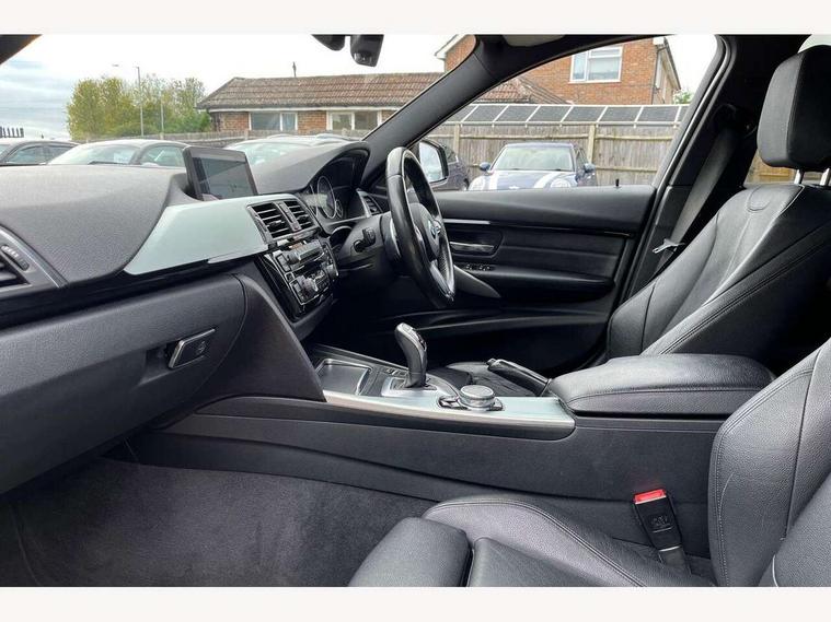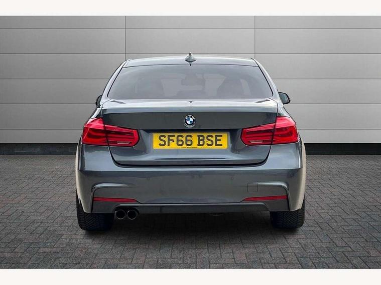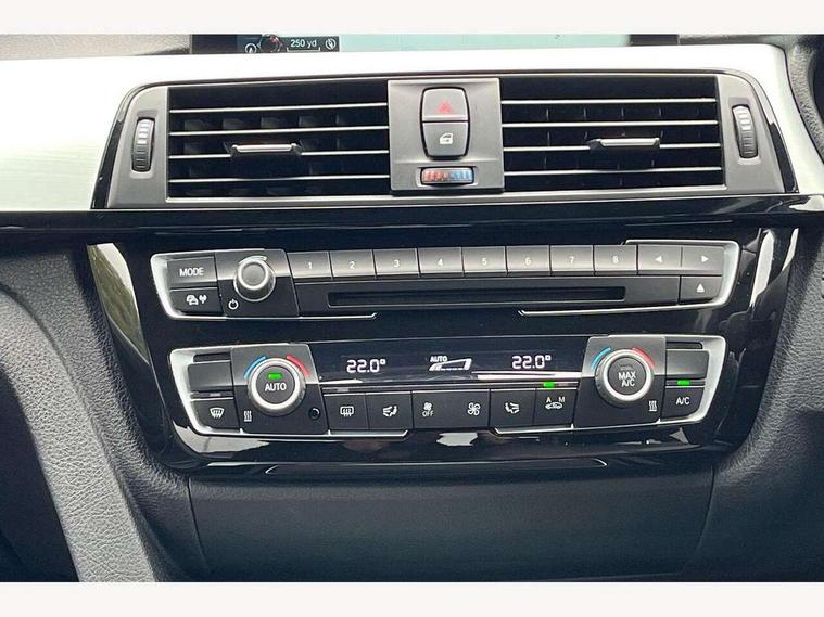 BMW Online services, BMW Teleservices, Brake force display, Brake pad wear indicator warning light, Check control system, Digital clock, Door/boot open warning light, Front/rear park distance control, Lights on warning, Oil temperature gauge, On board computer, On board diagnostics, Operation warning of all exterior lights, Outside temperature display, Push button starter, Run flat tyre indicator, Service interval indicator, Traffic message channel (TMC), Diesel particulate filter, Drive Performance Control, Electronic differential lock, Sports function on gearbox with steering wheel mounted gearshift paddles, Auxiliary point for auxiliary devices, BMW professional radio/CD/MP3, CD Changer preparation, DAB Digital radio, 'Guide me home' headlamps, 2 speed adjustable intermittent wipers with wash/wipe function, Auto dimming rear view mirror, Automatic headlight beam throw control, Body colour bumpers, Body colour door handles, Body colour electric adjustable door mirrors, Body colour roof mouldings, Chromed finished twin exhaust, Clear indicator lenses, Door sill finishers, Dynamic brake lights, Electric front and rear windows with one touch/convenient open/close function, Front ornamental grille with chrome plated kidney bars and chrome bezel, Green tinted heat insulating glass, Heated rear window with automatic switch off, Heated windscreen washer jets, High gloss shadow line, LED daytime running lights, LED fog lights, Rain sensor + automatic driving lights control, Shark fin roof aerial, 12V sockets in front centre console and passenger footwell, 2 x folding cupholders in instrument panel above glovebox, 3 rear seat head restraints, 4 foldable grab handles - rear with clothes hook, 4 lashing points to secure luggage, Automatic interior light soft on/soft off system, Driver and passenger sunvisors with vanity mirrors + slide cover, Dual zone automatic air conditioning, Folding front centre armrest + storage, Front and rear door armrests, Front and rear velour floor mats, Front door storage bins with bottle holder, Front sports seats with electric side bolster adjustment, Glovebox light, Height adjustable front headrests, Indirect front interior illumination - soft-light function, Individual anthracite headlining, Isofix system on outer rear seats, Leather gear knob, Leather gear selector lever handle, Leather handbrake grip, Lockable glovebox, Luggage compartment lighting, M sports leather steering wheel, Multi-function controls for steering wheel, Reach + rake adjustable steering column, Rear centre armrest with 2 cupholders, Rear storage compartment in multifunction centre console with sliding cover, Storage compartment in rear doors, Toolkit located in luggage compartment, Extended lighting package - 3 Series, 3 point inertia reel seatbelts + pre-tensioners on outer rear seats, ABS, Automatic Stability Control (ASC), BMW emergency call, Cornering brake control (CBC), Crash sensor, Driver and passenger airbags, DSC+, Dynamic brake control, Dynamic Traction Control - DTC, Front and rear head airbags, Front passenger airbag deactivation, Front seat side impact airbags, Front seatbelt pretensioners + load limiters, Hill start assist, Rear child proof door locks, Seatbelt warning, Three 3 point rear seatbelts, Twin horns, Tyre pressure monitor, Warning triangle and first aid kit, Automatic drive away locking facility, Central locking fuel filler cap, Centre lock switch, Electronic immobiliser, Key integrated remote control central locking, Remote control alarm, Low rolling resistance tyres, Run-flat tyres,