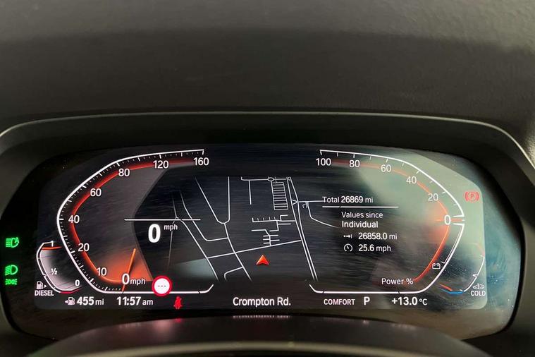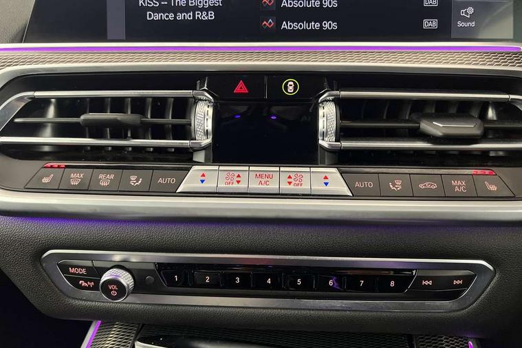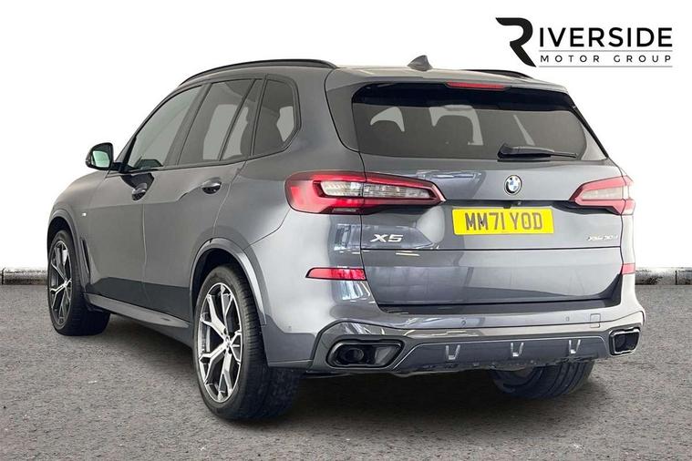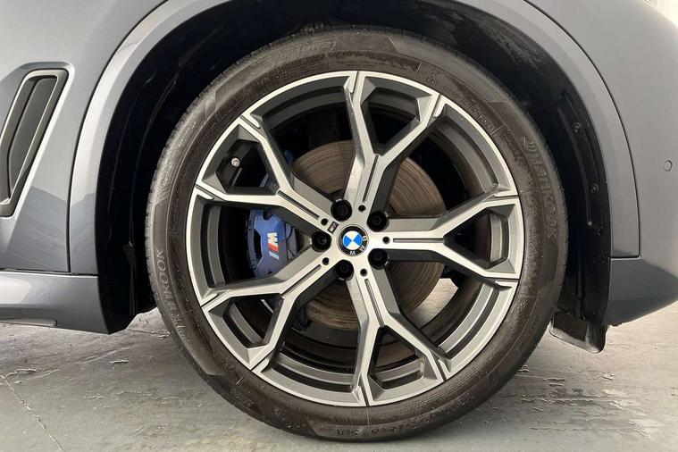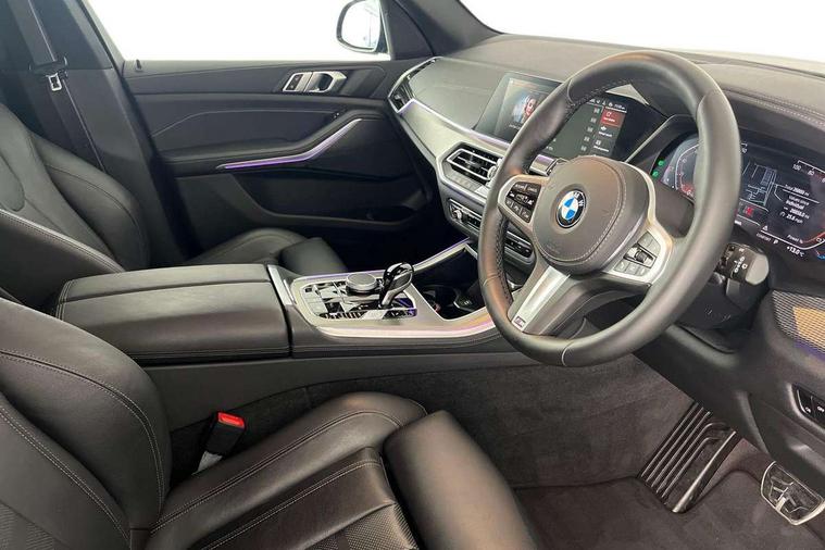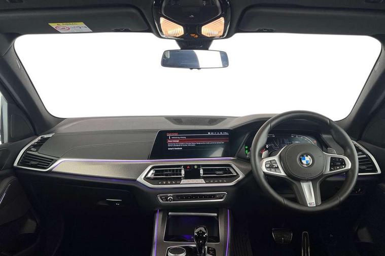 20GB hard disc drive (HDD) memory, Active guard plus, Attentiveness assist, Automatic tailgate with top hinged section open and manual bottom hinged section, BMW ConnectedDrive online services, BMW digital live cockpit professional - 12.3" digital instrument panel and 12.3" CID, with touch/voice command, BMW legal emergency call, BMW Teleservices, Brake force display, Brake pad wear indicator warning light, Cruise control with brake assist, Enhanced bluetooth with wireless charging, Front/rear park distance control, iDrive touch controller with shortcut buttons, Lights on warning, Oil sensor for level and grade, On board computer inc. average speed, fuel consumption, liquid crystal Info display, journey computer, outside temperature display, personal profile, Service interval indicator, Speed limit info display, Speed limiting function, Wi-Fi hotspot, 48V Mild hybrid technology, Adaptive 2-axle air suspension, Common rail technology, Diesel particulate filter, Double wishbone front axle, Drive performance control with ECO PRO comfort + sport mode, Eight speed steptronic sport automatic transmission and gearshift paddles on the steering wheel, Safety battery terminal clamp, Variable vane geometry, DAB Tuner enables digital radio reception, Favourite buttons, Hi-Fi loudspeaker system, USB connection, USB type A 1.5A in cupholder, USB Type C 3A in centre armrest, Active Air Stream kidney grille with high-gloss chrome, Adaptive air flap control bar in high-gloss black, Automatically dimming rear view mirror, BMW Individual high gloss black shadow line roof rails, Body colour bumpers, Body colour door handles, Dynamic brake lights with LED technology, Exhaust tailpipes - single, left and right with Chrome finisher, Follow me home headlight function, Front and rear electric windows with open and close fingertip control, anti trap facility and comfort closing, Heated windscreen washer jets, High beam assistant, High gloss black outer and central air intakes on front bumper with pearlescent chrome finish, High gloss black Side elements, LED daytime running lights, LED rear lights, M aerodynamic body styling, M designation on left and right front side panels, Pearlescent chrome front grille bars, Rain sensor with automatic headlight activation and windscreen wiper control, Rear side wing doors, Satin aluminium side window graphic, Third brake light in rear spoiler, Variable intermittent rear wash/wipe, Welcome light carpet, X5 on left tailgate, xDrive designation on right tailgate, 12V - Power sockets with 2x centre console and 1x luggage compartment, 3 seat bench in 2nd row, 40:20:40 split folding rear seats, Ambient interior lighting with 6 pre-designed selectable lights including dynamic function, Centre and rear interior light, Child seat ISOFIX attachment with rear outer seats includes top tether, Compartment in front of cupholder, Electric front seat adjustment with driver and front passenger memory function, Electrical steering column with adjustable height and length with activation and control on the steering column, Foldable rear centre armrest with 2 cupholders and storage compartment, Front and rear cupholders x 2, Front and rear door pockets, Front and rear door sill inlays with illuminated BMW M designation, Front and rear side armrest integrated into door trim, Front footwell lights, Front reading lights, Light inside glove compartment, Lockable glove compartment, Luggage compartment floor panel with integral storage tray, Luggage compartment lighting, M leather steering wheel, M specific key, M specific steering wheel, M specific velour floor mats, Make-up mirror lights, Multifunction controls for leather steering wheel, Multifunctional hooks, Rear head restraints, Seat back with flap pocket, Securing rings in luggage compartment, Single front passenger seat, Storage bins on all doors, Storage tray and compartment with cover in centre console, Sunvisors with illuminated vanity mirrors, Toolkit located in luggage compartment, Connected Package Professional - X5, Expanded exterior mirror pack - X5/X5 M, Non-smokers pack - X5, Airbags - driver/front passenger, rear and side, first and second row seats head airbags, front passenger seat airbag deactivation + knee airbag, Anti-lock braking system (ABS), Automatic Stability Control (ASC), Brake drying, Brake energy regeneration, Brake fade compensation, Braking pre-tensioning, Cornering brake control (CBC), Crash sensor activating central locking release, hazard warning lights, fuel cut off, interior lighting + activation of safety battery terminal clamp, Deformation zones - front and rear with door reinforcements and bumpers up to 2.5 mph, DSC - Dynamic Stability Control, Dynamic brake control, Dynamic Traction Control - DTC, Electromechanical parking brake with automatic drive away release and auto hold function, Electronic brake force distribution, Front and rear seatbelts with seatbelt stopper, seatbelt tensioner for front and outer rear seats and belt force limiter, Front head restraints with anti-whiplash, Height adjustable front seatbelts, Hill start assistant, Integrated brake system, M Sport braking system in blue high gloss + blue painted brake calipers with M designation, Mechanical child proof lock on rear doors, Passive protection for pedestrians, Seat occupancy detection for driver and passenger side, Side impact protection, Three 3 point inertia reel seatbelts, Two tone horn, Tyre pressure monitoring system, Ventilated front and rear disc brakes, Warning triangle and first aid kit, Closing system with central locking, Driver and front passenger door centre lock switch, Locking wheel bolts, Thatcham 1 alarm system with remote control and engine immobiliser, Start/stop toggle diamond shaped trim finisher in pearl chrome,