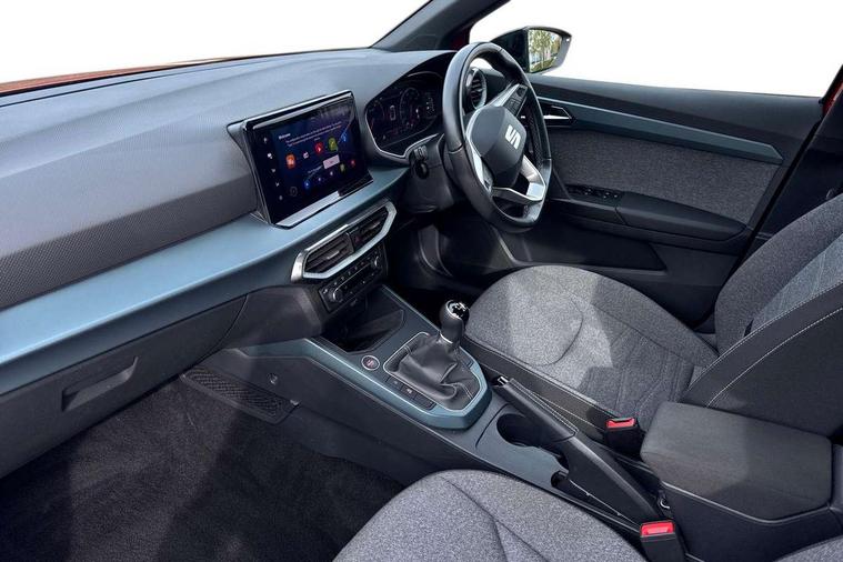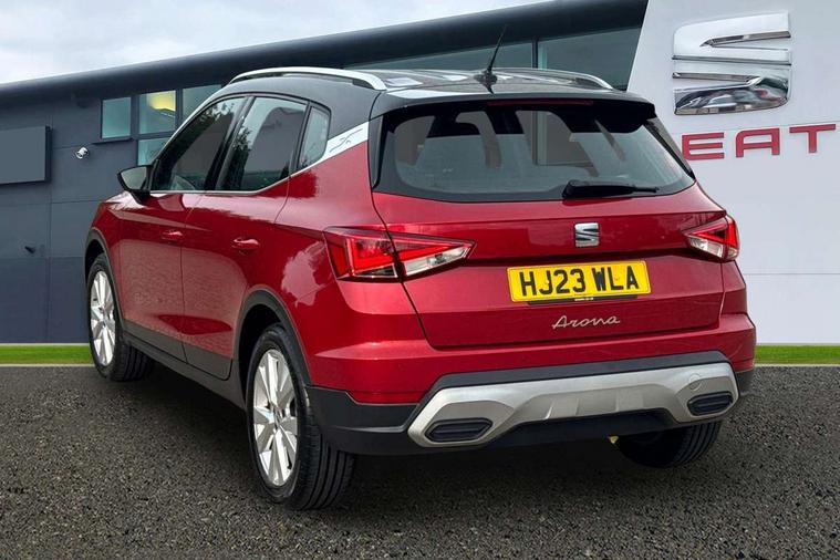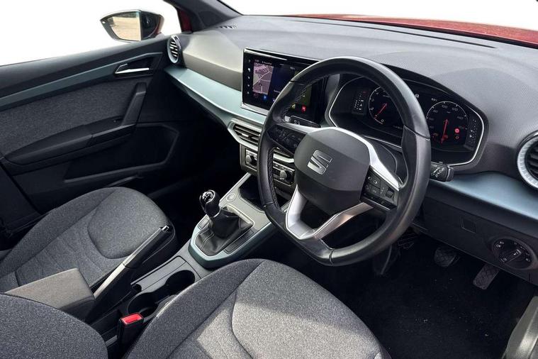 'Lights On' Reminder warning buzzer, 8" Digital cockpit, Digital clock, E-call, Electric speed sensitive power steering, Full Link Smartphone Integration with Mirror Link, Apple Car Play, Google Android Auto with USB Type C cable for Apple and Android compatibility, Lane keeping system, Low fuel warning light, Outside temperature display, Rear parking sensor, RPM counter, Seat connect with safety, service, remote and online, Trip computer, Wireless phone charger, 9.2" colour touchscreen with navigation system, voice control and USB port (type c), Bluetooth interface for hands free and audio streaming, DAB digital radio and AM/FM radio, Steering wheel mounted audio controls, Anti theft roof antenna, Auto dimming interior rear view mirror, Automatic activation of hazard warning lights, Body coloured bumpers, Body coloured door handle inserts, Chrome roof rails and window surrounds, Electric front/rear windows, Electrically adjustable, heated and folding door mirrors, Front fog lights with cornering function and rear fog light, FULL LED automatic headlights with dynamic headlight range control, coming and leaving home, LED daytime running lights, Hidden exhaust pipe, LED rear tail lights and licence plate lights, Protective side mouldings, Rain sensing wipers, Rear side wing doors, Rear spoiler, Rear window wash/wipe, Roof colour door mirrors, Third brake light, Visible VIN plate, Windshield wiper with intermittent control and potentiometer, 2 cupholders, 3 seat bench in 2nd row, 60/40 split folding rear seat, Aircare filter, Black interior roof, Cloth upholstery, Double boot floor, Driver sunvisor with covered mirror + card holder, Dual zone climate control, Flat bottomed leather steering wheel/gear knob/handbrake, Front courtesy light with 2x front and 2x rear reading lights, Front seat back storage pockets, Gear shift indicator, Height adjustable front seats, Height/reach adjustable steering column, Illuminated boot, Instrument lighting with brightness control, Interior ambient lighting, Interior light in footwell, central console and door panel, ISOFIX points in outer rear seats with top tether anchorage points, Leather steering wheel/gear knob/handbrake, Passenger sunvisor with vanity mirror, Single front passenger seat, Storage net on centre console, Two front and three rear height adjustable headrests, Interior chrome pack - Arona, Safety and driving pack (M) - Arona, Storage pack - Arona, 3 point seatbelts on all rear seats, ABS, Active front headrests, Child locks on rear doors, Driver and front passenger airbags with front passenger airbag de activation, front side and curtain airbags, Electronic stability control, Emergency Brake Assist (EBA) and front assist, Front and rear seatbelt reminder, Hill hold control, Multi-Collision braking, Tiredness recognition system, Traction control, Tyre pressure monitoring system, Alarm with back-up horn, Electronic engine immobiliser, KESSY Keyless entry and go, Locking wheel bolts, Remote central locking + deadlocks, Tow away protection, Titan black dashboard, 17" Dynamic alloy wheels,