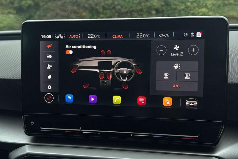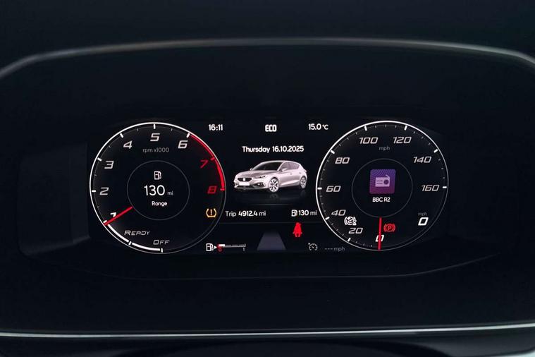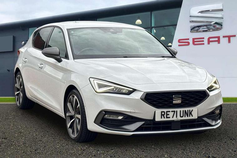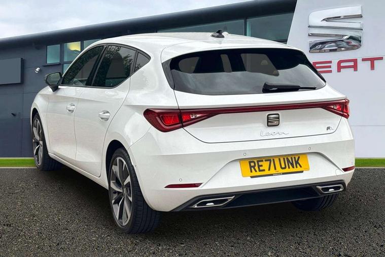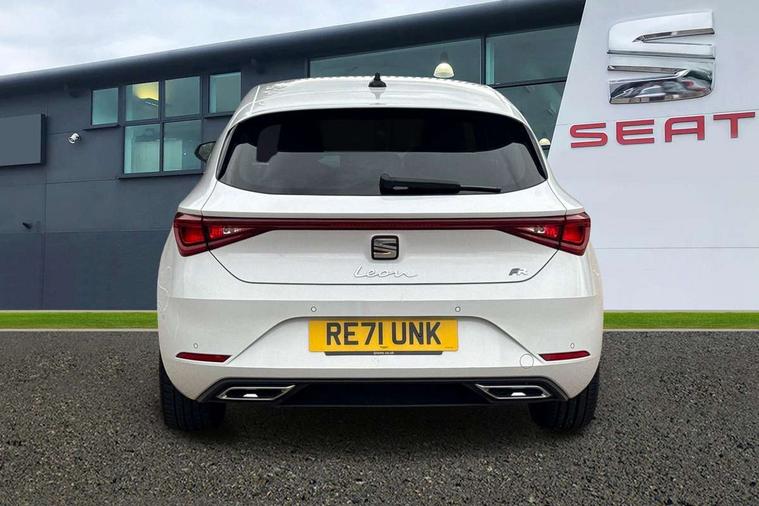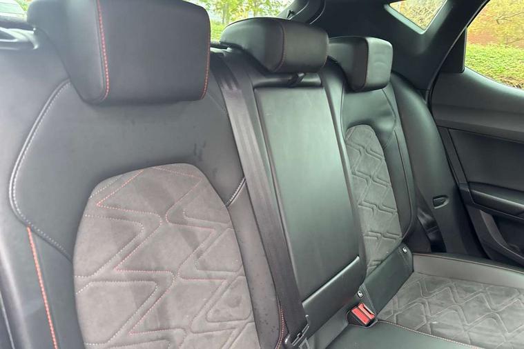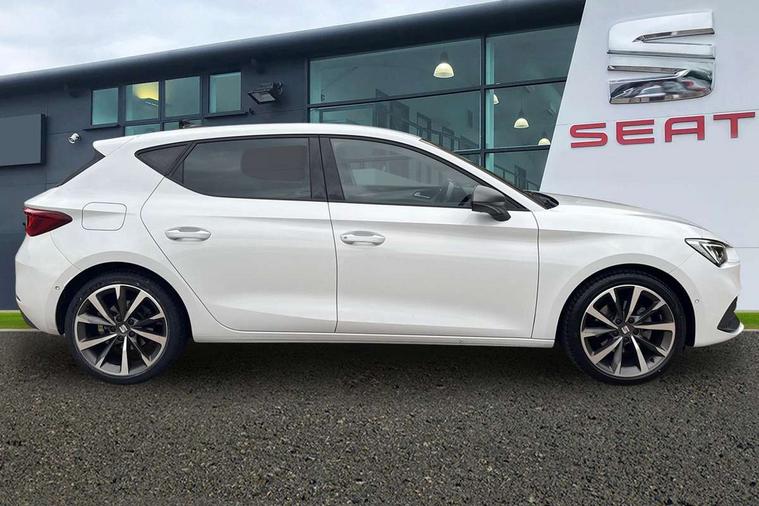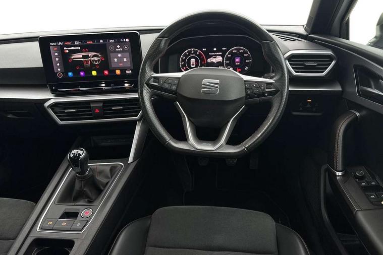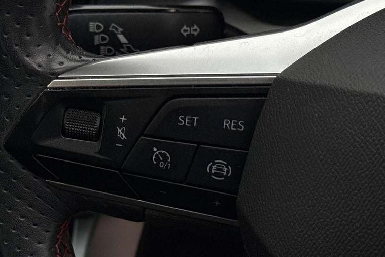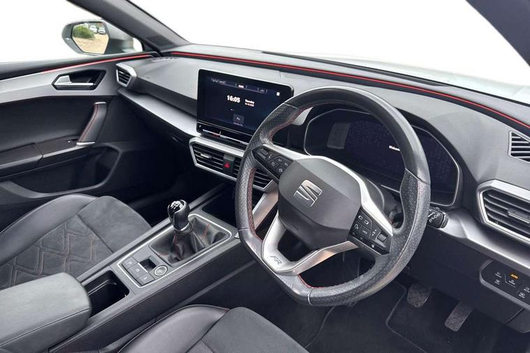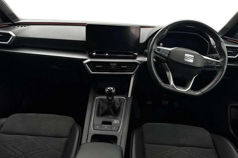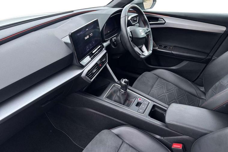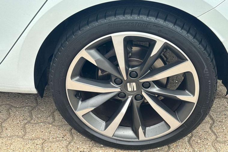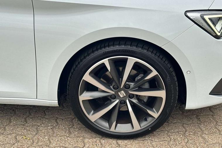 Digital cockpit, Four x USB Type C ports, Front assist with forward collision warning braking reaction to vehicles, pedestrians and cyclists, Full link smartphone integration with Mirror Link, wireless Apple CarPlay and wired Google Android Auto, Lane assist, Lockable tailgate, Park assist (inc front/rear parking sensors), Power assisted speed sensitive electro-mechanical steering, RPM, trip computer, outside temp gauge, instrument light brightness, low fuel warning light, lights on reminder, gearshift indicator, SEAT drive profile with 4 modes (Eco/Normal/Sport/Individual), throttle response, Service interval indicator, Start/stop system with regenerative braking, Sports suspension, XDS electronic differential lock and dynamic traction support, 7 speakers, Auxiliary input socket, Auto dimming rear view mirror, Body colour door handles, Body coloured bumpers, Dark tinted rear windows, Door mirror LED indicator lights, Electric adjustable/heated/folding door mirrors with memory, Electric front/rear windows, FR sports bumper, Illuminated front door sill, LED front fog lamps with cornering function, LED headlights and tail lights with dynamic turn signals, welcome light silhouette from exterior mirrors and dynamic headlight range control, LED rear fog lamp, Rain sensing wipers, Rear wash/wipe, Separate daytime running light with automatic headlight control and coming home feature, 12v power point in centre console, 60/40 split rear bench seat with armrest, Ambient lighting with glovebox, footwell and single monocolour, Black headlining, Dust/pollen filter, Electric driver lumbar support + passenger manual lumbar support, Folding boot cover, Front and rear height adjustable headrests, Front and rear reading lights X 4, Front centre armrest, Front seatback storage pockets, Heated front seats, Heated leather steering wheel with leather gearstick, Height/reach adjust steering wheel, ISOFIX points in outer rear seats with top tether anchorage points, Luggage tie-down hooks, Microsuede cloth upholstery, Power driver seat with memory and manual height adjustable passenger seat, Sunvisors with covered illuminated mirror, Three zone climate control, Wraparound lighting, Media system plus with navigation - Leon, 3 point seatbelts on all rear seats, ABS, Brake control system - ESC and brake booster, Child proof door locks, Driver and front passenger airbags with front passenger airbag de-activation, front side and curtain airbags, Electronic parking brake, Extended safety system - seat belt tensioner, window closure and hazard lights, Hill hold control, Rear disc brakes, Seat belt reminder for front and rear seats, Tiredness recognition system, driver alert system, Tyre pressure monitoring system, Anti theft alarm system with interior monitoring in cab, backup horn and towing protection, KESSY Go (Keyless start), Locking wheel bolts, Wireless phone charging, Chrome interior detailing, 18" Performance machined alloy wheels with 92Y tyres, Tool kit,