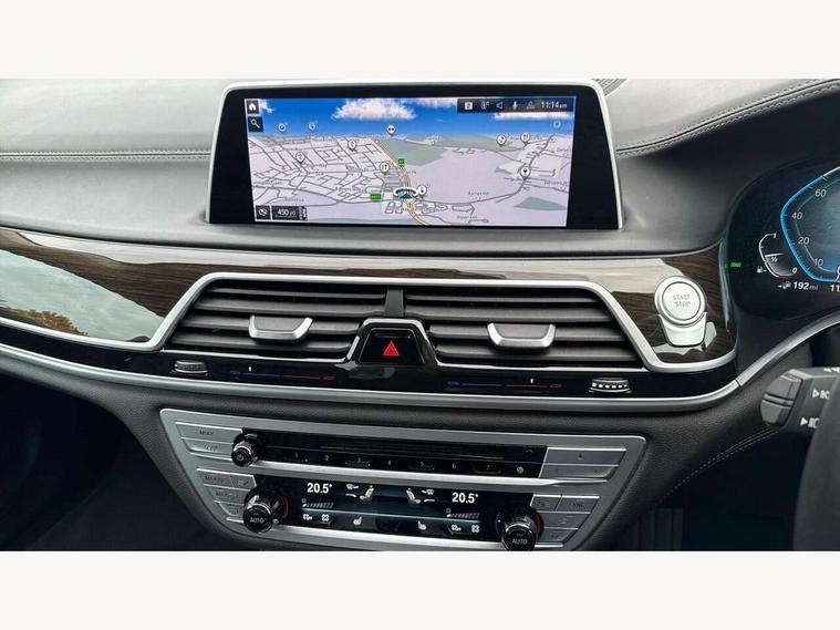 20GB hard disc drive (HDD) memory, Active Guard incl approach control warning with city brake function and person warning with city brake function, Average speed gauge, Battery certificate, BMW apps interface, BMW ConnectedDrive - Online, BMW Drive recorder, BMW gesture control, BMW information plus, BMW legal emergency call, BMW Live Cockpit Professional with 12.3" instrument display + 12.3" high resolution centre display nav function and Intelligent Voice Assistant, BMW Teleservices, Brake force display, Brake pad wear indicator warning light, Colour information display, Comfort access system with smart opener, Condition based service, Driving experience control with adaptive mode, eDrive button to select between AUTO eDrive, MAX eDrive and SAVE Battery settings, eDrive Services, Electric boot lid - electrically opening/closing rear tailgate, Engine start/stop button, Enhanced bluetooth with wireless charging, Fuel consumption and range, iDrive touch controller with shortcut buttons, Integrated owner's handbook, Lights on warning, Multifunctional instrument panel, Oil sensor for level and grade, On board computer, On-board diagnosis - OBD, Outside temperature gauge, Park distance control (PDC), Personal Profile, Powered bootlid operation, Run flat indicator, Service indicator, Smartphone wireless charging plate, Speed limit display, Speed limiter, State of charge check control message (CCM), Trip computer, Wifi hotspot preparation, Anti roll bar front and rear, Charging flap in front side panel - left, Double wishbone front axle, Dynamic Damper Control, eDrive exterior sound, Front and rear air suspension, Integral rear axle, Petrol Particulate Filter, Sport automatic transmission with gearshift paddles, Standard-Charging cable (Mode 2) for home socket, CD player, DAB Digital radio, Favourite buttons, "Electrified by i" exterior badging on charging flap, All round anti-corrosion system, Auto dimming rear view mirror, Automatic headlights, Automatic windscreen wipers, BMW roundel with BMW i blue surround on steering wheel, wheel centre caps, tailgate and bonnet, Body colour bumpers, Body colour door mirrors, Carbon core - innovative lightweight construction with highly rigid and light carbon elements, Chrome kidney grill struts in front and side, Dynamic brake lights, eDrive designation on C Pillar, Electric front and rear windows with fingertip open/close + anti-trap all round and comfort closing function, Electric heated door mirrors, Exterior mirrors - electrically folding with anti-dazzle, Follow me home headlights, Heated windscreen washer jets, High beam assistant, LED daytime driving lights with front and rear active, LED front and rear fog lights, LED rear lights, Model logo, Outer door handle illumination, Rear decorative bumper moulding tailpipe in chrome, Rear side wing doors, Third brake light, Variable front intermittent wipers, Welcome lighting, 12V power sockets, 3 seat bench in 2nd row, Ambient interior lighting, Battery in luggage compartment, Centre console with armrest, Driver + front passenger electric lumbar support, Electric seat adjustment with memory, Footwell courtesy lights front and rear, Four zone automatic air conditioning, Front and rear cupholders x 2, Front and rear reading lights, Front and rear seat heating, Front comfort seats, Glove compartment, Grab handles, Isofix child seat mounting, Lashing eyelets in boot, Lockable glovebox, Microfilter and active carbon filter, Reach and rake adjustable steering column, Rear centre console, Rear headrests, Soft close doors, Stationary cooling and heating, Storage options, Sun visors, Velour floormats, Connected Package Professional - 7 Series, Non smokers pack - 7 Series, Parking Assistant Plus - 7 Series, Pure excellence exterior design pack - 7 Series, Active front seat headrests, Active protection, Anti-lock braking system (ABS), Anti-whiplash front headrests, Automatic Stability Control (ASC), Brake assist function, Brake energy regeneration, Comfort exit stepless door brake, Cornering brake control, Crash Sensor - activates hazard/interior lighting + unlocks doors, Deformation zones - front and rear with door reinforcements and bumpers up to 2.5 mph, Driver and front passenger airbag with front passenger airbag deactivation, Driver/front passenger side airbags, DSC - Dynamic Stability Control, Dynamic brake control, Dynamic safety, Dynamic Traction Control - DTC, EBD - Electronic brakeforce distribution, Electromechanical parking brake + auto hold function, Engine drag torque control, Front and rear brake discs with interior ventilation, Front seatbelt pretensioners with force limiters, Head airbags for first and second row seats, Mechanical child proof lock on rear doors, Rear airbags, Side impact protection, Three inertia reel rear seatbelts, Three point rear seat belts, Two tone horn, Tyre pressure monitoring system, Tyre pressure sensors, Warning triangle and first aid kit, Electronic vehicle immobiliser, Locking wheel bolts, Remote central locking, Thatcham Cat.1 alarm, Ceramic finish for controls, Leather instrument panel,
