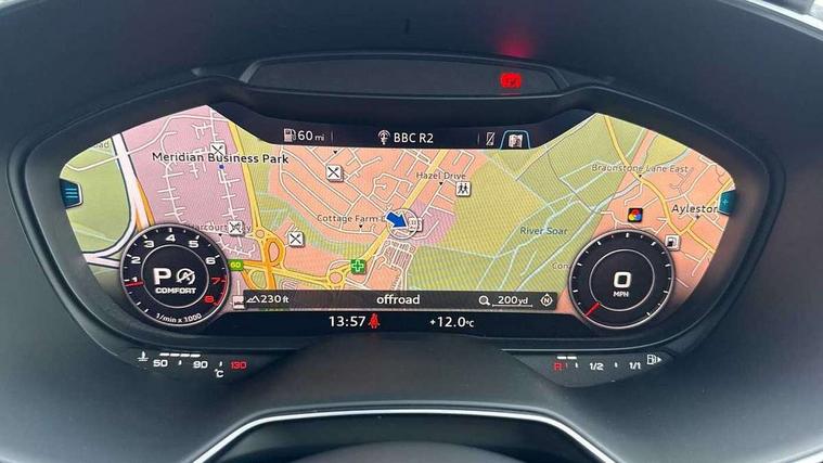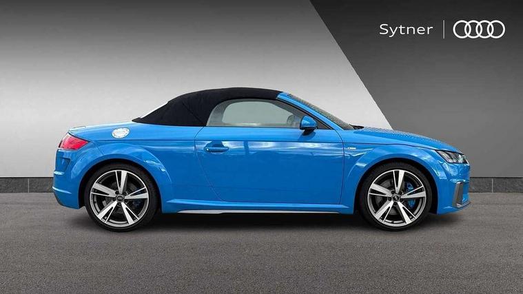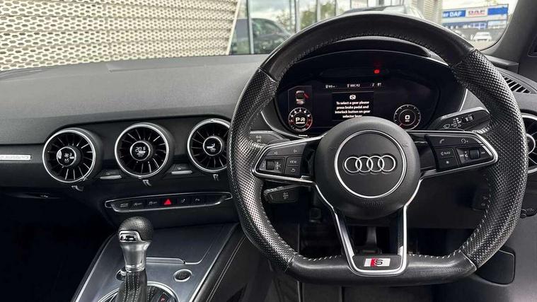 Audi active lane assist, Audi drive select with 4 Pre configured modes, Cruise control + speed limiter, MMI touch panel, Progressive power assisted steering, Rear parking sensors, Seat belt microphone, Service interval indicator, Start/Stop system with energy recuperation, TP memo, 8 Speakers, AM/FM radio, Audi music interface, Bluetooth audio streaming, DAB Digital radio, MMI Radio with CD player and SD/XC card slot, Auto dimming rear view mirror, Auto headlight range control, Body colour bumpers, Dynamic rear indicators, Electric front windows, Front fog lights, Fully automatic acoustic hood, Green tinted heat insulating glass, Headlight wash system, High gloss black radiator grille, LED daytime running lights, Light and rain sensors, Retractable rear boot spoiler, S line badges on front wings, S Line body styling, S Line front and rear bumpers, S line rear diffuser with platinum grey insert, S line sill plates, Sunband for windscreen, 12V socket, 3 spoke flat bottomed high multi-function leather sport steering wheel with gearshift paddles, 4 way electric lumbar support for driver and front passenger, Black headlining, Door sill trims with S line logo, Extended aluminium look with stainless steel pedals, Front centre armrest, Front super sports seats, Heated front seats, Height adjustable driver's seat, Height adjustable front head restraints, Height/reach adjust steering wheel, ISOFIX child seat mounting for front passenger seat with airbag deactivation, Perforated leather gearknob, S Line badge on steering wheel, Non smoking pack - TT/TT RS, 3 point front seat belts, ABS, ASR traction control, Brake energy regeneration, Curtain airbags, Driver and front passenger airbag with front passenger airbag deactivation, EDL traction control, Electromechanical parking brake, ESP, First aid kit, Front side airbags, Head airbags, Hill hold assist, Seatbelt warning, Tyre pressure warning, Warning triangle, Anti theft alarm, Anti theft wheel bolts, Immobiliser, Keyless Go, Remote central locking, Matt brushed aluminium inlays, Tool kit, Tyre repair kit,