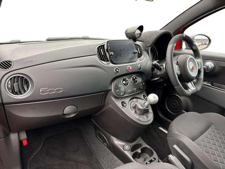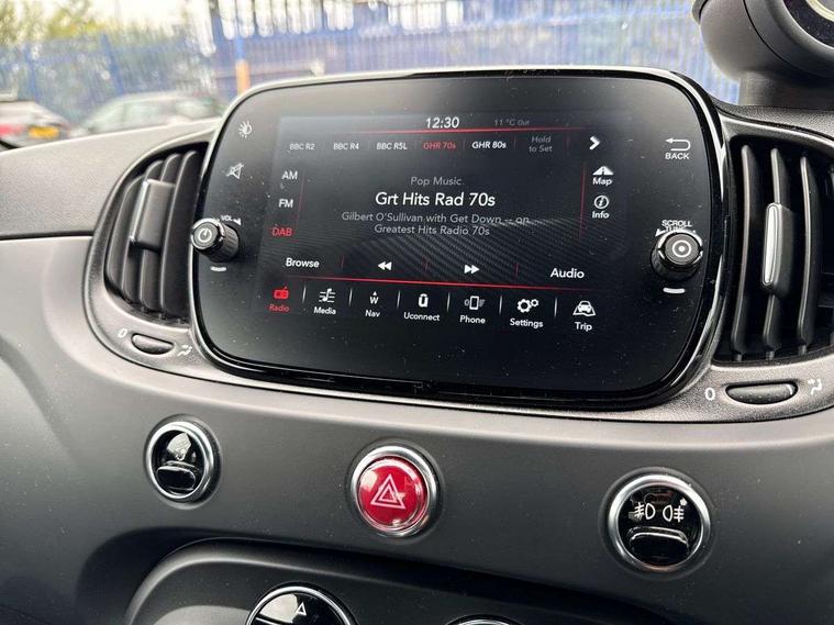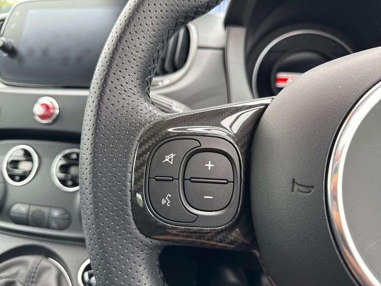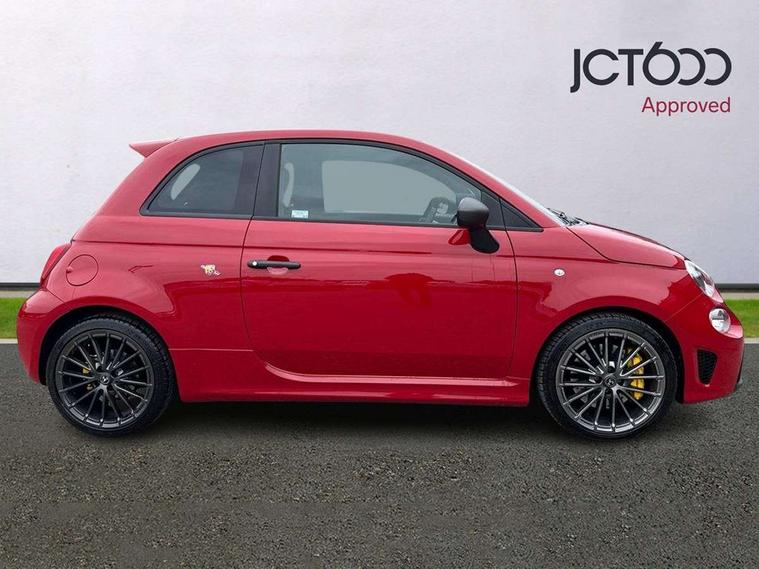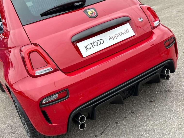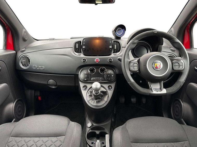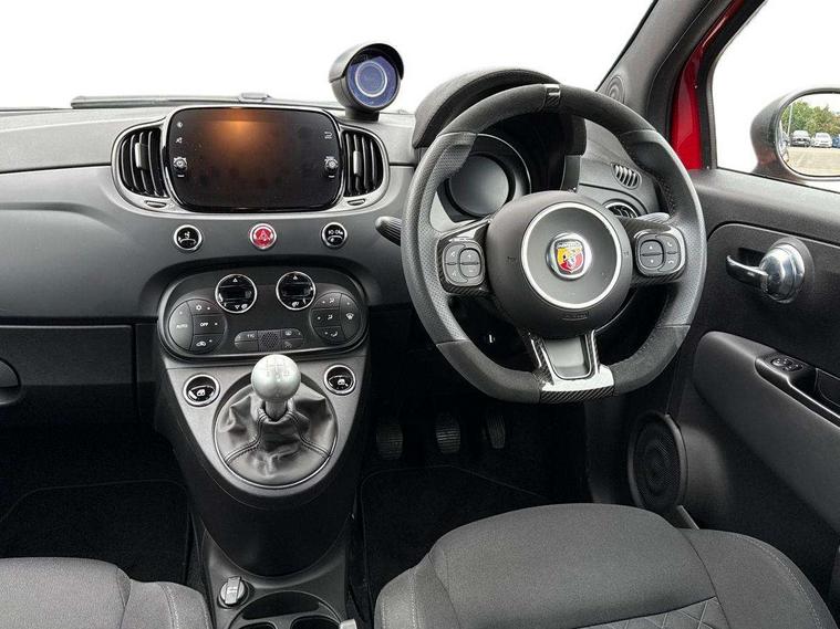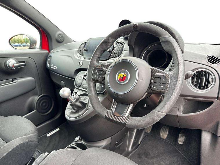 7" TFT instrument display with sports mode, Apple car play/Android Auto, Dualdrive PAS, eCall emergency call system, Garrett turbo, Rain and dusk sensors, Rear parking sensors, Sports button, Trip computer, Wakeup screen for 7" radio, Koni front and rear suspension with Frequency Selective Damping technology, Torque transfer control (TTC), 6 speakers, 3rd brake light, 695 badge, Active record monza exhaust with rotated tips, Black front and rear bumper inserts, Body coloured bumpers, Dark tinted rear quarter windows, Electric adjustable heated door mirrors, Electric front windows, Front fog lights, LED daytime running lights, Poly elliptical halogen headlights, Rear window defroster, Rear wiper, Tar cold grey door handles, Tar cold grey mirror caps, Window integrated aerial with aluminium roof cap, 12V socket, 2 seat bench in 2nd row, Aluminium gearknob, Driver/front passenger seat height adjustment, English handbook, Fabric abarth corsa racing seats upholstery by sabelt with anthracite grey shell, Floor mats, Front head restraints, Front passenger seat memory, Front sports seats, Glovebox, Height adjustable steering wheel, High performance BMC air filter, Matt black dashboard, Rear headrests, Single front passenger seat, Sports steering wheel in leather and Alcantara with carbon fibre detailing, Stainless steel pedal covers, Tech Pack - 695/695C, 240x11 mm Drilled rear brake discs, 305x28 mm Drilled and ventilated front brake discs, 4 piston fixed yellow front brake calipers in aluminium by Brembo, ABS, Driver and passenger airbags, Drivers knee airbag, ESP + ASR/MSR + HBA + Hill holder, Front side airbags, Head protection side airbag, Tyre pressure monitoring system, Window airbags, Alarm, Immobiliser, Power door locks, Remote central locking, 17" Montecarlo alloy wheels, Fix and go kit,