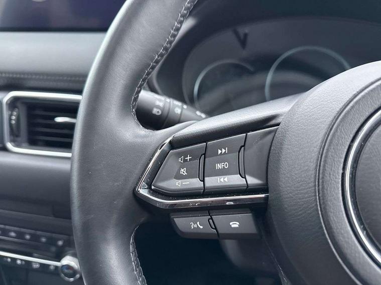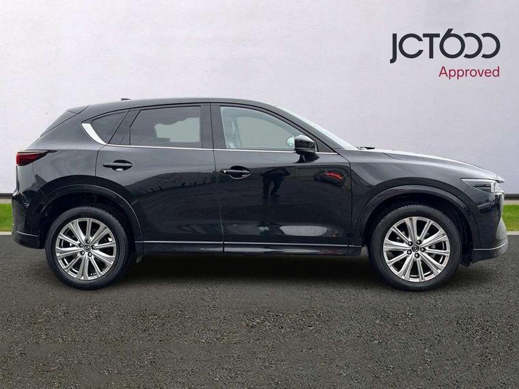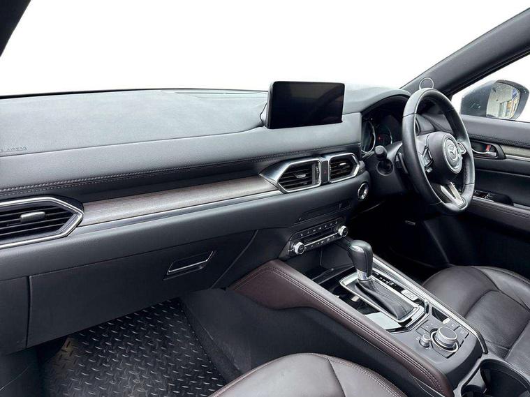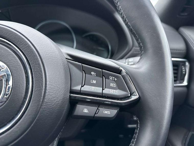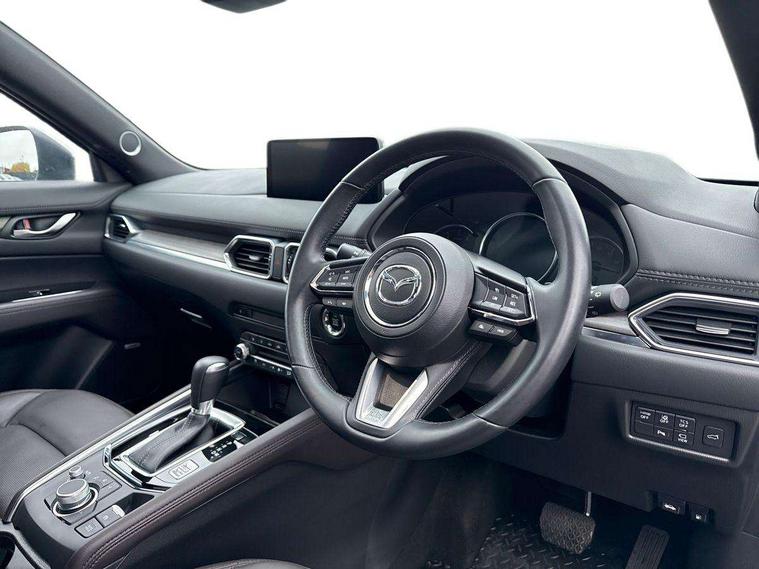 10.25" display with Mazda Connect infotainment, 360 degree surround camera, 7" colour TFT display, Advanced blind spot monitoring, Bluetooth connectivity with voice control, Collision prevention assist, Connected services, Cruising Traffic Support, Drive mode selector, Driver attention alert system, Electric power steering, Emergency stop signalling system, Engine start/stop button, Forward collision warning, Front and rear parking sensors, Integrated navigation system, Intelligent speed assist, Lane departure warning system, Lane keep assist, Power liftgate, Qi wireless phone charging, Radar cruise control with Stop and Go, Rear cross traffic alert, Service indicator, Traffic sign recognition (TSR), Trip computer, Windscreen projected colour active driving display (HUD) with memory, Wireless apple car play/android Auto, Cylinder Deactivation, i-stop, AM/FM radio, Bluetooth audio streaming, Bose premium sound system with 10 speakers, DAB Digital radio, Multimedia Commander including separate volume dial, Steering wheel mounted audio controls, Adaptive LED Headlights, Automatic headlights, Body colour door mirrors, Body colour roof spoiler, Body coloured front and rear lower bumper mouldings, Body coloured tire arch and side mouldings, Coming/leaving home lighting function, Door mirror integrated indicators, Dual large chrome tailpipes, Dusk sensitive headlamps, Electric front/rear windows with one touch auto up/down, Frameless auto dimming interior rear view mirror, Front grille in gloss black finish, Front grille in gloss black with black accent + chrome signature wing, Gloss black B and C pillars garnish, Gloss black front grille accent, Intermittent rear wash/wipe, LED auto levelling, LED daytime running lights, LED front fog lights, LED third brake light, Power folding and heated door mirrors, Power tilt/slide sunroof, Privacy glass (rear side windows only), Rain sensing front wipers, Real wood inlay dashboard panel, Rear side wing doors, Scuff plates, Shark fin antenna, Signature LED rear combination lights, Variable intermittent front wash/wipe, Vinyl with real wood inlay door trim panel, Windscreen wiper de-icer, 12v electrical power outlet, 3 seat bench in 2nd row, 3 stage heated front seats, 40:20:40 Karakuri fold-flat seat system, 6 way electric adjustable passenger seat, 8 way electric driver seat with lumbar support + memory, Black roof lining, Cargo room flat floor board with waterproof undertray, Driver seat power slide, recline and height adjustment, Driver, Front passenger and two rear grab handles with coat hooks, Driver/passenger front seatback pockets, Driver/passenger sunvisors + illuminated vanity mirrors (drivers with ticket holder), Dual zone climate control, Folding centre armrest with 2 cup holders, Front and rear door pockets, Front centre storage with two cupholders, Front passenger seat power slide, recline and height adjustment, Front seat ventilation, Heated outer rear seats, Heated steering wheel, Humidity sensor, Illuminated glovebox, Interior dome light with integral spotlight, ISOFIX child seat anchorage points attached on outer rear seats, Karakuri tonneau cover, Leather gear knob, Leather steering wheel with unique stitching and chrome centre bezel, Luggage compartment LED lighting, Luggage compartment power outlet, Nappa leather upholstery, Paddle shifts, Rear air vents, Rear headrests, Rear seat recline, Roof mounted sunglasses holder, Single front passenger seat, Three height adjustable head restraints, Tilt/height adjustable steering wheel, USB Connectivity (2x front Type-C, 2x rear Type-B), White interior LED illumination lighting, 3 point front seatbelts with pre-tensioners, 3 rear 3 point seatbelts, ABS, Advanced Smart City Brake Support - SCBS, Child locks on rear doors, Driver and front passenger side airbags, DSTC-Dynamic Stability and Traction Control, Dual front airbags, Electronic brake force distribution, Electronic parking brake with auto hold, ESP, Front and rear curtain airbags, Front passenger airbag deactivation, G-Vectoring control, Hill hold assist, Rear smart city brake support, Seatbelt reminder front and rear, Single stage passenger airbags, Smart brake support with forward obstruction warning, Tyre pressure monitoring system, Automatic door locking when moving off, Deadlock, Immobiliser, Power door locks, Remote central locking, Smart keyless entry, Thatcham Cat.1 alarm, Upper dashboard and door cards wood trim, 19" exclusive design bright alloy wheels, Tyre repair kit,