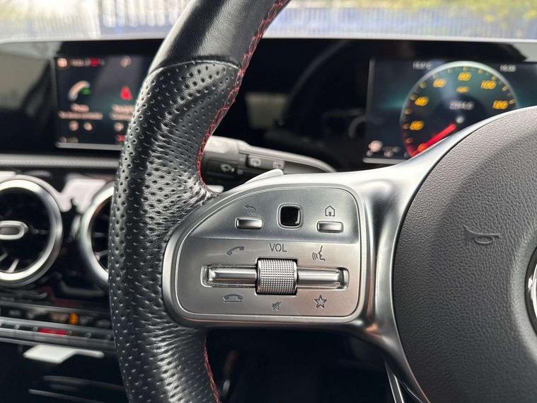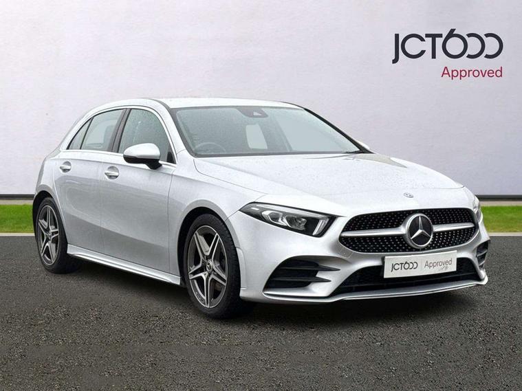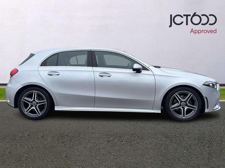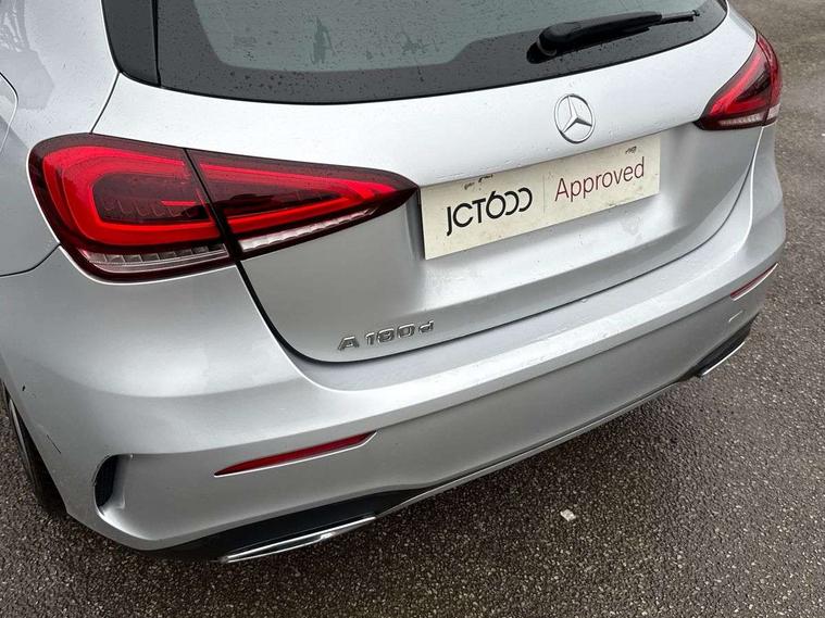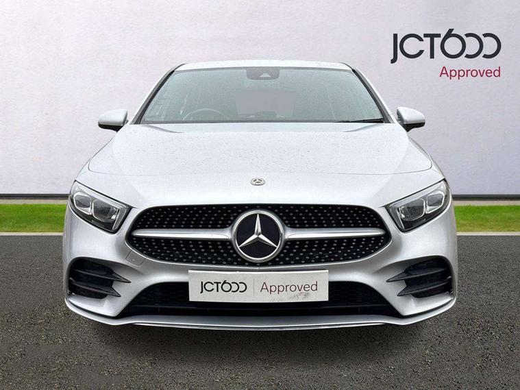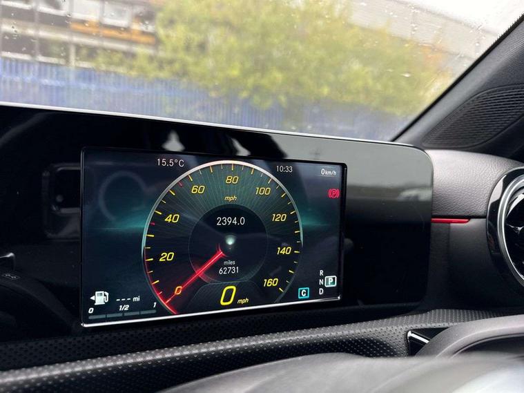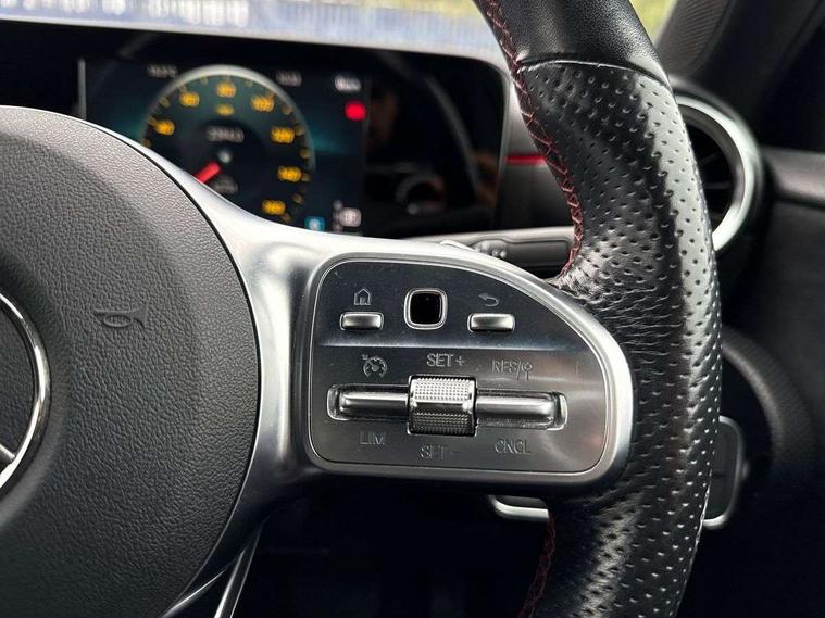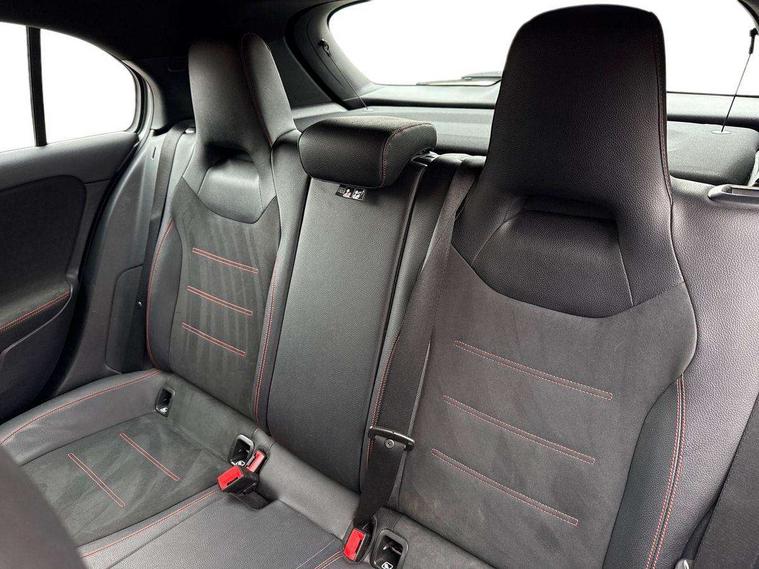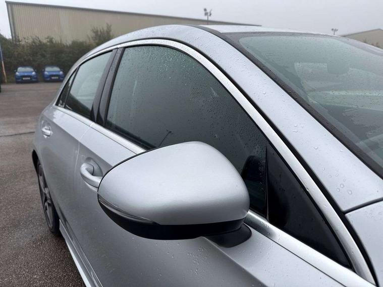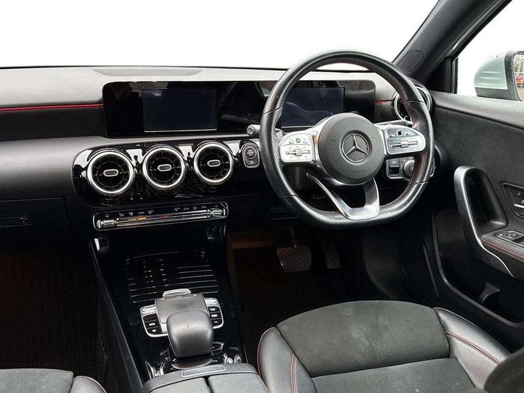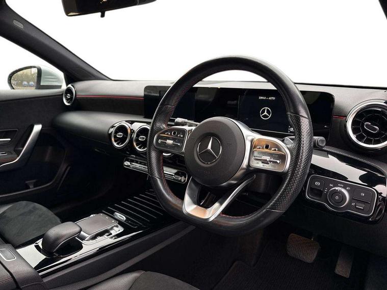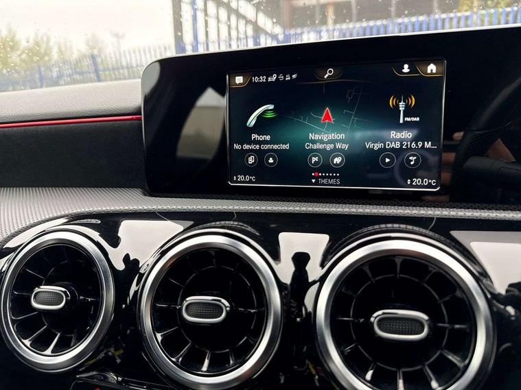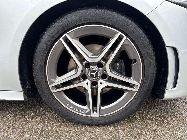 180 degree rear view camera with parking guidelines, 7" colour screen in instrument panel, 7" touchscreen media display, Active lane keep assist, Attention assist, Brake pad wear indicator warning light, Cruise control + speed limiter, Direct steering, Direction indicators with lane change function, DYNAMIC SELECT with a choice of driving modes (ECO, Comfort, Sport, Sport+ and Individual), Fluid level warning indicator for fuel, oil, coolant and washer fluid, Hard-disk navigation, Lamp failure indicator, Mercedes me connect including emergency call system, accident recovery, breakdown and maintenance management, Outside temperature gauge, Radio aerial integrated into roof spoiler, Service indicator (ASSYST), Speed sensitive power steering, Stop/start system, Trip computer, Voice activation, Lowered comfort suspension, DAB Digital radio, Dual bluetooth interface, 2 USB ports (type C), MBUX multimedia system with DAB digital radio and touchpad including satellite navigation, Active aerodynamics with AIRPANEL in the front apron, Adaptive brake lights, AMG front, rear apron and side skirts, Blue tinted glass, Body colour bumpers, Body colour door handles, Body colour side skirt, Body coloured door mirrors, Chrome beltline trim, Diamond radiator grille with chrome pins and silver louvre + chrome insert, Electric adjustable and heated door mirrors with integrated LED side indicators, Electric front windows, Electric rear windows, Exhaust system - Twin trapezoidal tailpipes in polished stainless steel, Headlamp assist automatic headlamp activation, Heated glass rear windscreen + timer control, LED high performance headlamps with integrated LED daytime running lights, LED tail lamp, LED third brake light, Rain sensor windscreen wipers, Rear fog lights, Rear wiper, 12V socket, 3 Spoke flat bottom leather multi function steering wheel with perforated leather in grip area, 40:20:40 split folding rear seats, Air vents surround and cruciform nozzle in silver chrome, AMG floor mats with red stitching, Artico man-made leather/Microfibre Dinamica upholstery with red contrast stitching, Auto Mercedes-Benz child seat recognition sensor, Black roof lining, Brushed stainless steel sports pedals with rubber studs, Controller on centre console with chrome surround, Cup holder and stowage compartment lighting, Front centre armrest with storage compartment, Front door sills with Mercedes Benz lettering, Front doors with ambient and signal light, Front footwell lights, Front reading lamps, Front seat backs luggage nets, Front seat cushion length adjustment, Front signal exit lamp, Front vanity lights, Gearshift paddles on steering wheel, Handle recess/closing light, Height/reach adjustable steering column, Illuminated glovebox, ISOFIX Child seat top tethers and anchor fixings, Load securing rings in luggage compartment, Luggage compartment cover, Manual height adjustable front seats, Oddments tray lighting, Rear head restraints, Rear Reading Lamps, Seat occupancy sensor for front passenger seat, Sports seats with integrated headrests, Storage compartment under load area floor, Sunvisors with illuminated vanity mirrors, Touchpad, Touchpad illumination, Twin front cupholders, Two zone thermotronic luxury automatic climate control, Seat comfort pack - A Class, 3 rear 3 point seatbelts, ABS with Brake Assist, Active bonnet, Active brake assist includes forward collision warning system with autonomous braking, Adaptive brake assist with hold function and hill start assist, Black seatbelts, Brake calipers with Mercedes-Benz lettering + perforated brake discs, Childproof locks manually operated for rear doors and electrically operated for rear power windows, Crash responsive emergency lighting, Driver and passenger head and side airbags, Drivers knee airbag, Dual stage driver/passenger airbags, Electronic parking brake, ESP curve dynamic assist, ESP with ASR, Front and rear seatbelt reminder, Tyre pressure monitoring system, Warning triangle and first aid kit, Window airbags, Alarm system/interior protection/immobiliser, Keyless Go, Remote central locking and crash sensor with emergency opening function, 18" AMG 5 twin spoke light alloy wheels in titanium grey with highsheen finish, Tirefit sealant kit,