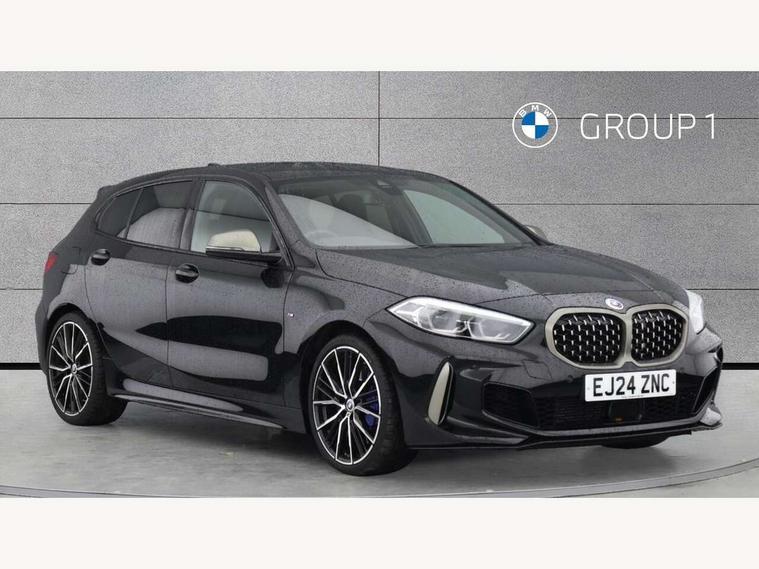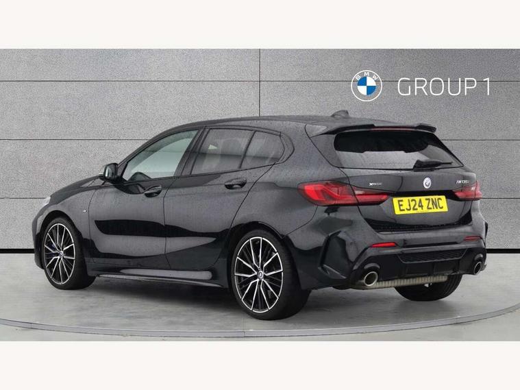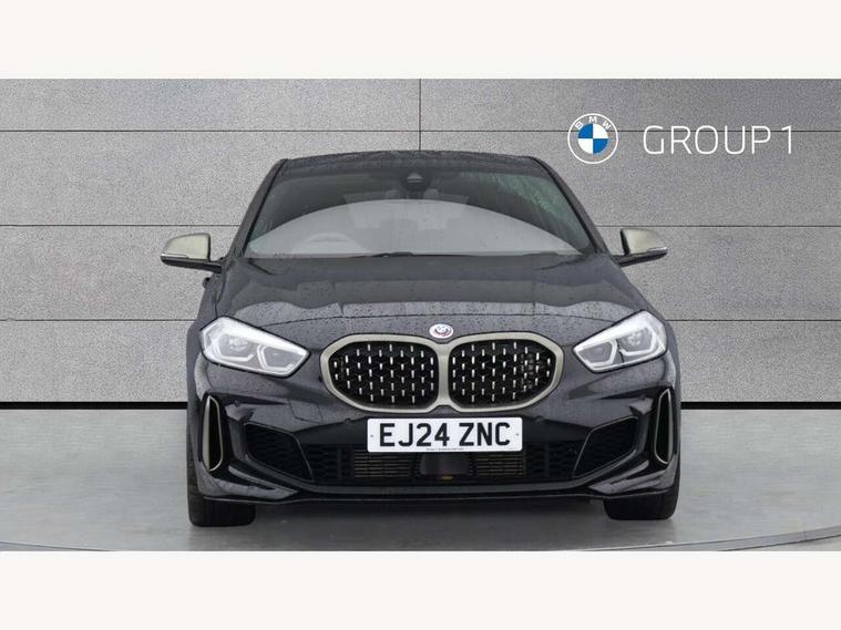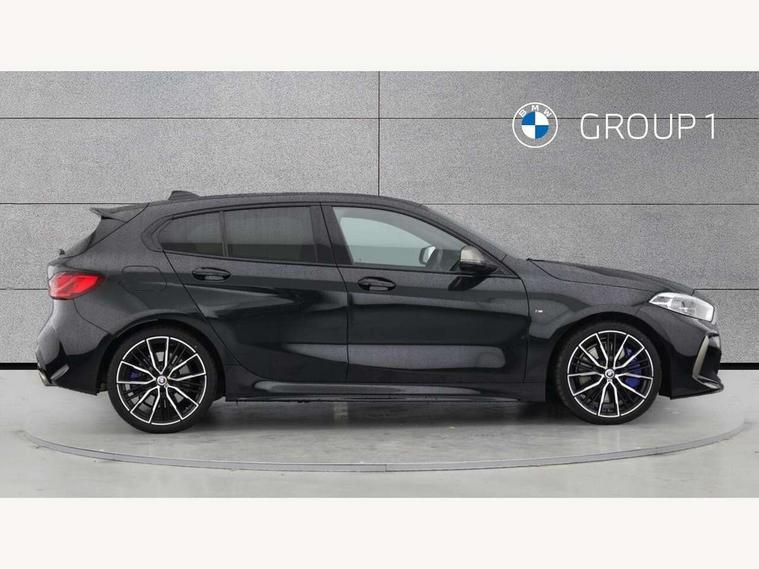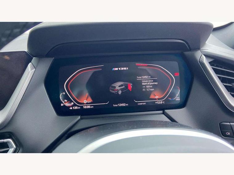 Active guard plus, Attentiveness assist, BMW ConnectedDrive online services, BMW Teleservices, Check Control warning system for monitoring of lights and door/luggage compartment open warning, Cruise control with speed limiter, Eco pro mode, Electric power steering, Electro hydraulically controlled multi-plate clutch transfers drive to rear axle and with power take-off device located on the front differential., Energy efficient operating strategy, Front axle single joint with specific axle kinematics to minimise drive influences on steering + provide increased rigidity agile driving behaviour, Gearshift time display in manual mode, Integrated owners handbook, Lane departure warning system, M Sports steering with M135i xDrive specific settings, Oil sensor for level and grade, On board computer, Optimum shift indicator, Personal Profile, Pull away assistant, Rigidly mounted rear subframe - Multi link construction with separate spring / damper configuration and excellent driving characteristics, Speed limit Info including no-overtaking indicator, Sporty fast gear shifting in sport mode, Aluminium lightweight construction, Anti roll bar front and rear, Balancer shaft, Double VANOS, Drive Performance Control, Eight speed sport automatic transmission with gearshift paddle switches, Electronic differential lock, Electronic selector lever, Engine cover with M performance designation, High precision injection, Larger fuel tank capacity (50 litres), Launch control, M135i specific heavily de-throttled engine intake air guide, M135i specific high-performance cooling package, M135i specific larger turbocharger with integrated divert-air valve, Petrol Particulate Filter, Twin tube gas filled shock absorbers with degressive characteristic curve, VALVETRONIC engine management, Variable, stepless and infinitely adjustable distribution of drive torque between the front and rear axles, xDrive intelligent all wheel drive with M135i specific reinforced components, DAB Digital radio, Auto dimming rear view mirror, Automatic headlight beam throw control, Automatic windscreen wipers and automatic headlight, Body colour door handles, Body colour roof trims, Cerium grey exterior mirror caps, Direction indicator side lights in exterior mirrors, Electrically adjustable exterior mirror with mirror adjustment switch on drivers armrest and aspheric on driver side, convex on passenger side, Exhaust tailpipe, Cerium Grey with bevelled finish - twin, round 100mm, left and right split, Fading support, Folding side mirrors with auto dimming/folding wing mirrors with auto dimming, Follow me home headlights, Front and rear bumper system with replaceable deformation elements, Front and rear electric windows with open and close fingertip control, anti trap facility and comfort closing, Front door sill finishers with M135i designation, Green tinted heat protection glazing, High gloss shadowline window frame, Recess cover mirror frames and B/C pillar embelisher trim, High level third brake light, Integrated front windscreen with washer jets, Kidney grille frame in Cerium Grey with Mesh design, LED daytime running lights, LED eyebrow turn indicators, Lightweight engineering, M logo designation side in cerium grey, M Performance exhaust system with valve control and minimised exhaust back pressure, M Performance specific setup, M Sport spoiler, Matt black air guide grilles, Matt black wheel arch trim, Model designation on electric bootlid includes xDrive designation for M135i xDrive, Nearside reverse light in rear light cluster, Preparation for high beam assistant, Rear fog lights, Rear side wing doors, Rear window wiper, Reinforced crank drive, new pistons and adapted con rods, Shark fin antenna, Trailer stabilisation logic, Visible VIN plate, Welcome lighting, 12V power socket in front centre console with blanking plug, 3 rear seat head restraints, 3 seat bench in 2nd row, 3 spoke sports leather steering wheel with black leather and stitching, pearl chrome decorative finish, specific M Badge, Anthracite headlining, Black boot net with lashing eyes, Cargo function on 2nd seat row, Child seat ISOFIX attachment for two outer rear seats and front passenger seat with anchorage points, Conditioned based service, Driver and front passenger backrest net on rear, Driver and front passenger seat heating, Driver side folding compartment in instrument panel, Folding rear clothes hook, Four grab handles integrated in roof lining, Front and rear door pockets with bottle holders, Front and rear side armrest integrated into door trim, Front armrest, Front M sports seats, Glove compartment, Height adjustable front head restraints, Luggage compartment for bag hooks on left and right, foldable luggage compartment liner and four lashing eyelets, Manual adjust steering wheel, Multi-function controls for steering wheel, Single front passenger seat, Storage compartment in centre console, Storage compartment in luggage compartment, Stowage of the parcel shelf in luggage compartment trim, Sun visors with vanity mirrors and insert tab, Two front centre console cupholders, Two zone automatic air conditioning, Type C two USB ports in rear centre console, Velour floor mats, Additional interior lighting pack - 1 Series M135i, BMW live cockpit professional pack- 1 Series, Connected pack professional - 1 Series, Interior lights pack - 1 Series, M Sport exterior styling aerodynamics pack - 1 Series 135i, 2 tone horn, 3 point seatbelts on all seats, front pyrotechnic belt tensioners, stopper and belt force limiters, rear coded belt buckles, Airbags - Front driver/passenger, front and rear curtain head protection, front side, manual deactivation of front passenger airbag, Anti lock braking system (ABS) with brake assist, BMW emergency call, Brake drying, Braking readiness, Child proof locking system in rear door, City braking function, Comfort modes, Cornering brake control, Crash sensor activating of airbags, Unlocking doors, hazard warning lights, interior light